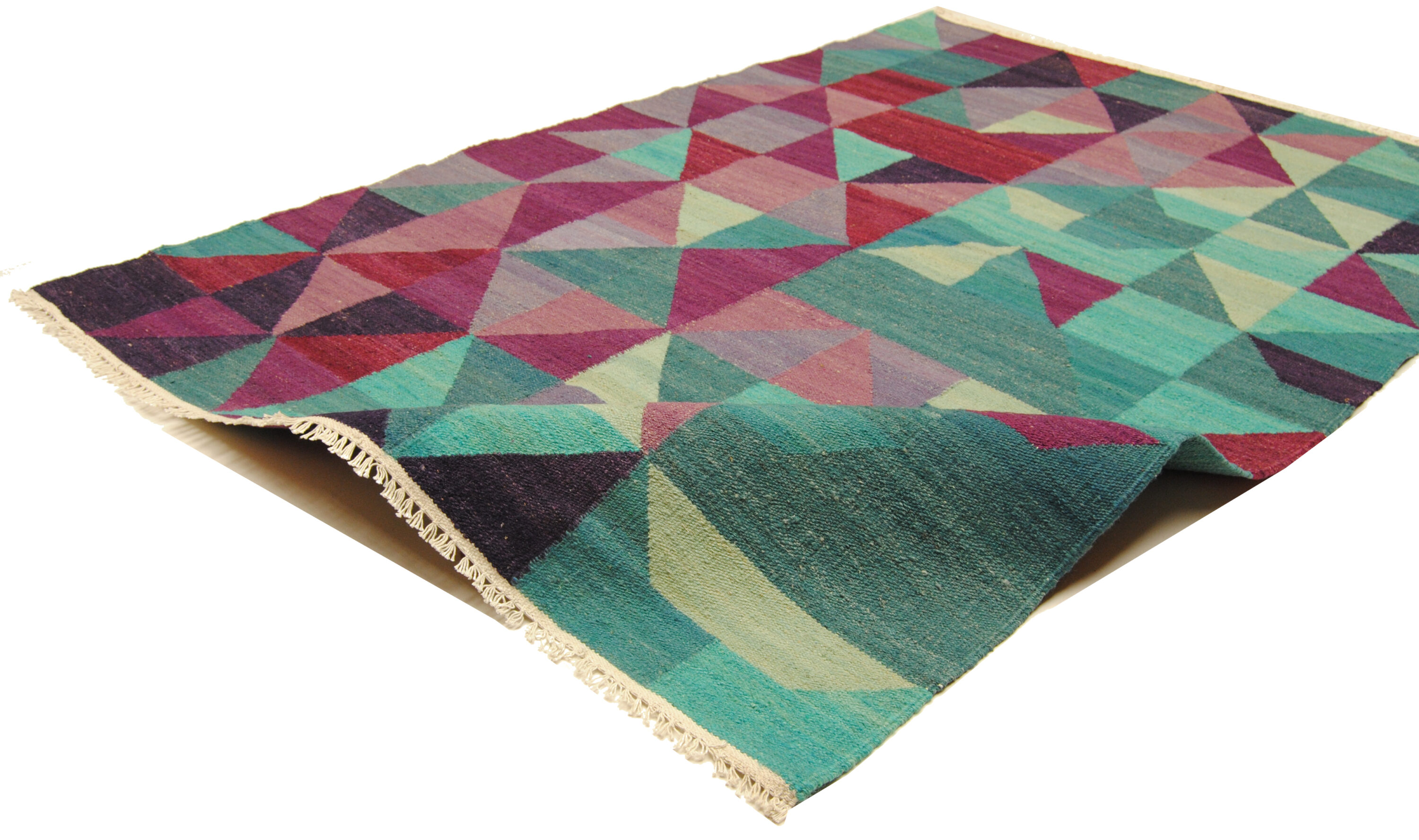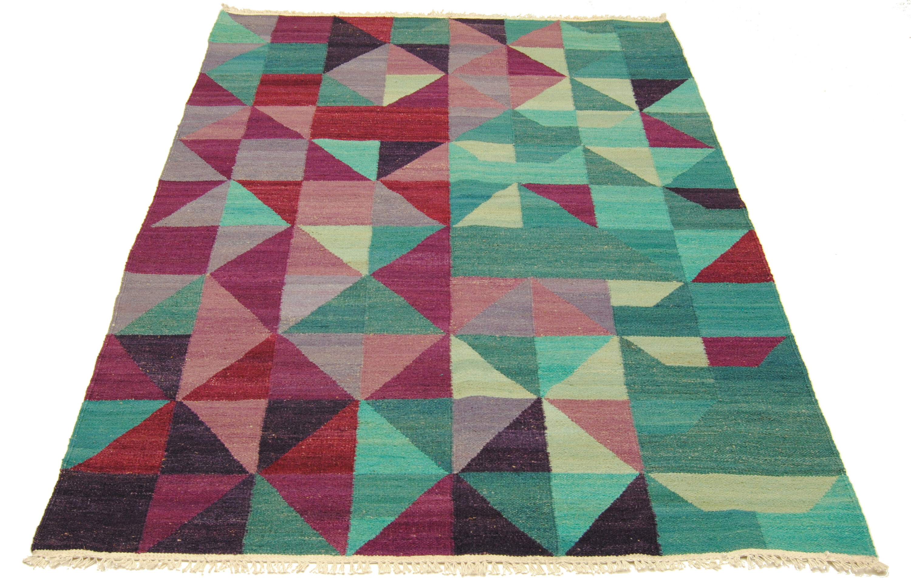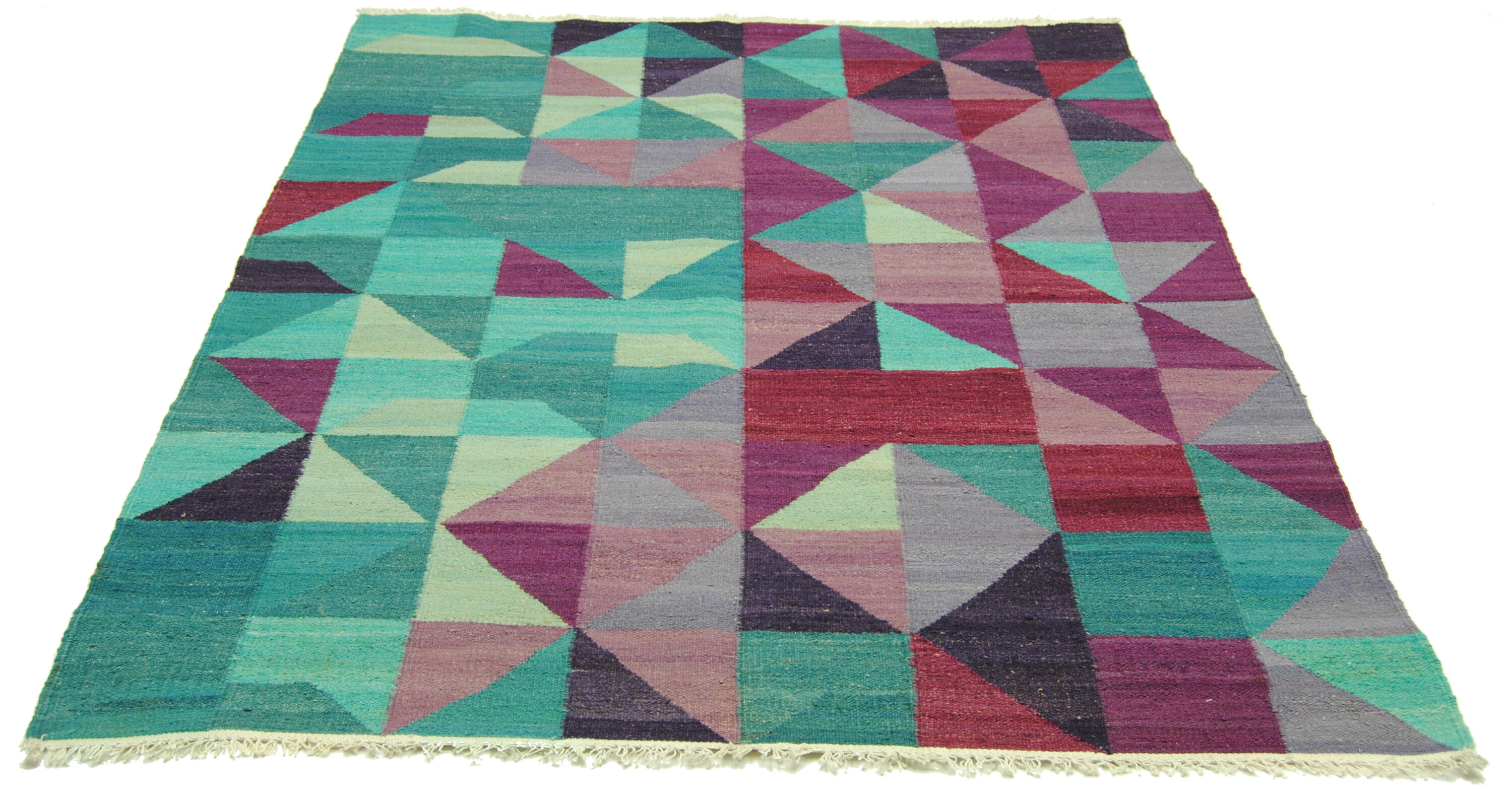 Edle Kelim-kunst aus Afghanistan mit geometrischer Musterung und gedeckten Farben.