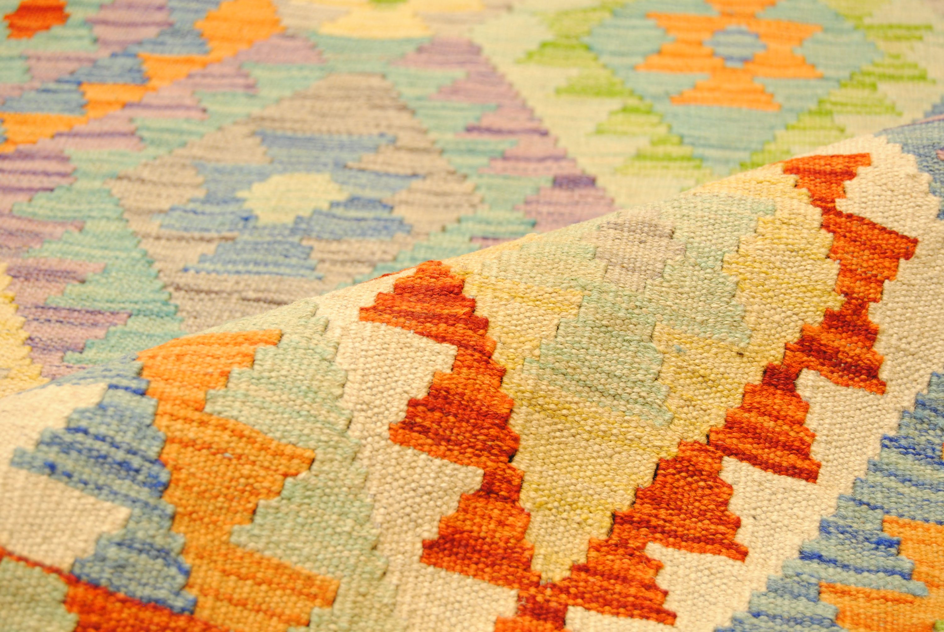 Die erfrischenden, farbenfrohen Kelims der Amari-Kollektion bringen angnehme Wärme und gemütliche Atmosphäre in die eigenen vier Wände.