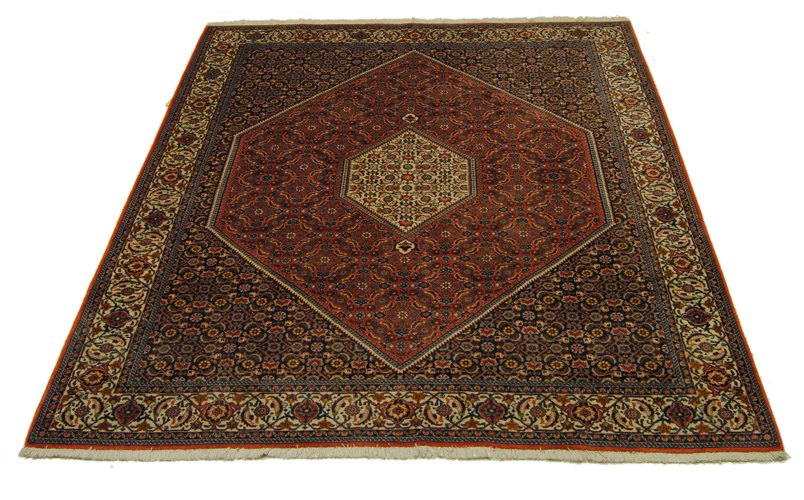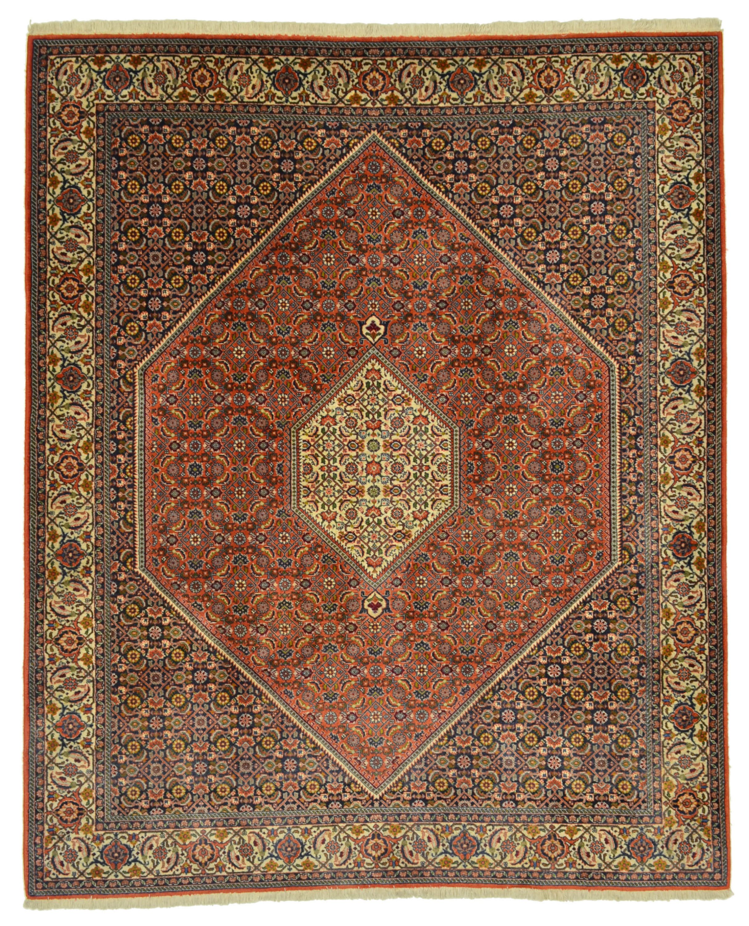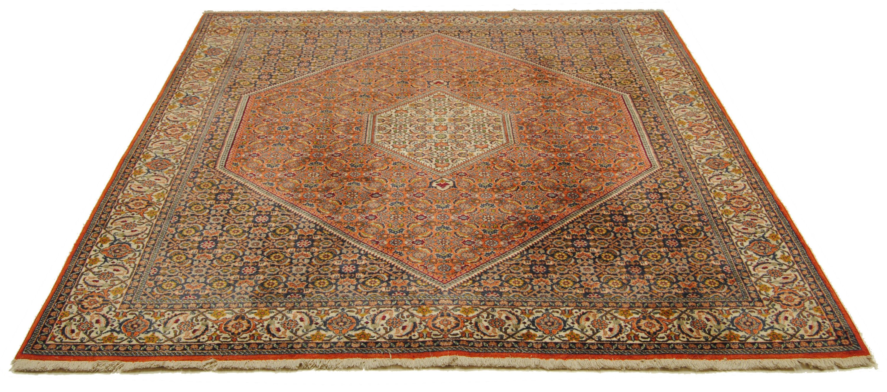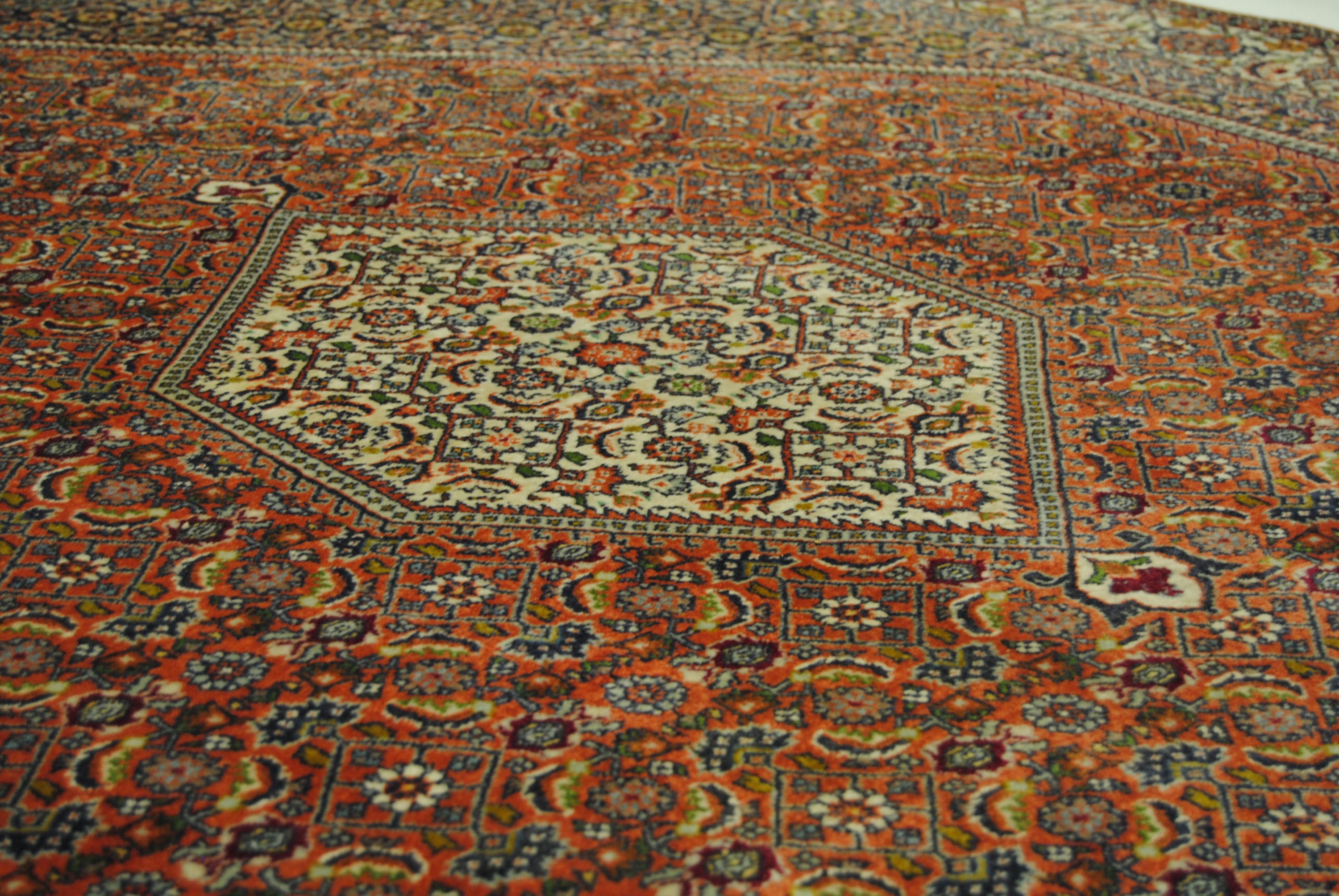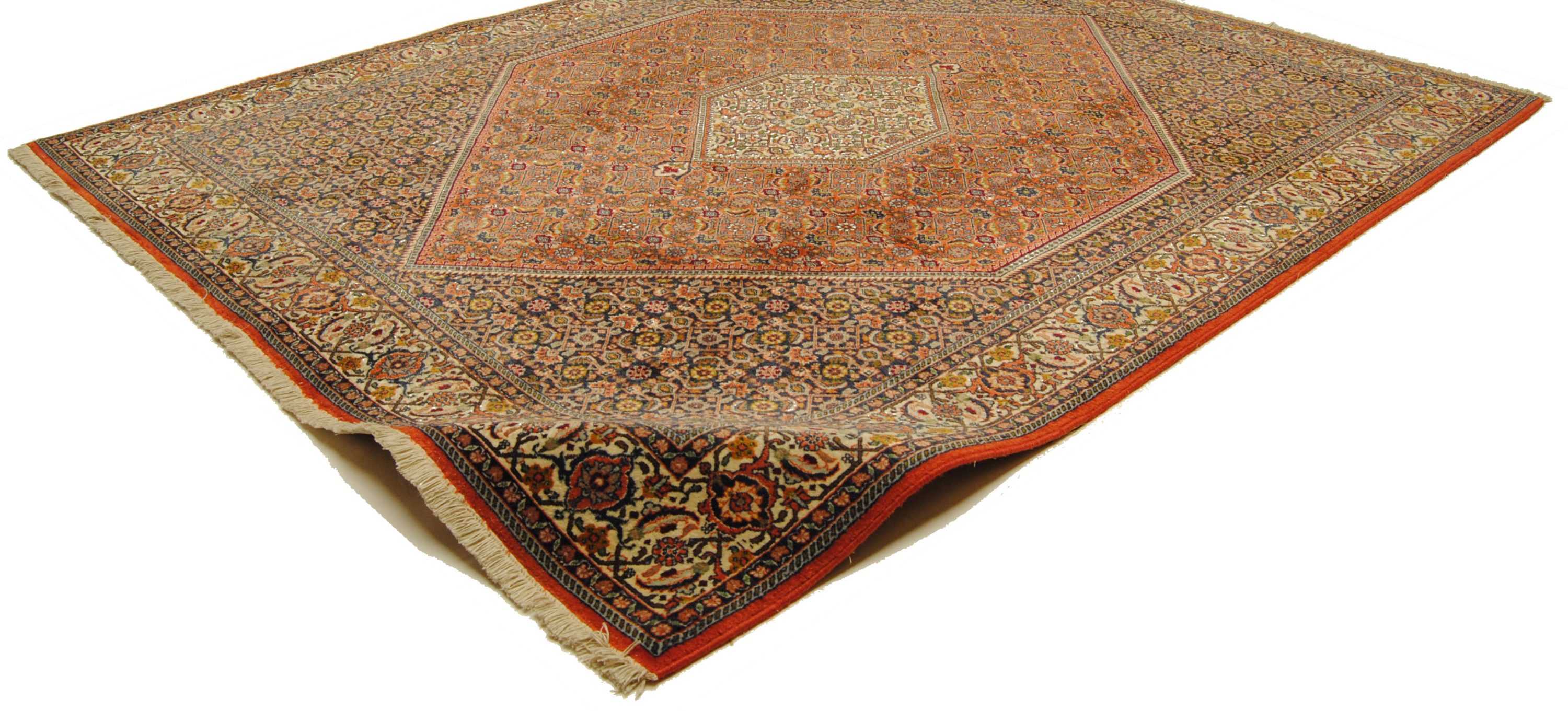 Bidjar-Teppiche werden häufig zu Recht als die strapazfähigsten Teppiche der Welt bezeichnet. Dies liegt auch an der besonderen Art der Nassknüpfung. Der Schußdaden wird dabei angefeuchtet, wodurch eine besonders kompakte, geschichtete Knüpfung entsteht. Bidjar bestechen nebenbei auch durch ihre hochwertige Wollqualität und ihre warmen, gediegenen Farbkombinationen.