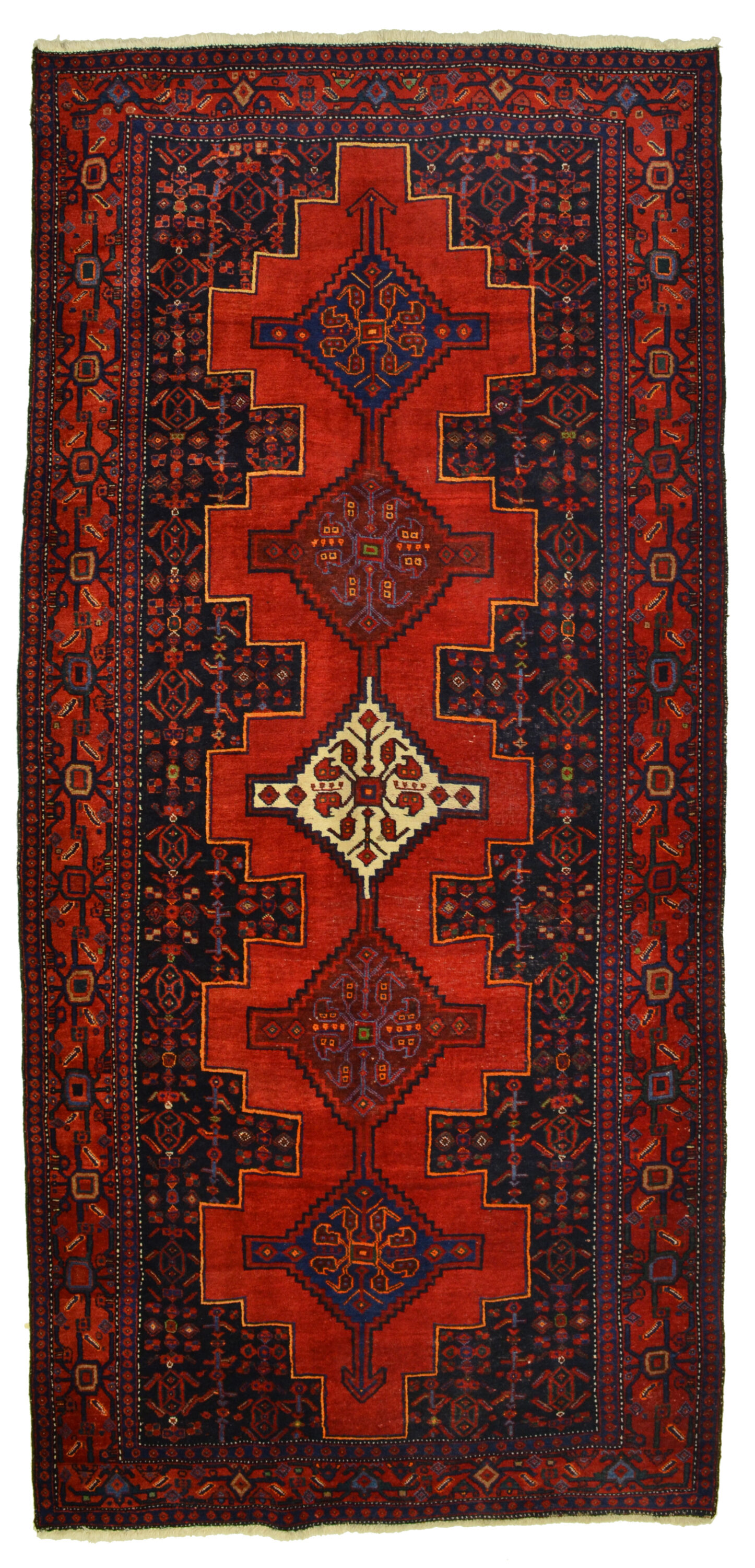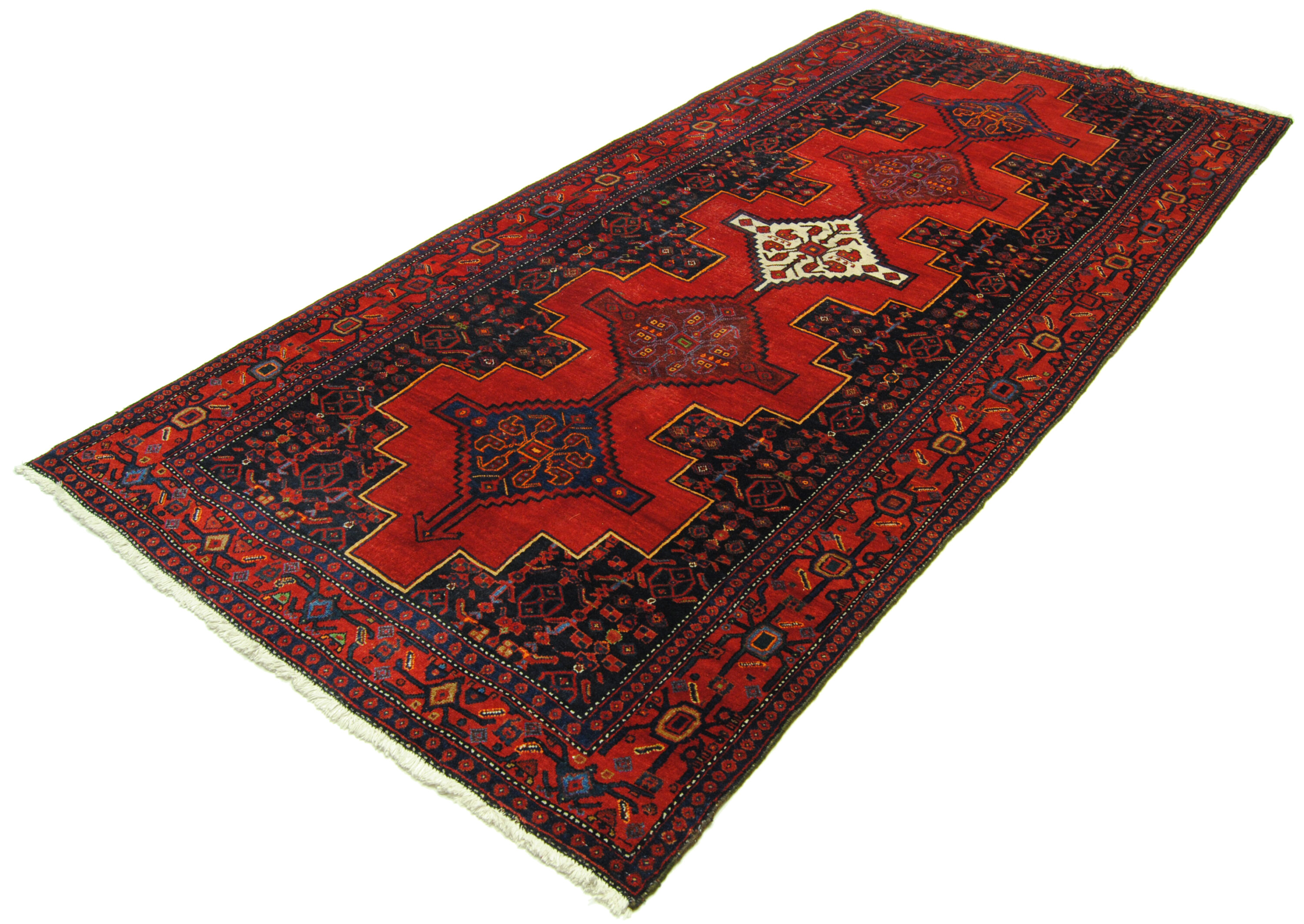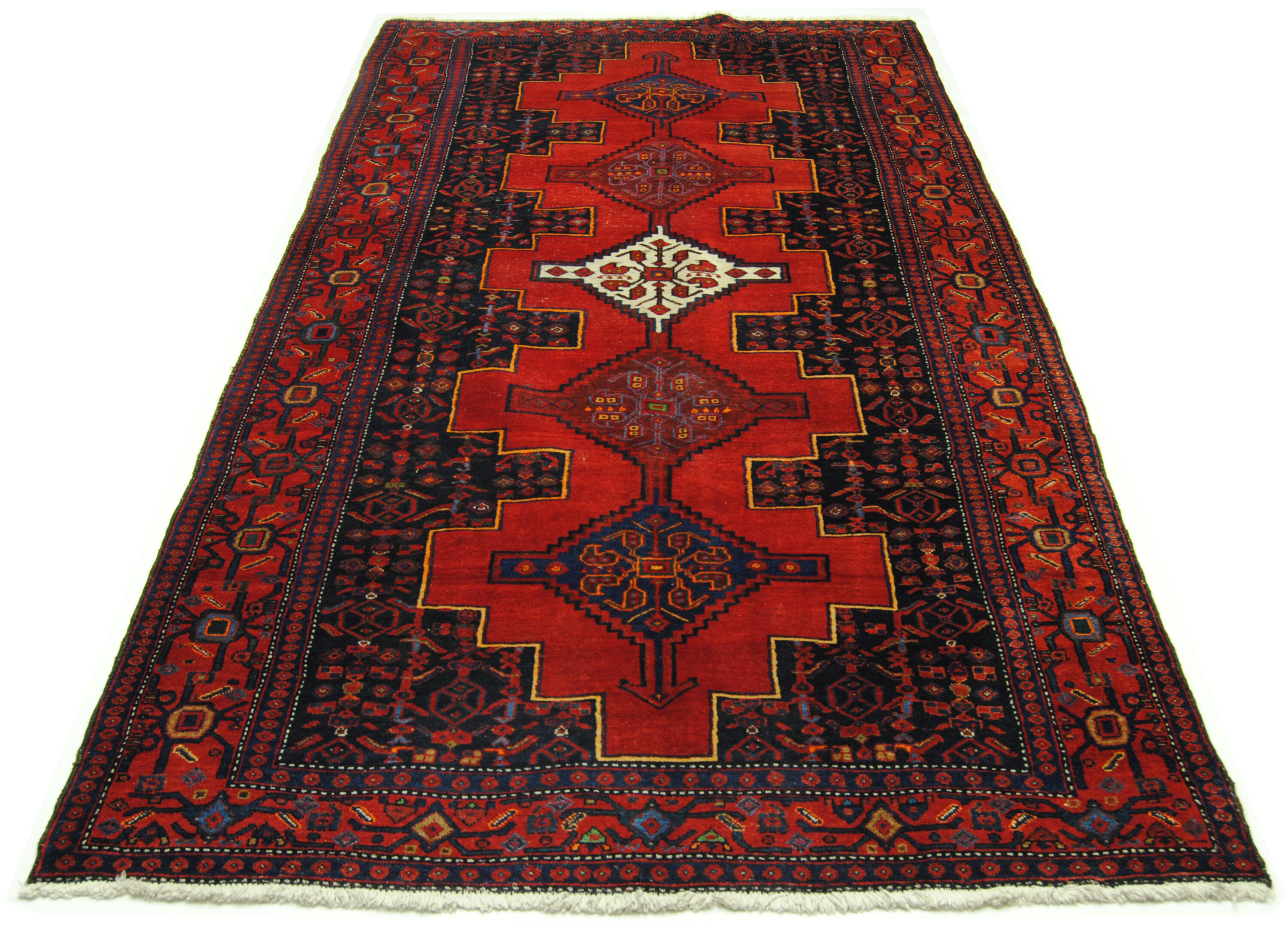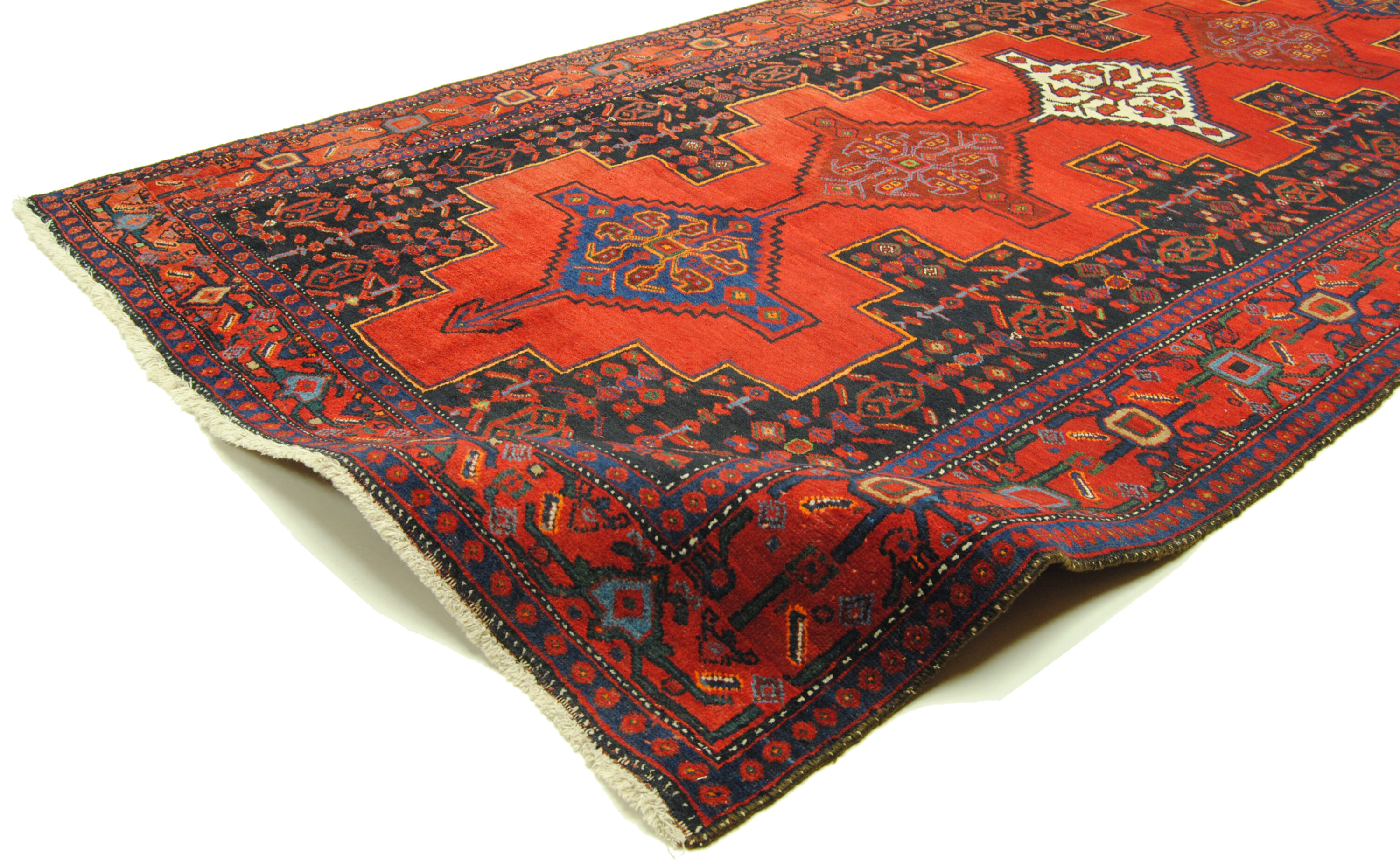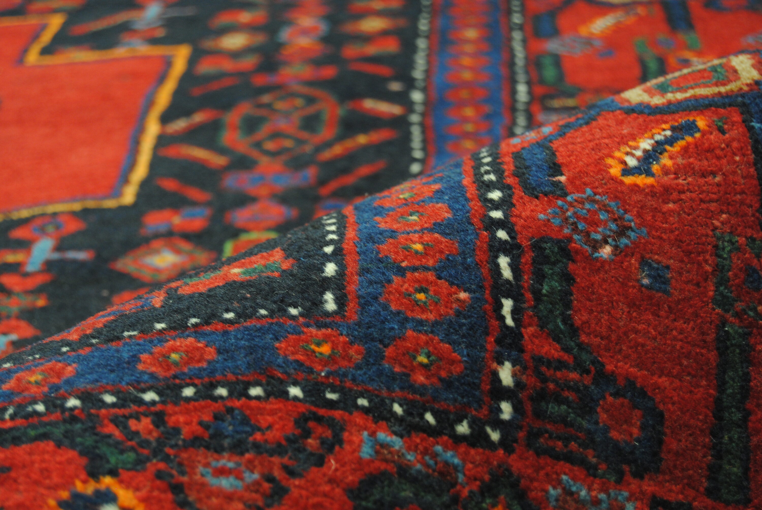 Sehr schönes, älteres Einzelstück aus den kurdischen Werkstätten Westpersiens inspiriert von kaukasischen Mustern. Fettreiche, strapazfähige Wollqualität, gediegene Farbzusammenstellung.