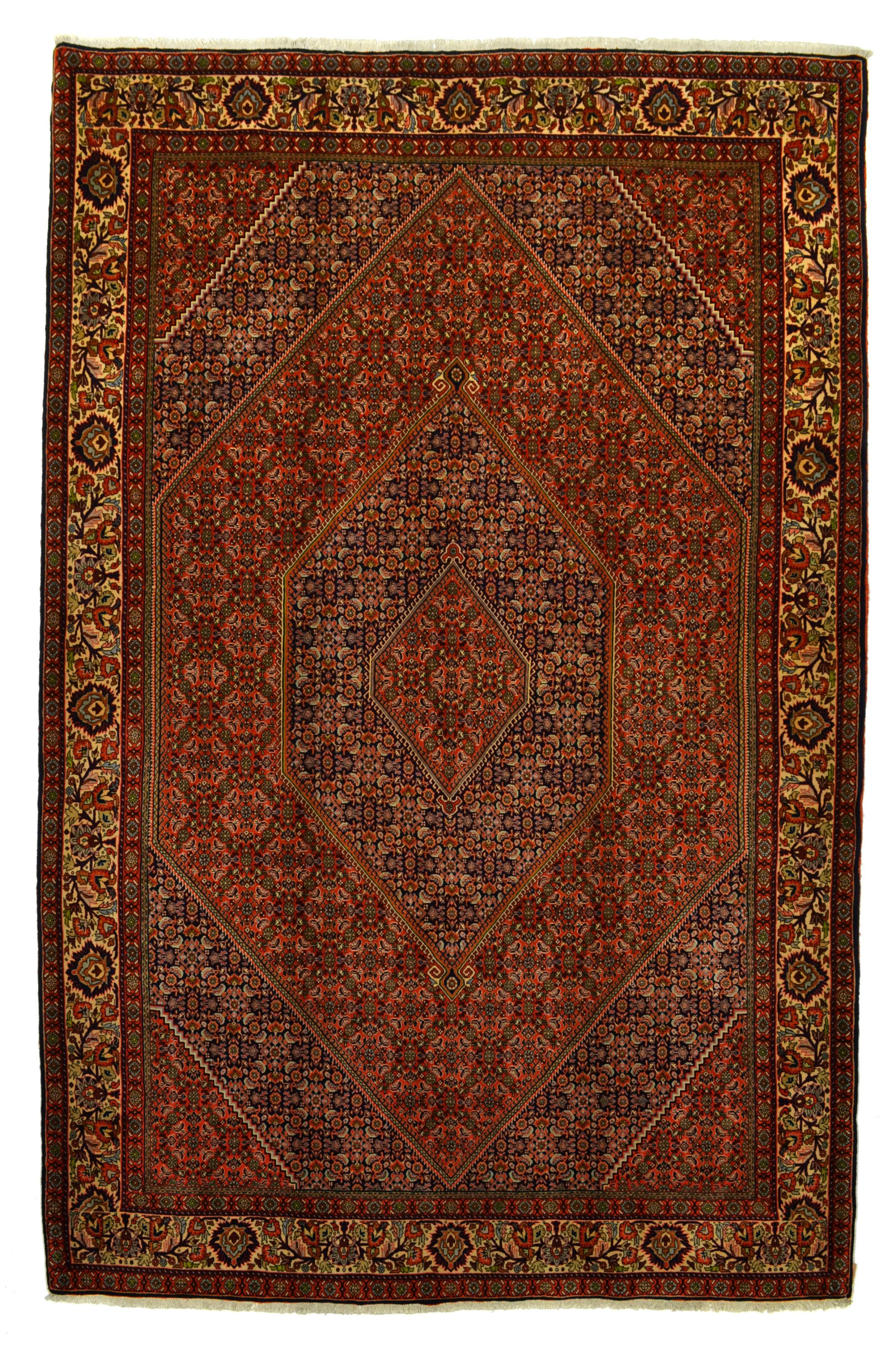 Bidjar-Teppiche werden häufig zu Recht als die strapazierfähigsten Teppiche der Welt bezeichnet. Dies liegt auch an der besonderen Art der Naßknüpfung. Der Schußdaden wird dabei angefeuchtet, wodurch eine besonders kompakte und geschichtete Knüpfung entsteht. Bidjar bestechen nebenbei auch durch ihre hochwertige Wollqualität und die warmen, gediegenen Farbkombinationen.