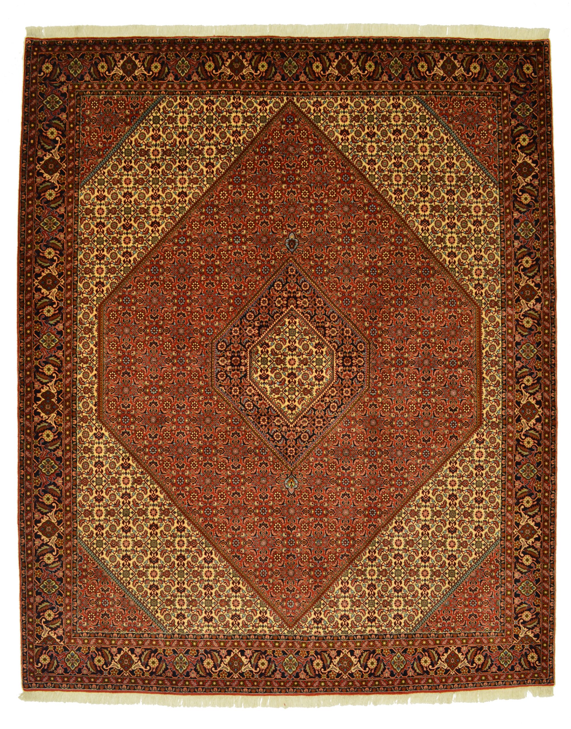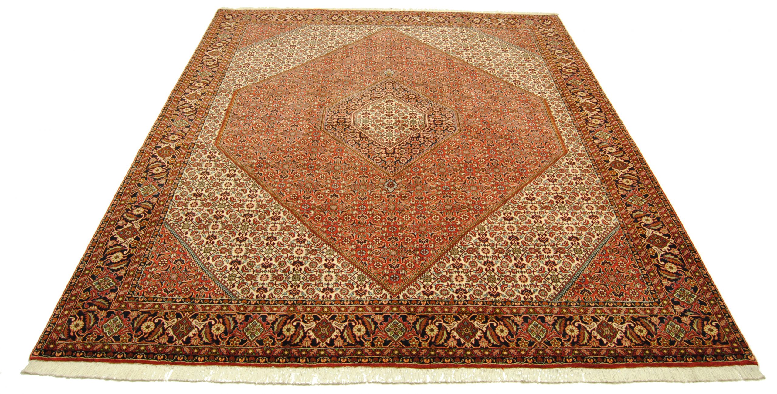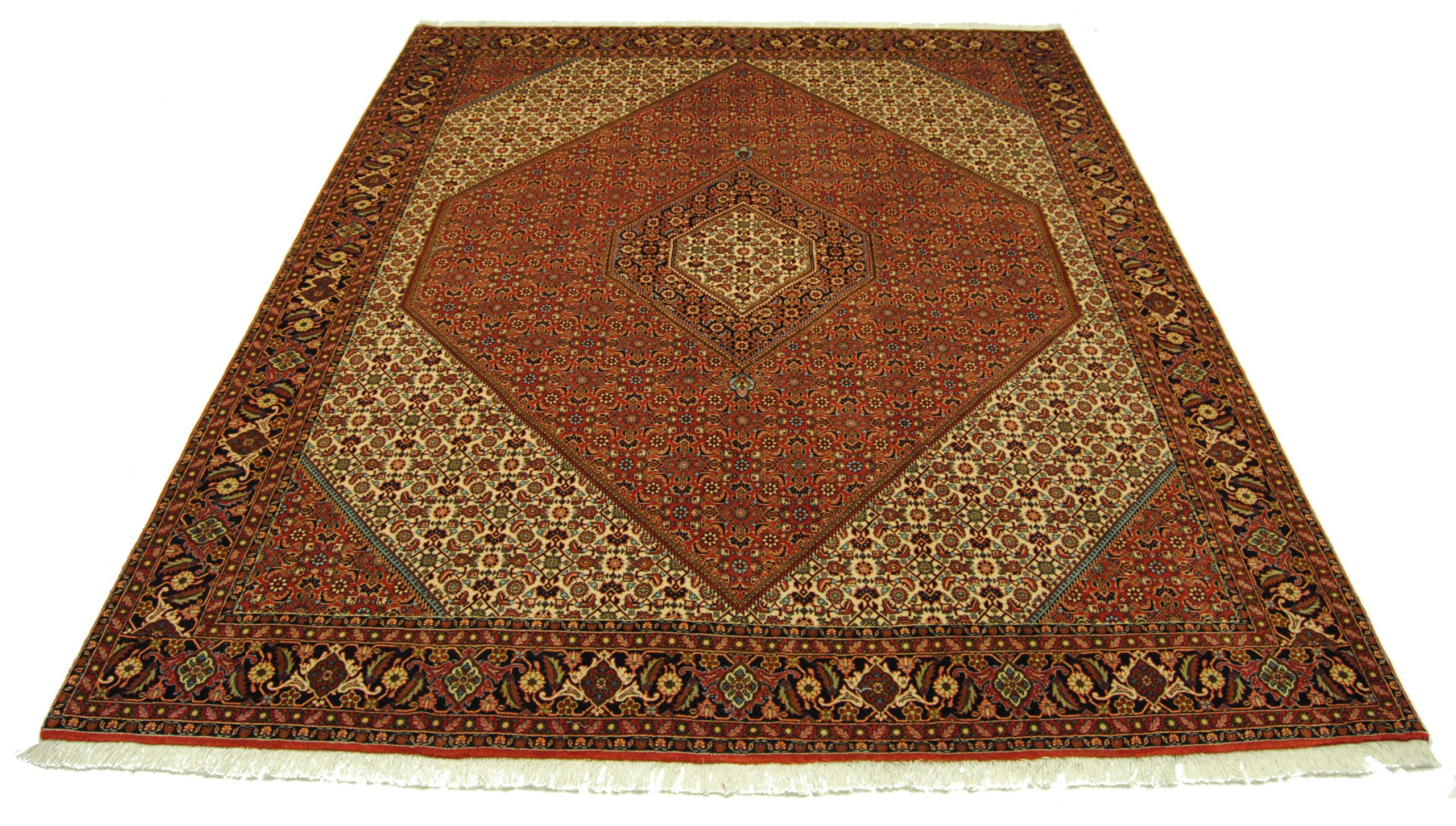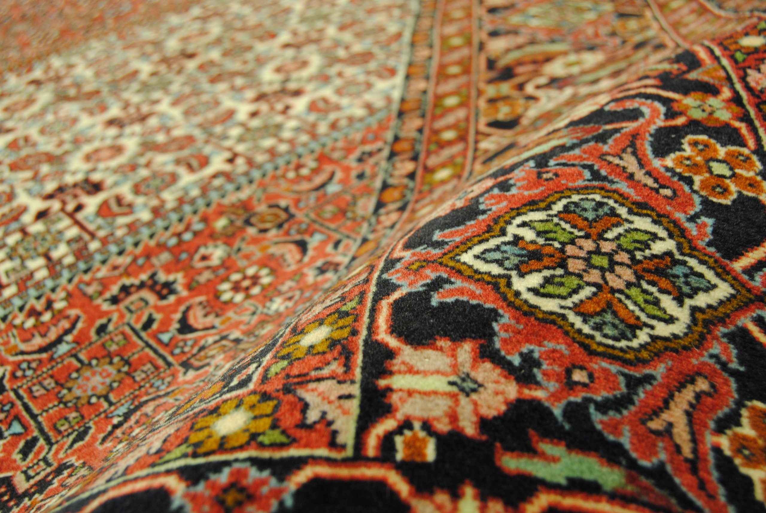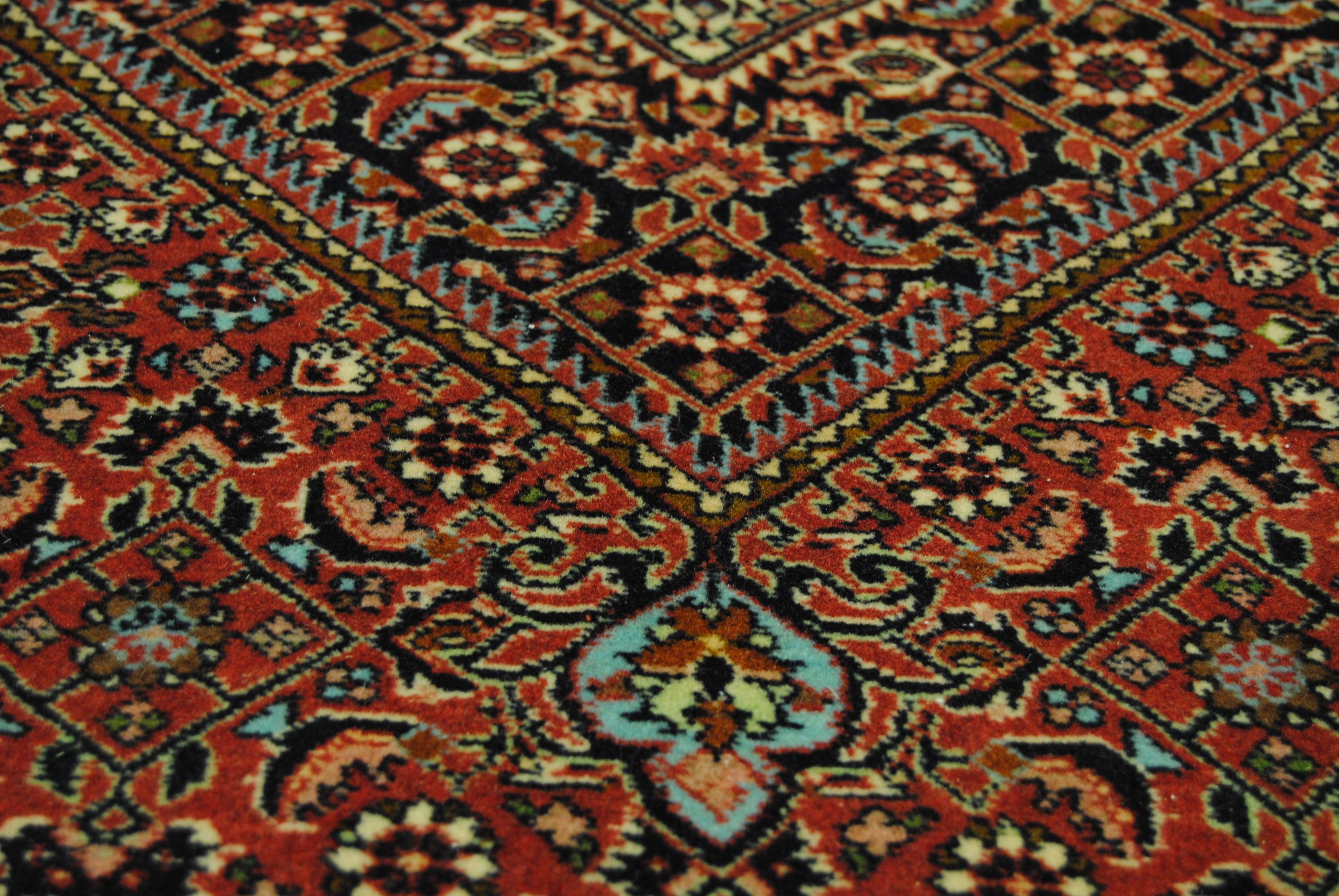 Bidjar-Teppiche werden häufig zu Recht als die strapazierfähigsten Teppiche der Welt bezeichnet. Dies liegt auch an der besonderen Art der Naßknüpfung. Der Schußdaden wird dabei angefeuchtet, wodurch eine besonders kompakte und geschichtete Knüpfung entsteht. Bidjar bestechen nebenbei auch durch ihre hochwertige Wollqualität und die warmen, gediegenen Farbkombinationen