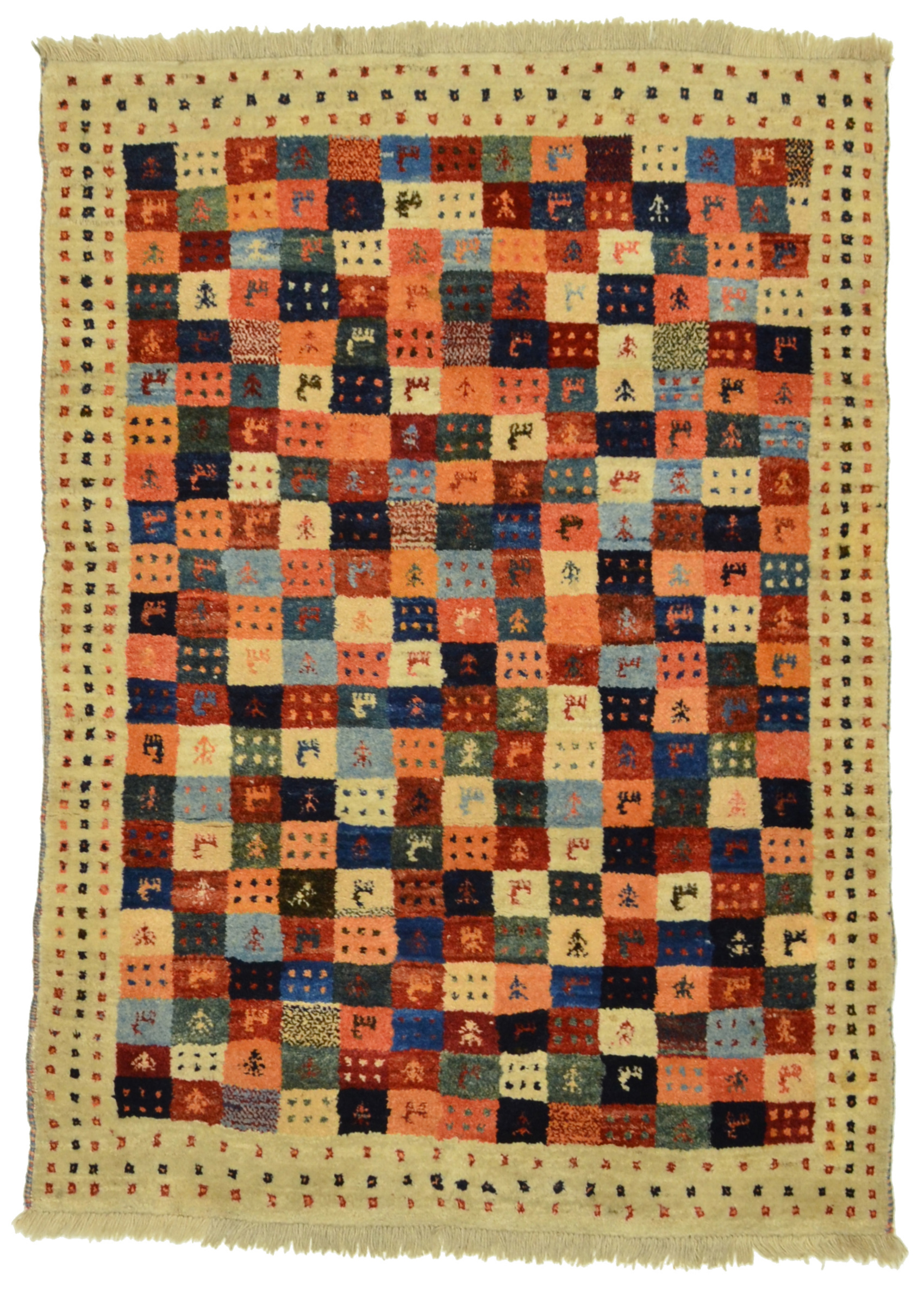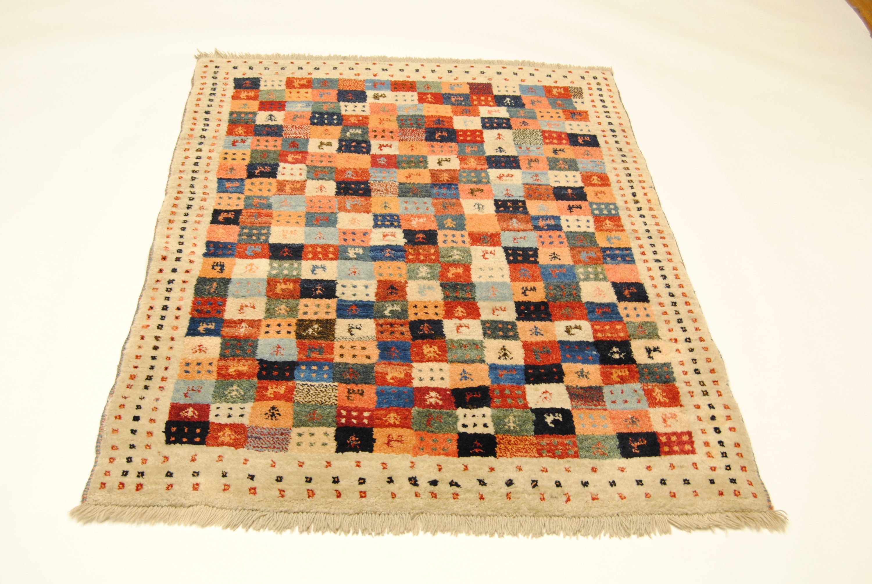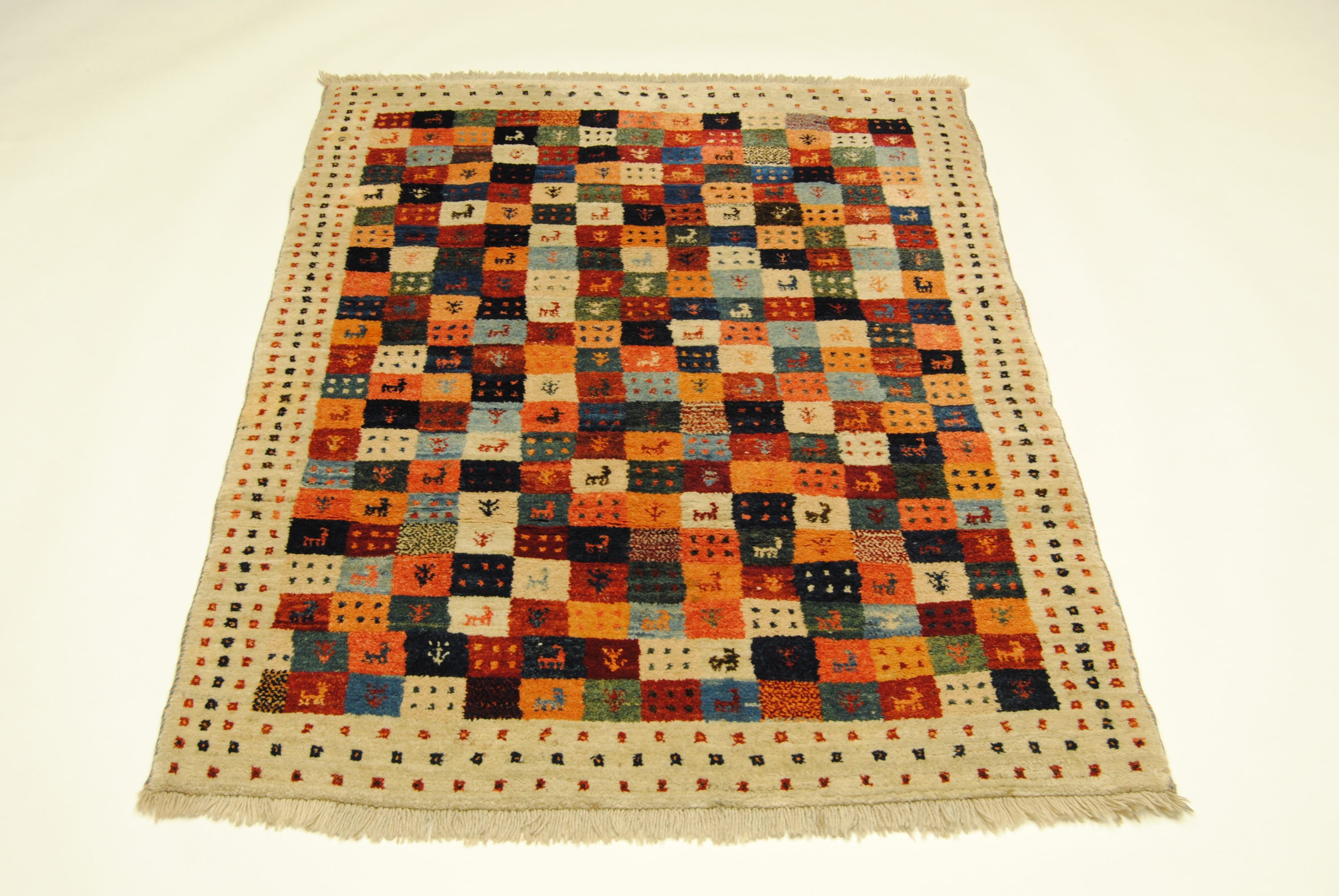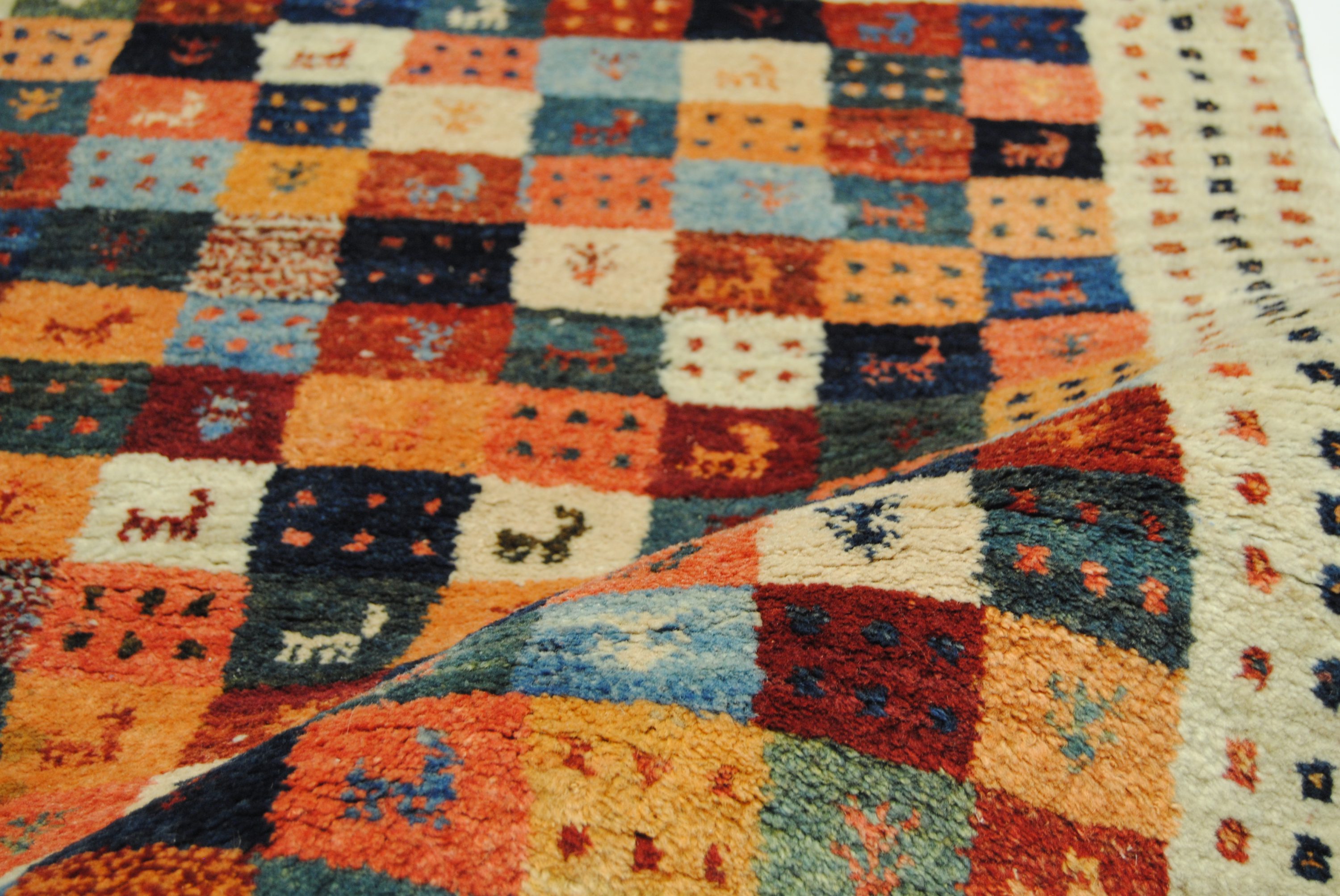 Gabbeh-Teppiche sind authentische Erzeugnisse aus den Nomadendörfern Südpersiens und zeichnen sich durch geschmeidige Wollqualität und schlichte, naive Musterarchitektur aus.