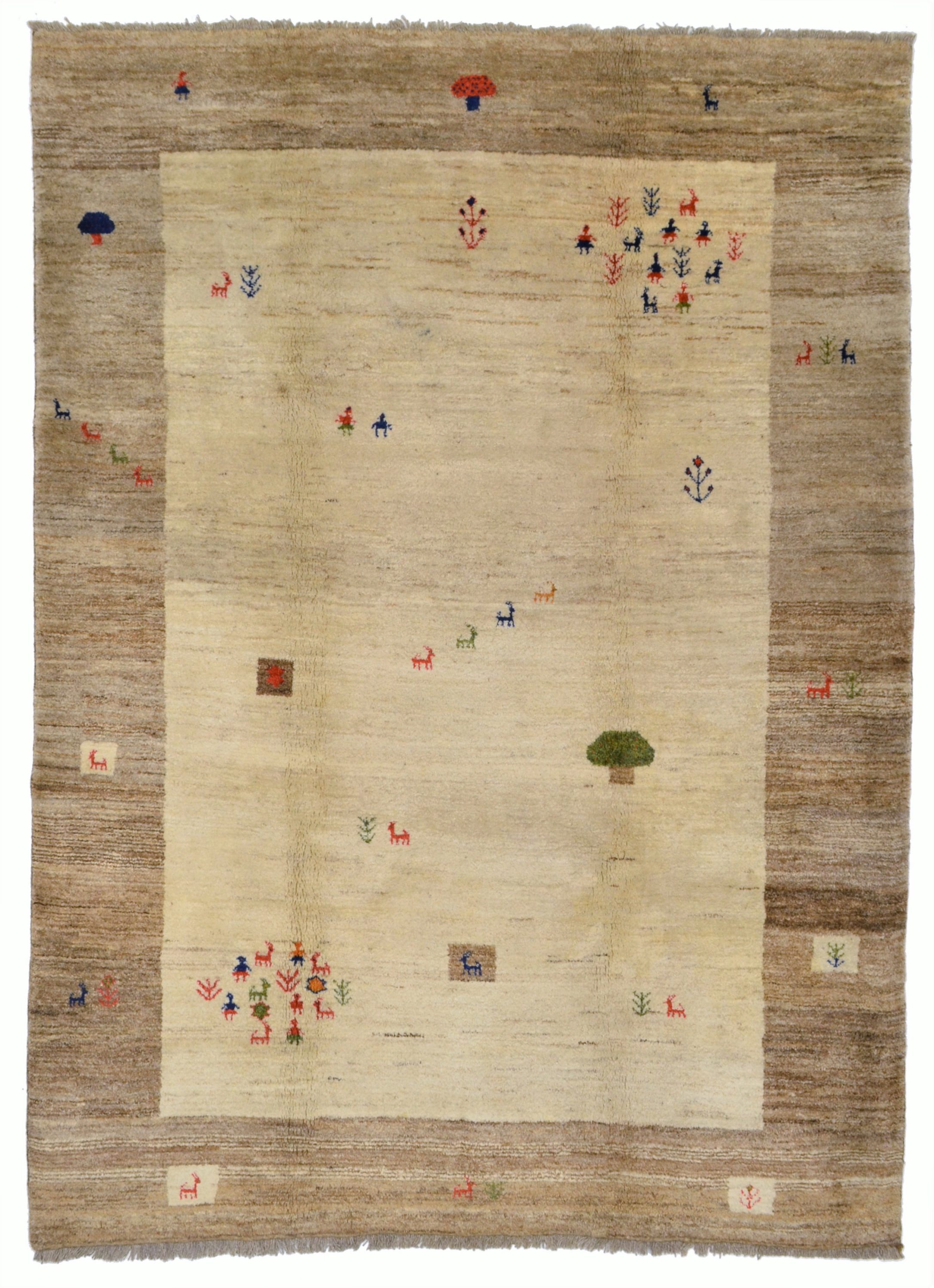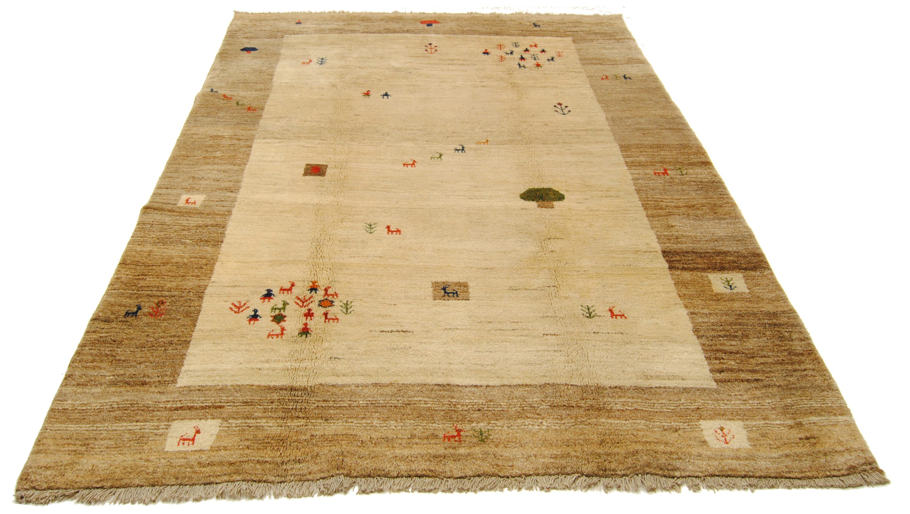 Gabbeh-Teppiche sind authentische Erzeugnisse aus den Nomadendörfern Südpersiens und zeichnen sich durch geschmeidige Wollqualität und schlichte, naive Musterarchitektur aus.