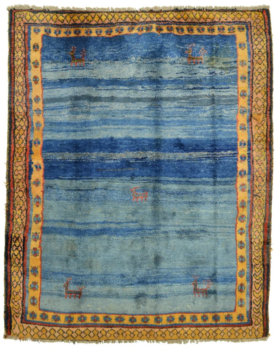 Gabbeh-Teppiche sind authentische Erzeugnisse aus den Nomadendörfern Südpersiens und zeichnen sich durch geschmeidige Wollqualität und schlichte, naive Musterarchitektur aus.