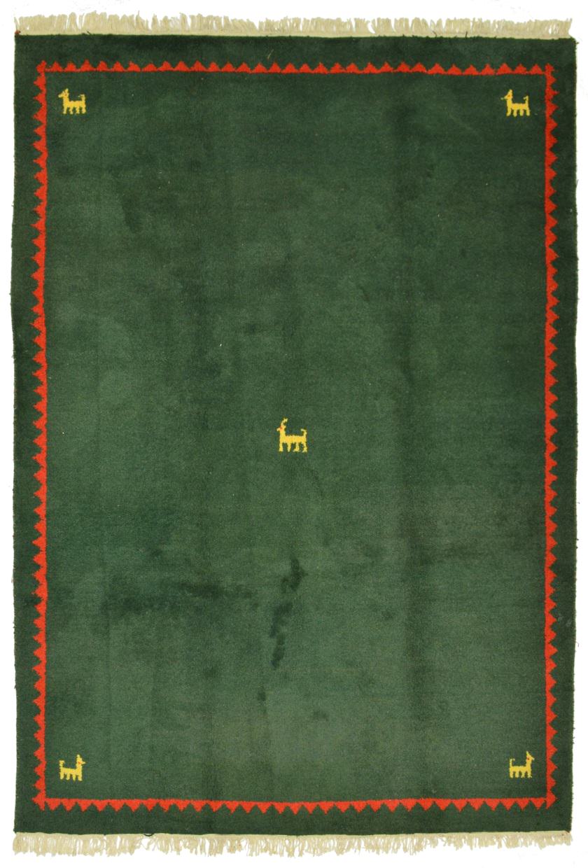 Dieser indische Gabbeh-Teppich zeichnet sich durch seine schlichte, naive Musterarchitektur und sein sehr gutes Preis-Leistungsverhältnis aus.
