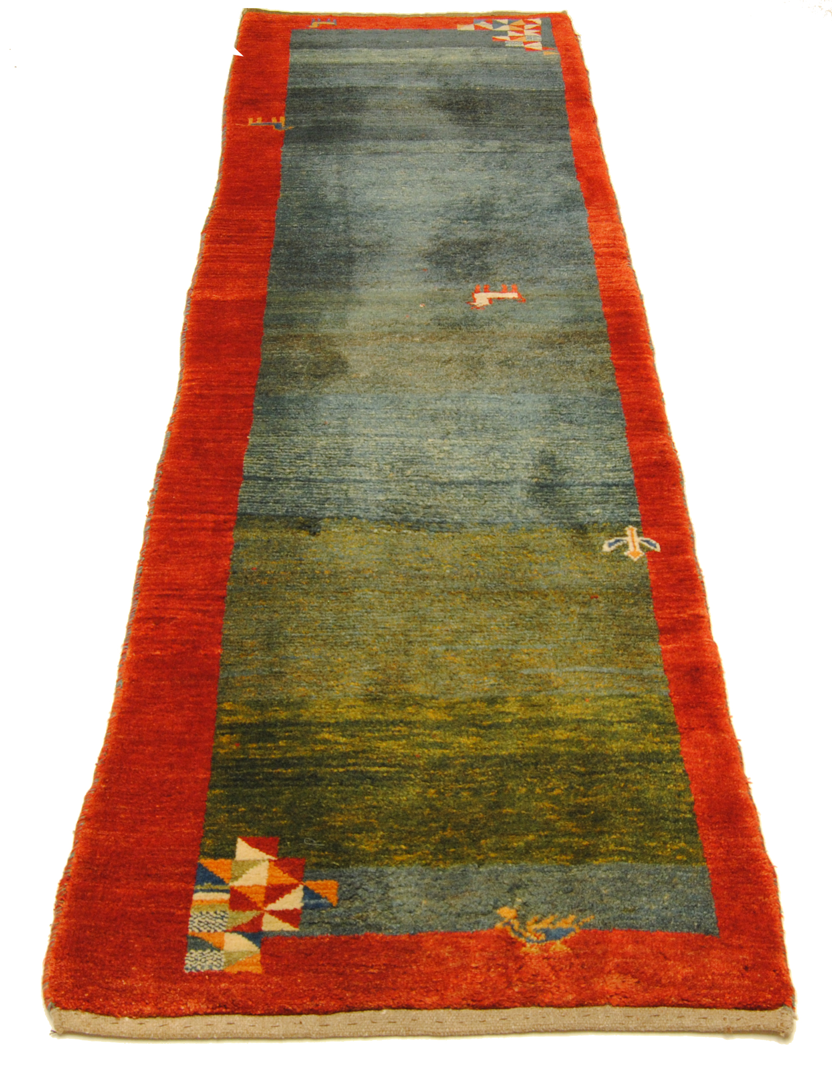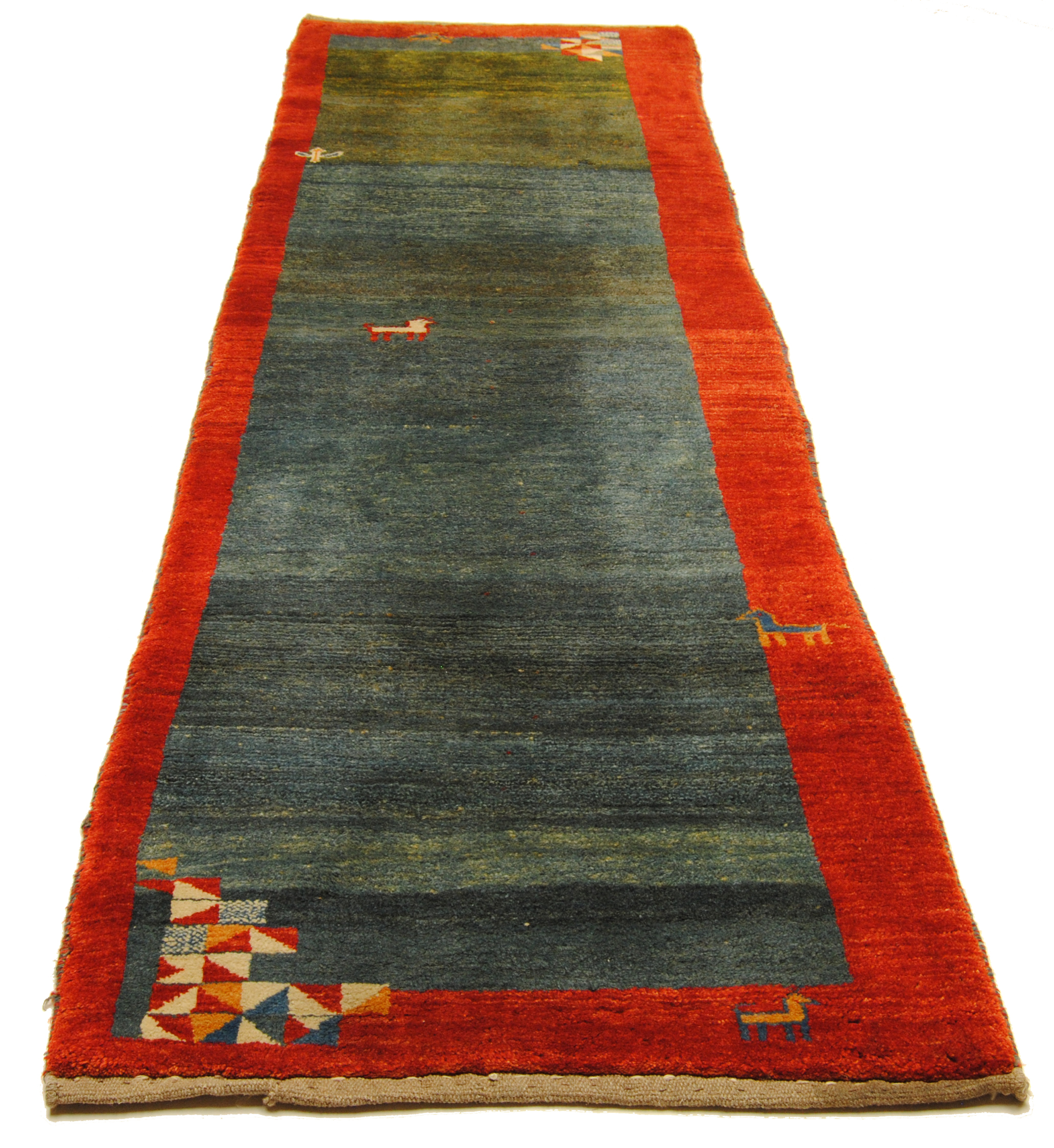 Gabbeh-Teppiche sind authentische Erzeugnisse aus den Nomadendörfern Südpersiens und zeichnen sich durch geschmeidige Wollqualität und schlichte, naive Musterarchitektur aus.