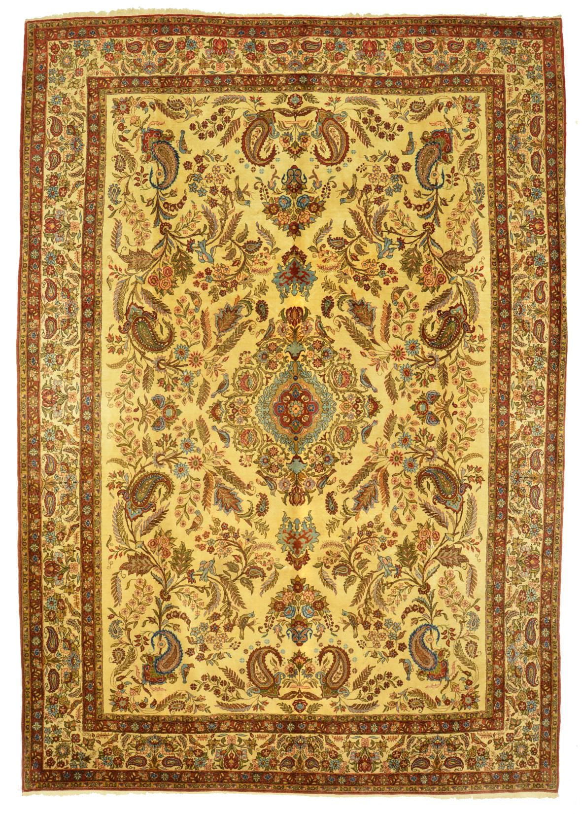 Ghom ist eine traditionsreiche, zentralperische Stadt in der Nähe von Teheran – bekannt auch als die heilige Stadt. Ghom Teppiche zählen zu den erlesensten und feinsten Knüpferzeugnissen Persiens und werden durchwegs von langjährig geschulten MeisterknüpferInnen gefertigt. Die Motivwelten entspringen dabei vor allem der hochklassigen Architektur Persiens – so verleihen Ghoms jedem Raum eine besonders edle Note.
