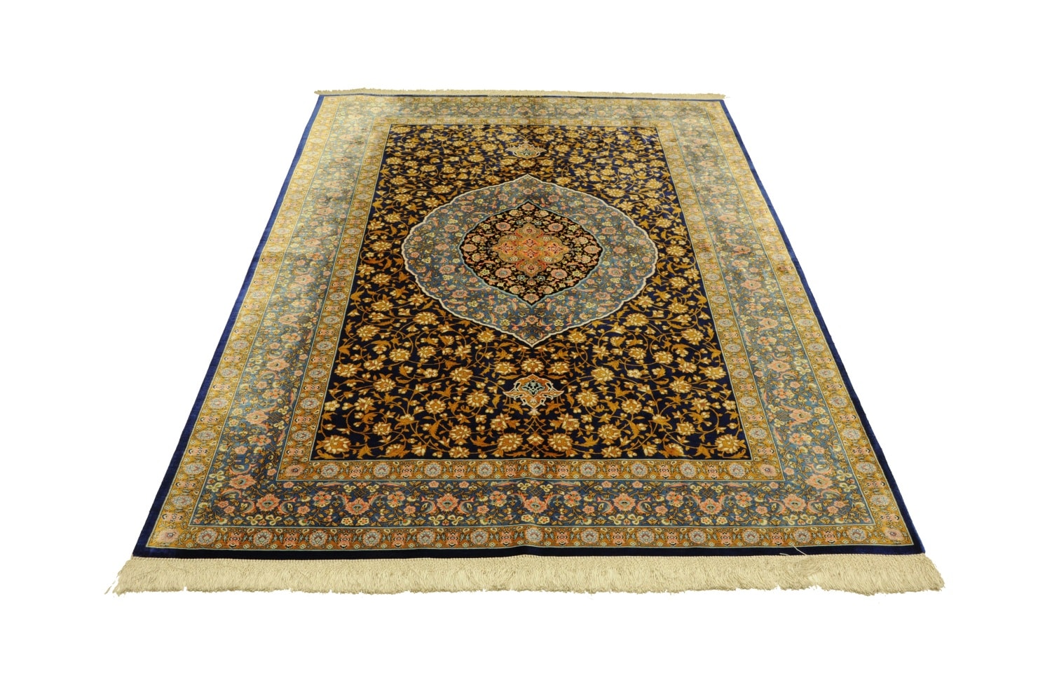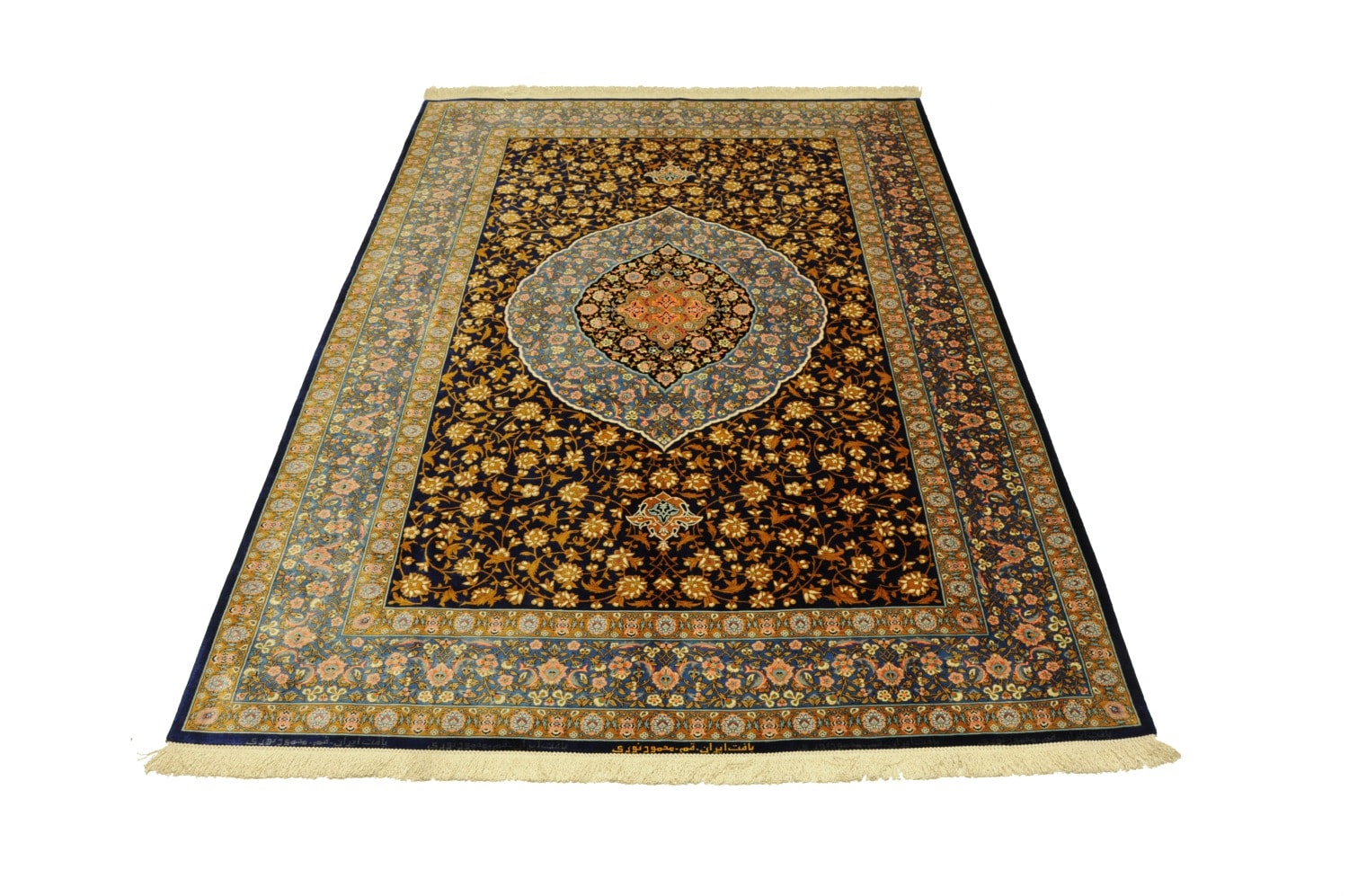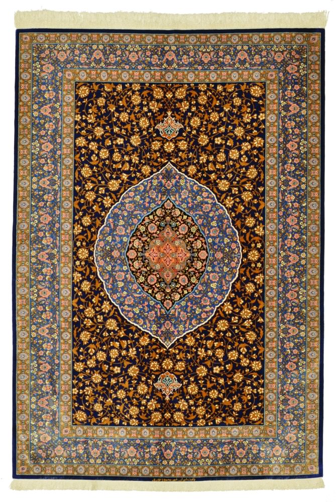 Ghom ist eine traditionsreiche, zentralperische Stadt in der Nähe von Teheran – bekannt auch als die heilige Stadt. Großen Ruhm haben speziell die Stücke aus Seide erlangt. Sie zählen zu den erlesensten und feinsten Knüpferzeugnissen der Welt und werden von langjährig geschulten MeisterknüpferInnen gefertigt. Die Motivwelten entspringen dabei vor allem der hochklassigen Architektur Persiens – so verleihen Ghoms jedem Raum eine besonders edle Note.