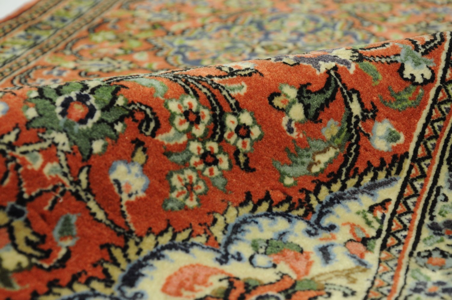 Ghom ist eine traditionsreiche, zentralperische Stadt in der Nähe von Teheran – bekannt auch als die heilige Stadt. Ghom Teppiche zählen zu den erlesensten und feinsten Knüpferzeugnissen Persiens und werden durchwegs von langjährig geschulten MeisterknüpferInnen gefertigt. Die Motivwelten entspringen dabei vor allem der hochklassigen Architektur Persiens – so verleihen Ghoms jedem Raum eine besonders edle Note.