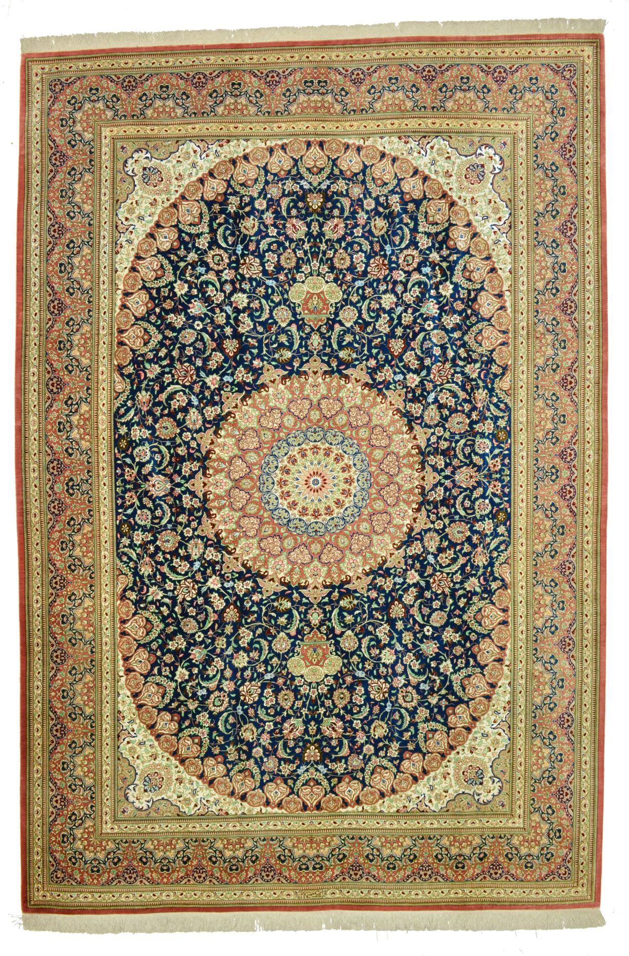 Ghom ist eine traditionsreiche, zentralperische Stadt in der Nähe von Teheran – bekannt auch als die heilige Stadt. Großen Ruhm haben speziell die Stücke aus Seide erlangt. Sie zählen zu den erlesensten und feinsten Knüpferzeugnissen der Welt und werden von langjährig geschulten MeisterknüpferInnen gefertigt. Die Motivwelten entspringen dabei vor allem der hochklassigen Architektur Persiens – so verleihen Ghoms jedem Raum eine besonders edle Note.