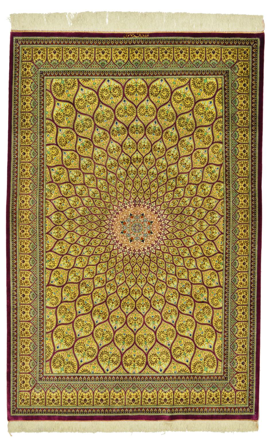 Ghom ist eine traditionsreiche, zentralperische Stadt in der Nähe von Teheran – bekannt auch als die heilige Stadt. Ghom Teppiche zählen zu den erlesensten und feinsten Knüpferzeugnissen Persiens und werden durchwegs von langjährig geschulten MeisterknüpferInnen gefertigt. Die Motivwelten entspringen dabei vor allem der hochklassigen Architektur Persiens – so verleihen Ghoms jedem Raum eine besonders edle Note.