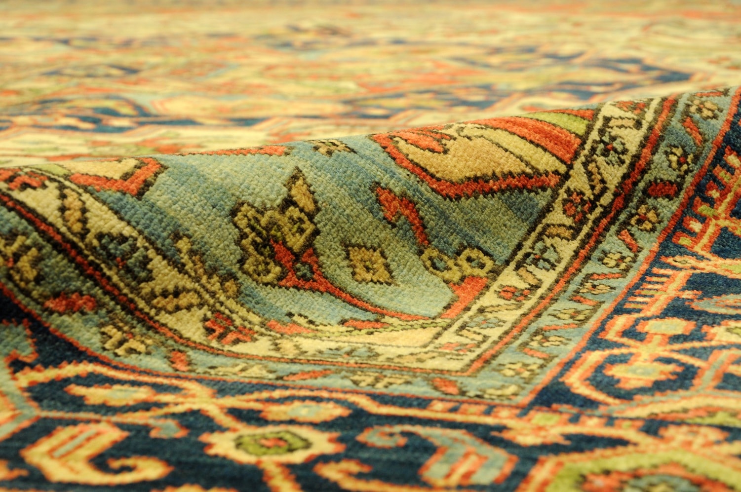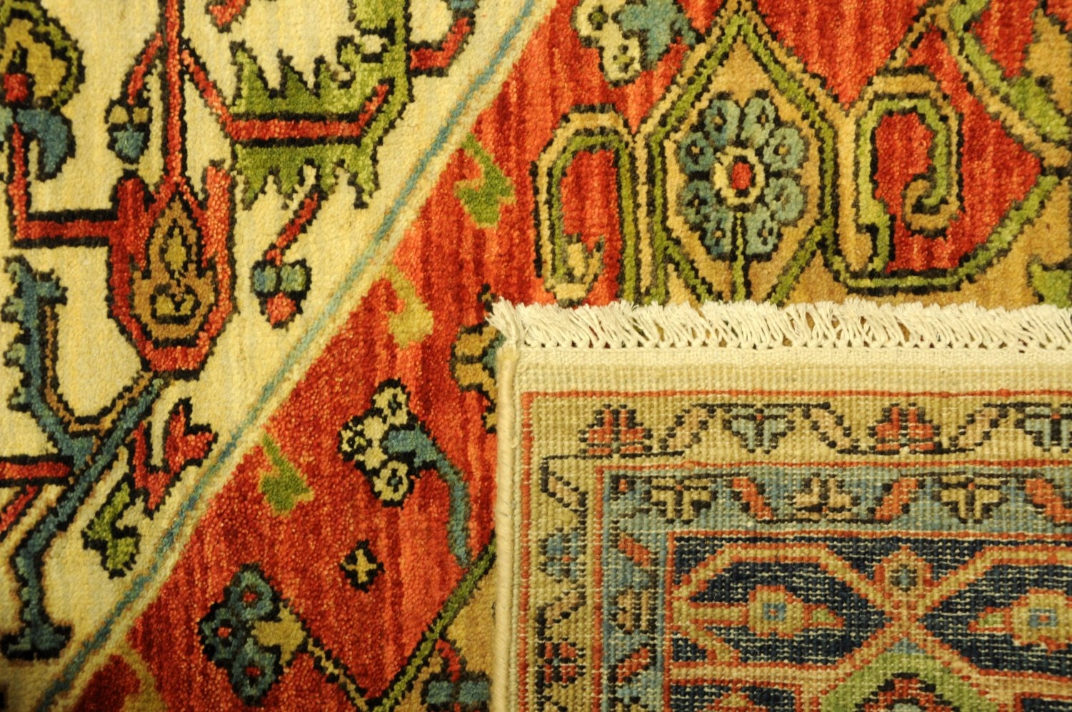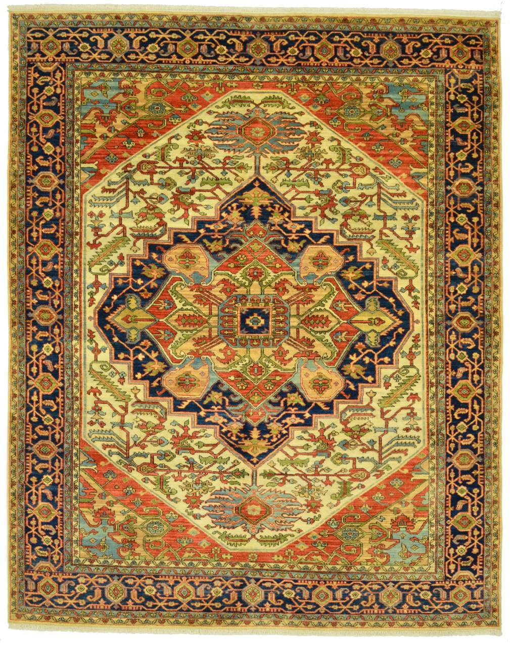 Die Heriz Serapi Revival Kollektion nimmt Bezug auf eine berühmte Epoche der persischen Knüpfkultur des 19. Jahrhunderts. Engagierte indische Teppiche-Werkstätten setzen diese archaisch anmutenden, historisch bedeutsamen Muster – benannt nach der norpersischen Stadt Sarab – mit sehr guter Wolle und edlen, patinierten Farben um.