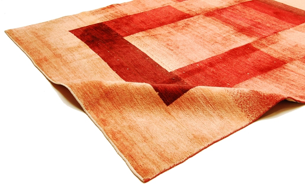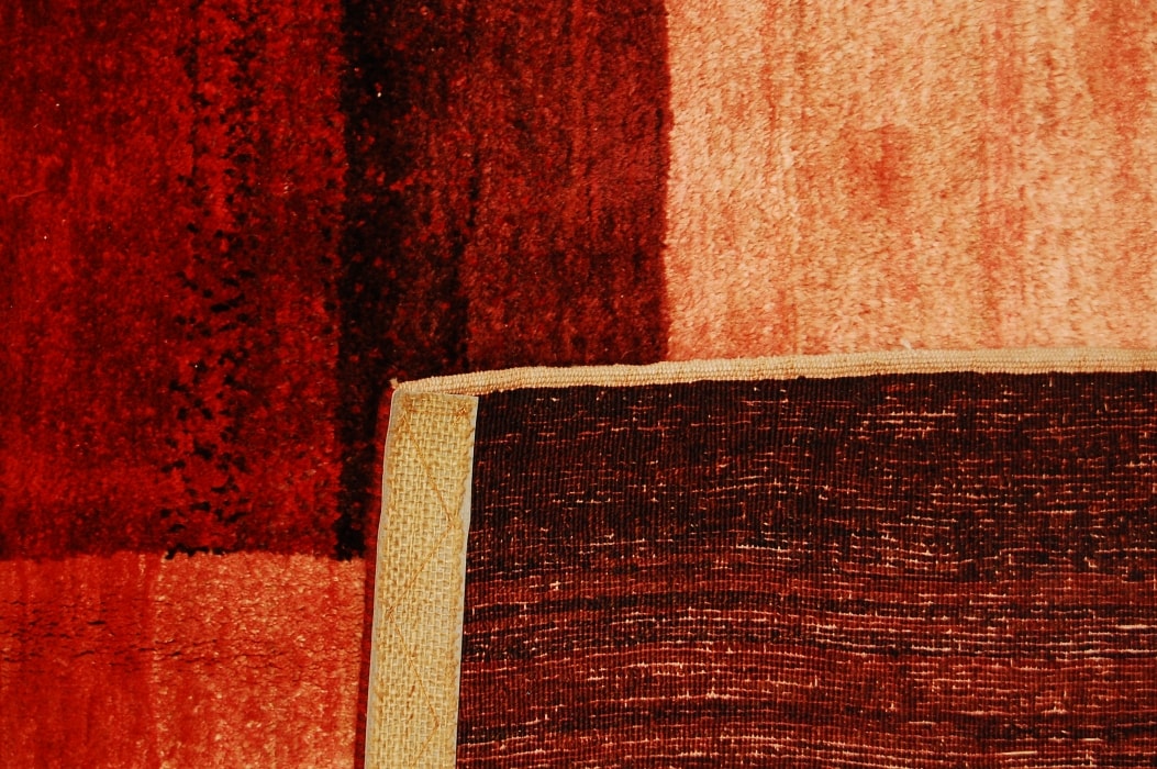 Eintauschteppich, Flor teil dünn, Ränder leicht ausgefranst. Sehr schöne Farbkomposition,