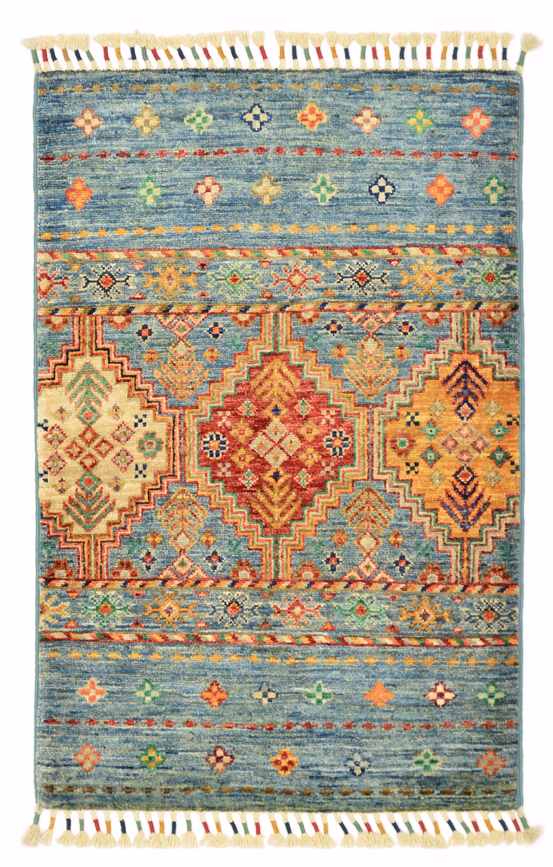 Die Muster der erfrischenden Khorjeen-Kollektion sind inspiriert durch beliebte kaukasische Sammlerteppiche. Die Kombination aus besonders strapazfähiger, glanzreicher Gebirgswolle und ansprechenden Farbwelten schafft außergewöhnliche Wohnerlebnisse.