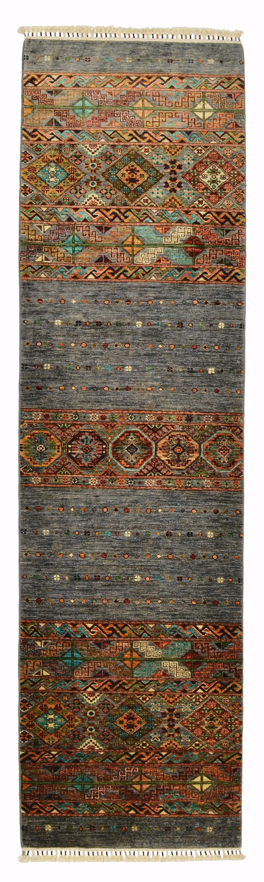 Die Muster der erfrischenden Khorjeen-Kollektion sind inspiriert durch beliebte kaukasische Sammlerteppiche. Die Kombination aus besonders strapazfähiger, glanzreicher Gebirgswolle und ansprechenden Farbwelten schafft außergewöhnliche Wohnerlebnisse.