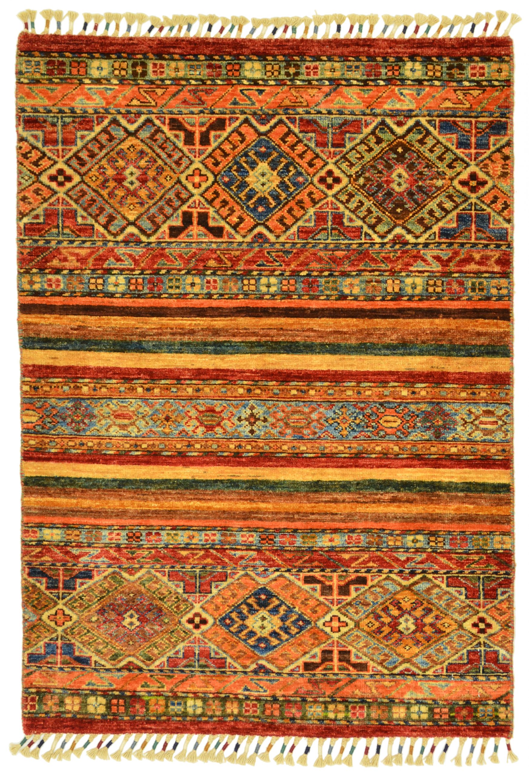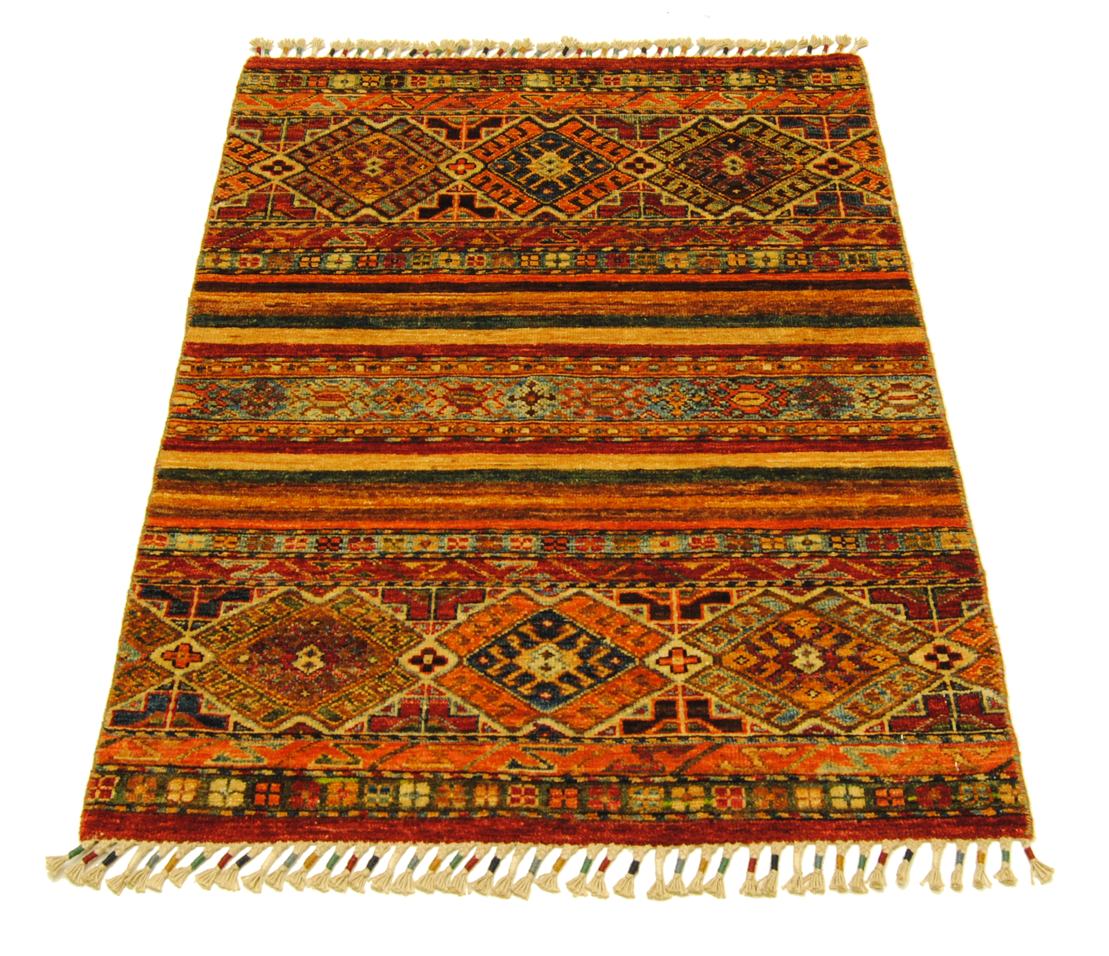 Die Muster der erfrischenden Khorjeen-Kollektion sind inspiriert durch beliebte kaukasische Sammlerteppiche. Die Kombination aus besonders strapazfähiger, glanzreicher Gebirgswolle und ansprechenden Farbwelten schafft außergewöhnliche Wohnerlebnisse.