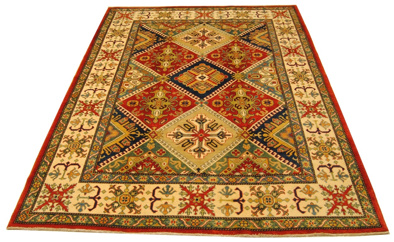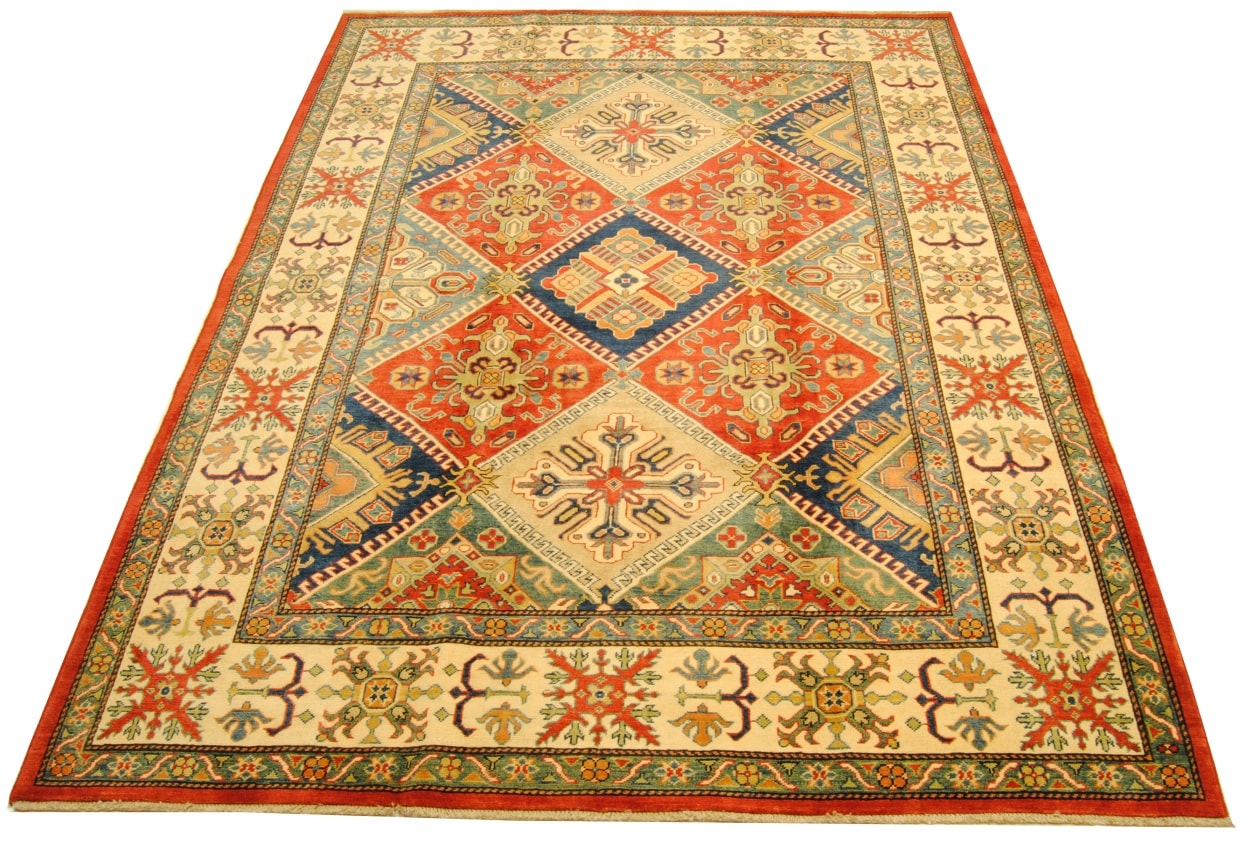 Kazak-Teppiche zählen mit ihren streng geometrisch-archaischen Mustern und den warmen Farben zu den besonders beliebten Klassikern. Inspiriert von den bekannten kaukasischen Originalen strahlen Sie zeitlose Wohnkultur aus.