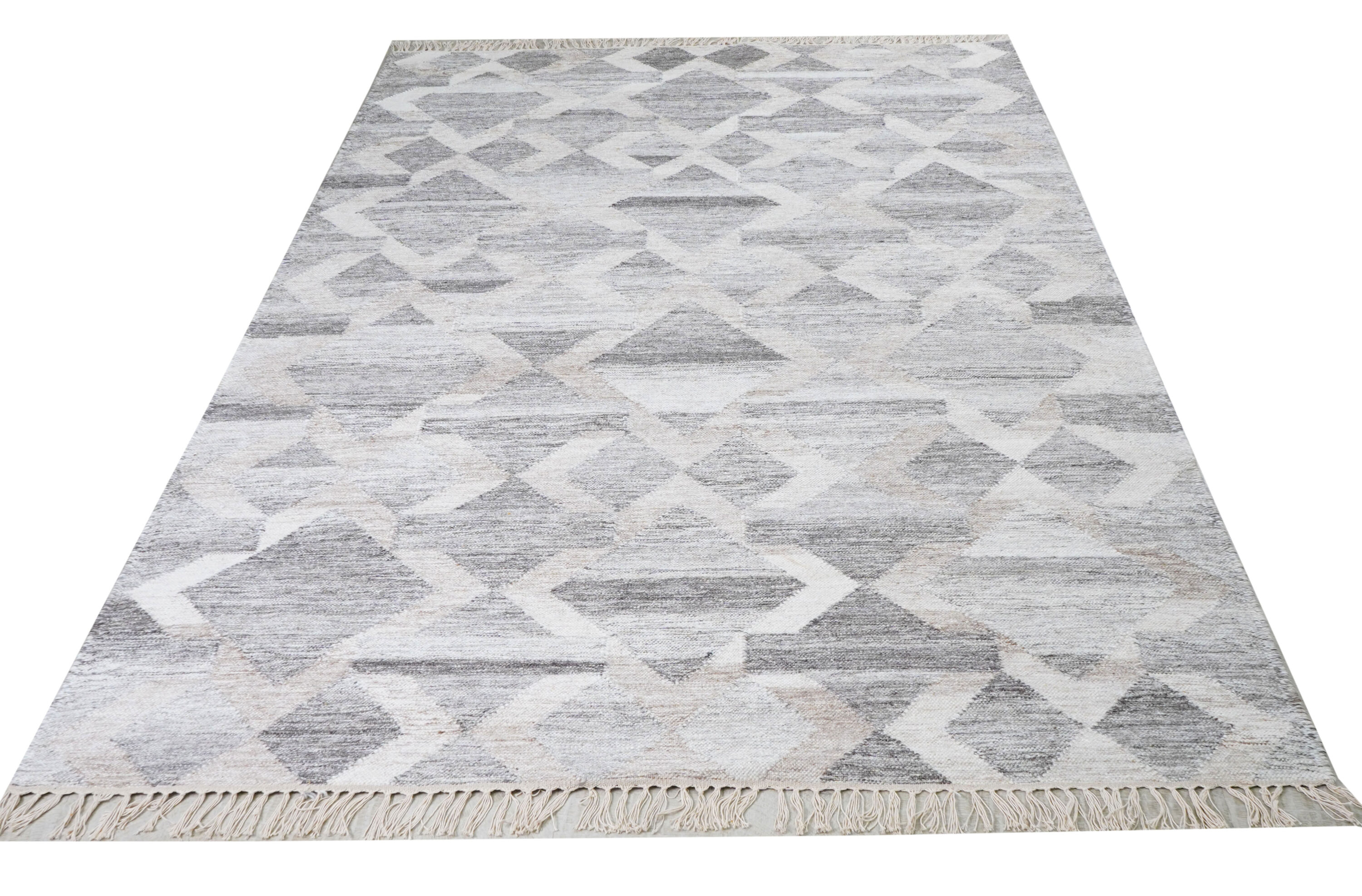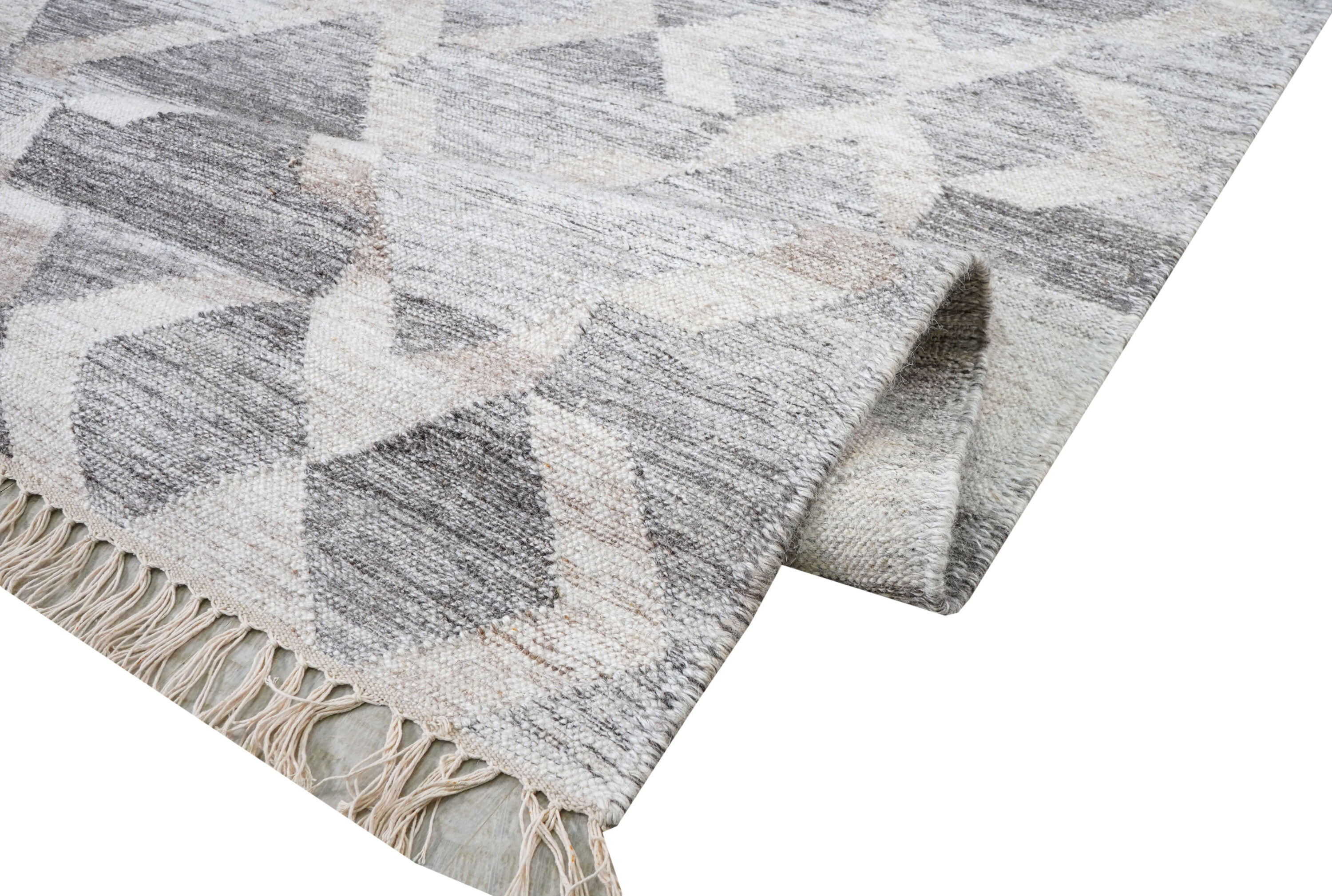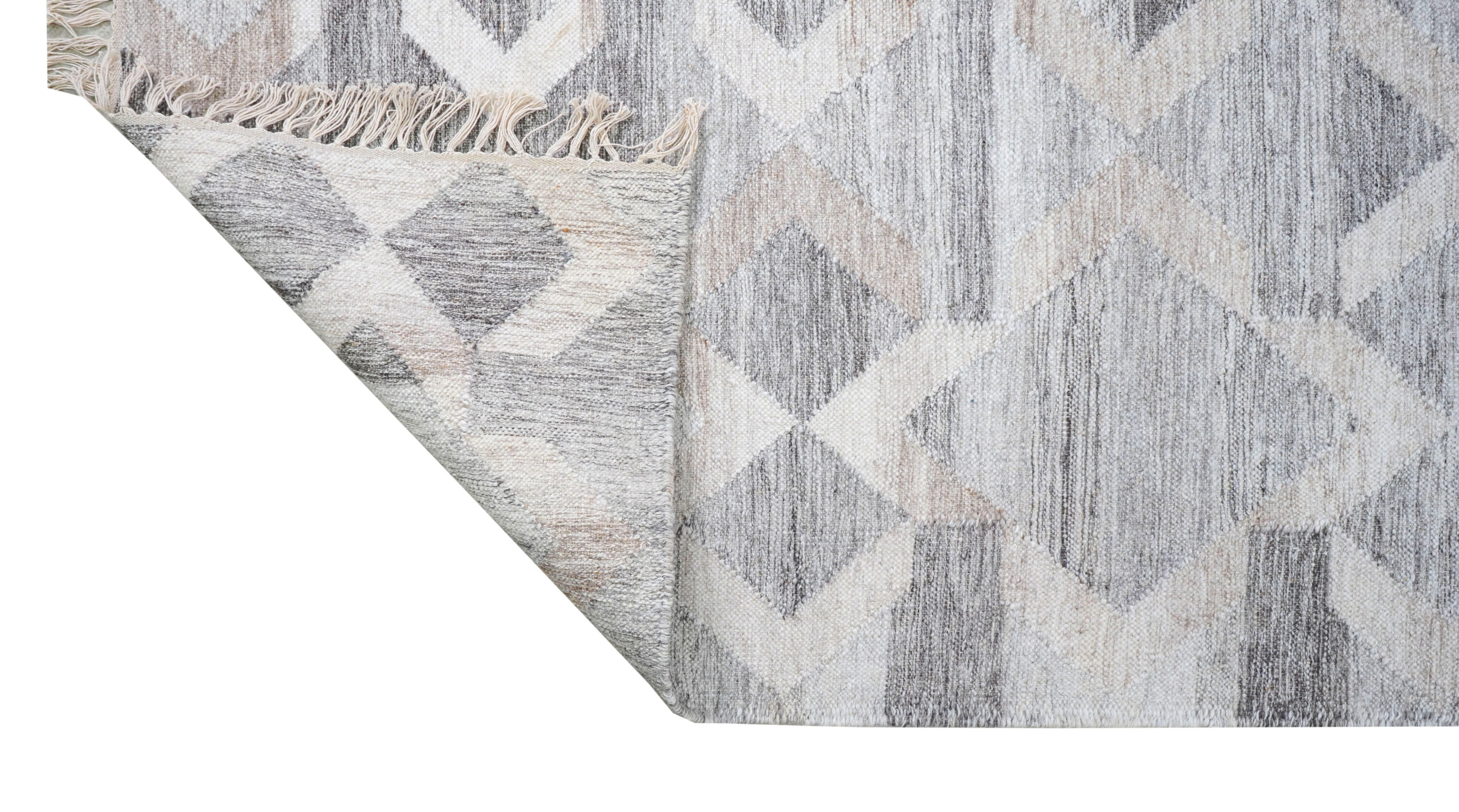 Edle Kelim-Kunst aus Indien mit geometrischer Musterung und gedeckten Farben.
