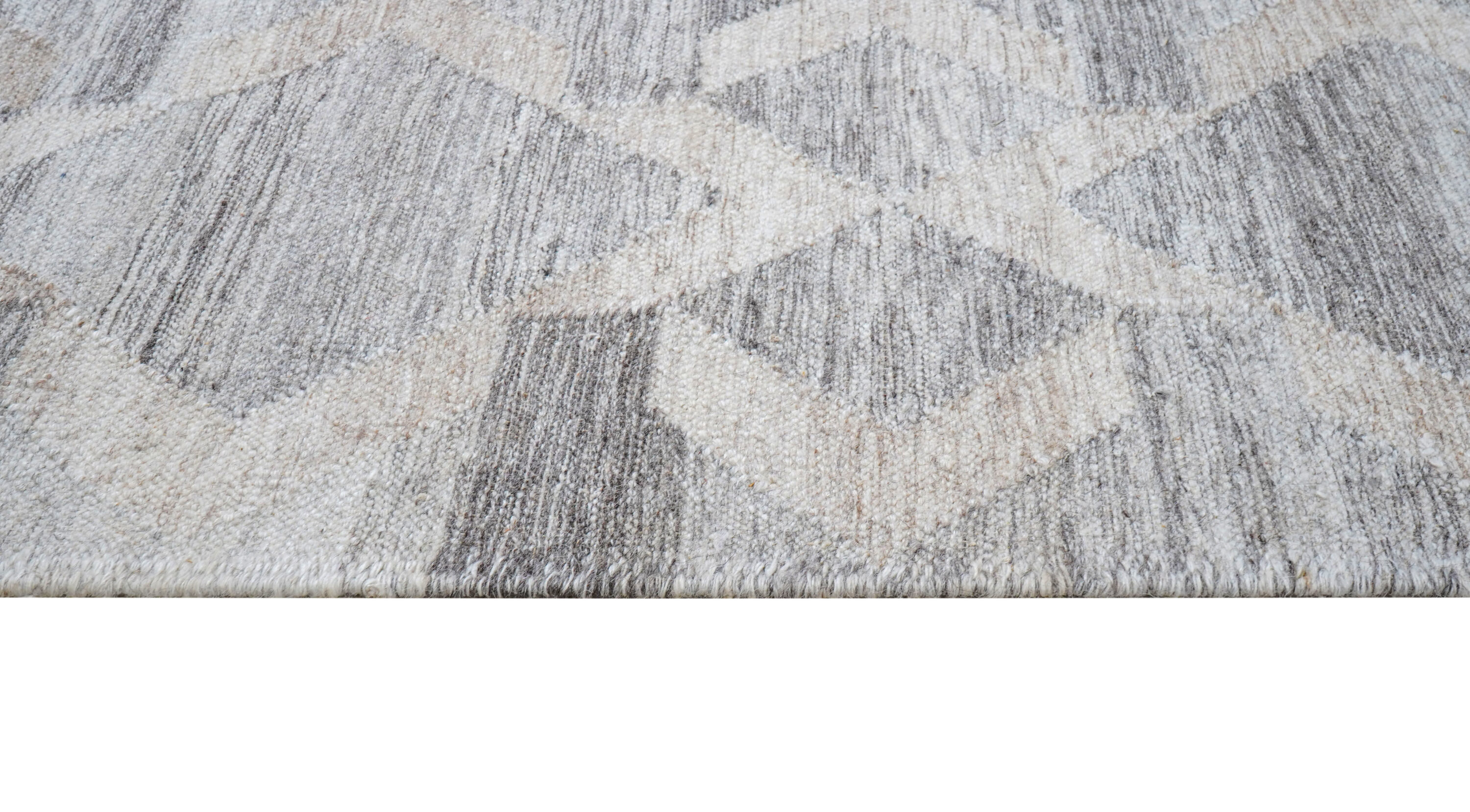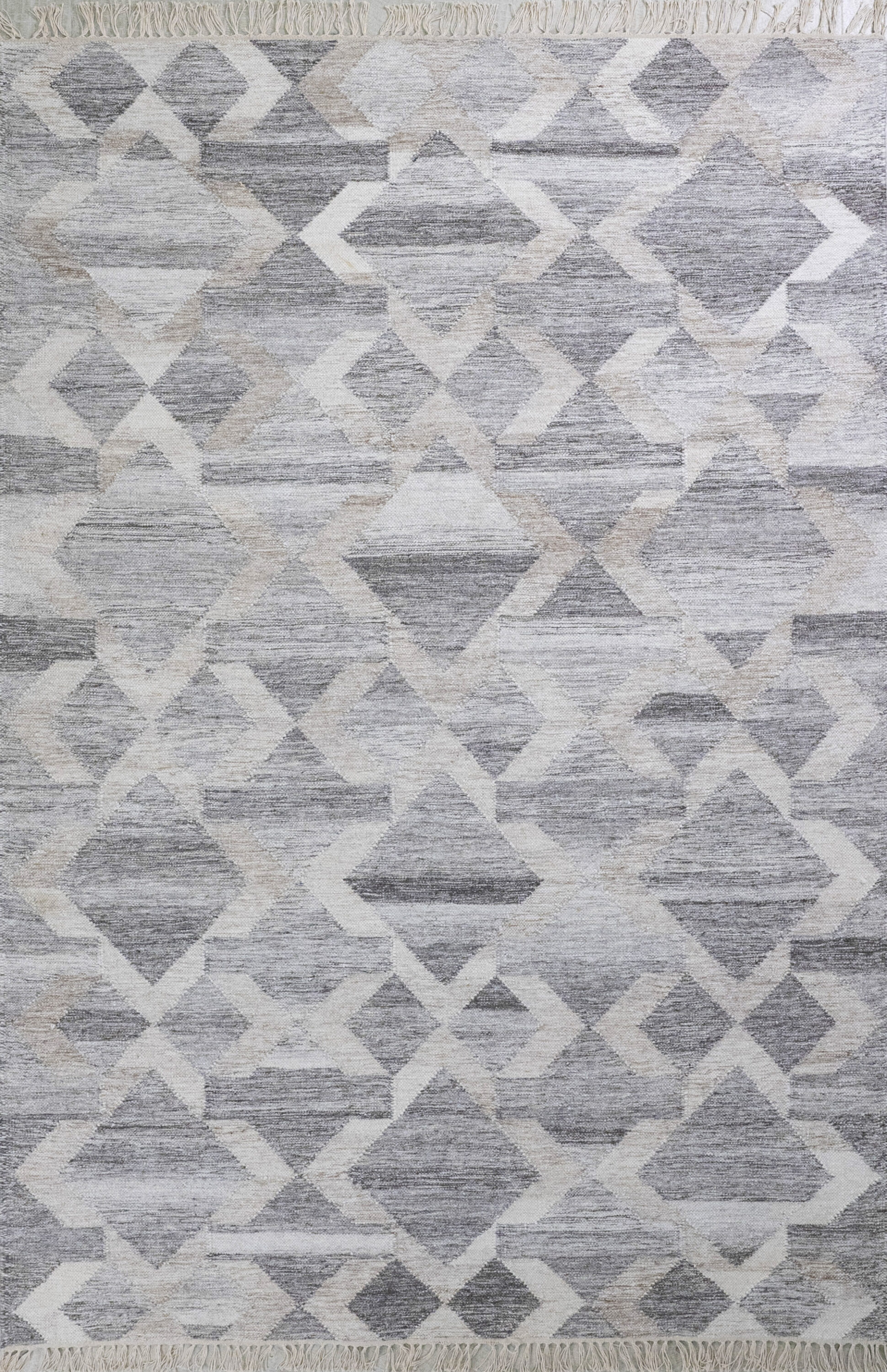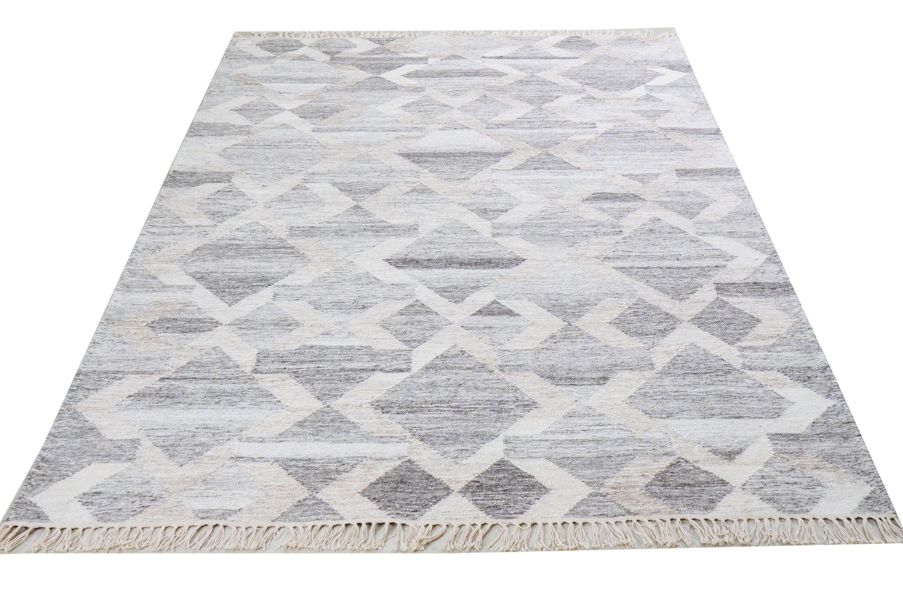 Edle Kelim-Kunst aus Indien mit geometrischer Musterung und gedeckten Farben.