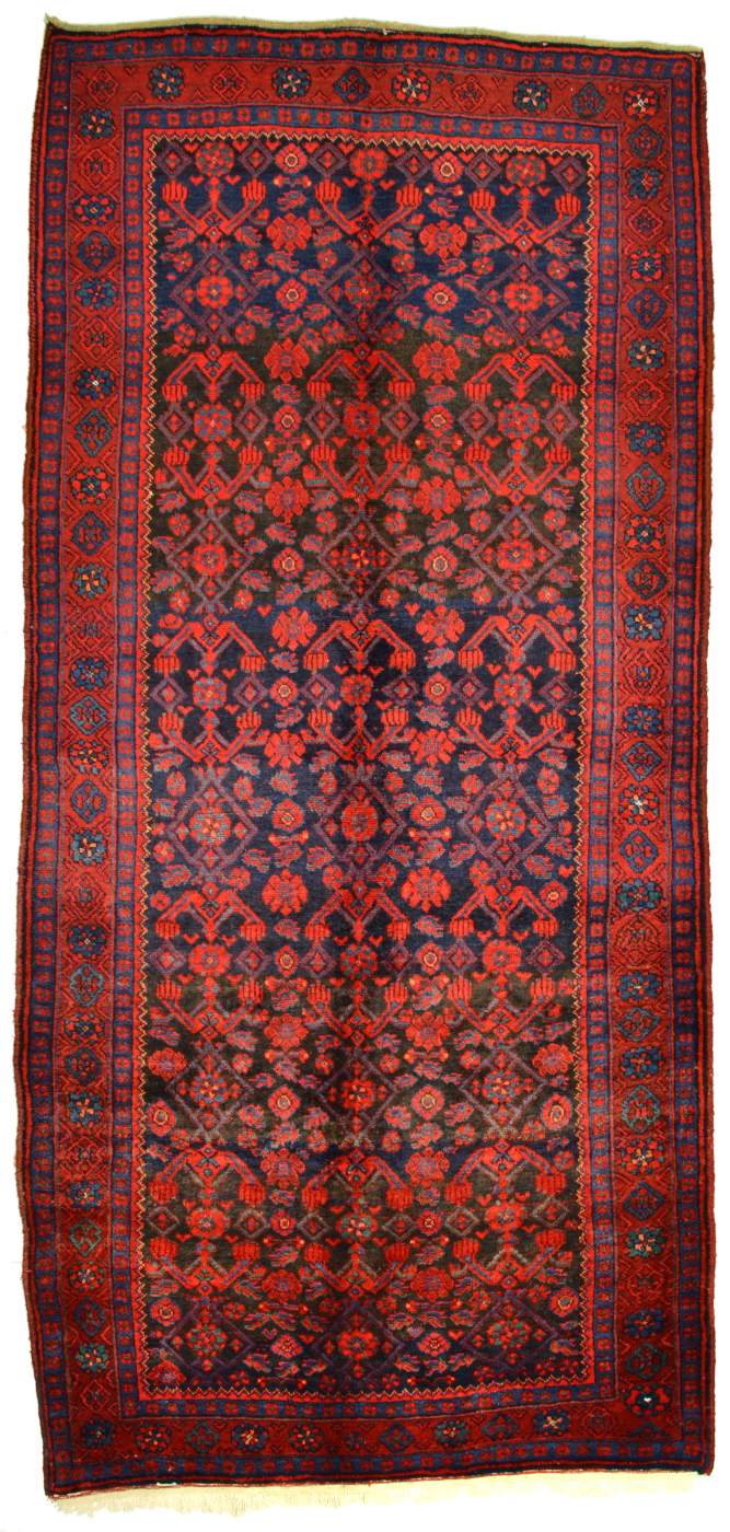 Sehr schönes, älteres Einzelstück aus den kurdischen Werkstätten Westpersiens inspiriert von kaukasischen Mustern. Fettreiche, strapazfähige Wollqualität, gediegene Farbzusammenstellung.