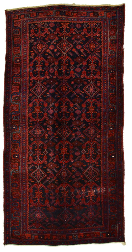 Sehr schönes, älteres Einzelstück aus den kurdischen Werkstätten Westpersiens inspiriert von kaukasischen Mustern. Fettreiche, strapazfähige Wollqualität, gediegene Farbzusammenstellung.