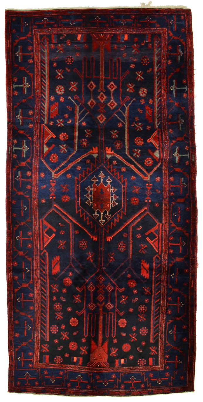 Sehr schönes, älteres Einzelstück aus den kurdischen Werkstätten Westpersiens inspiriert von kaukasischen Mustern. Fettreiche, strapazfähige Wollqualität, gediegene Farbzusammenstellung.
