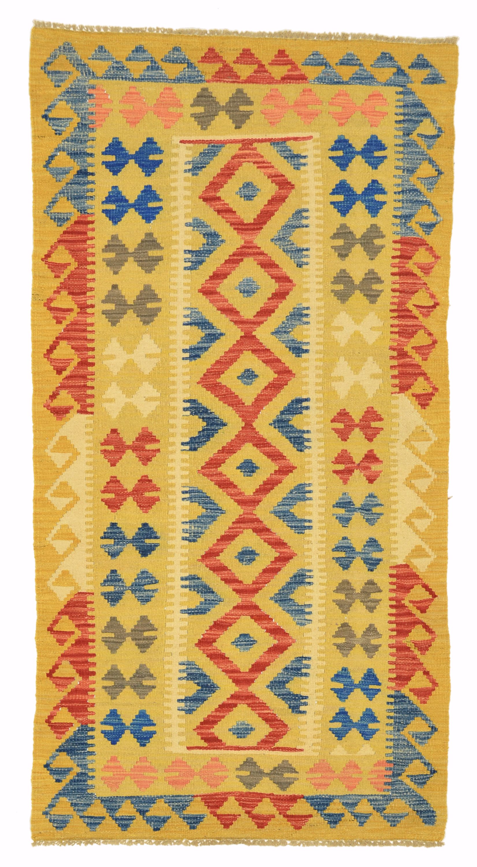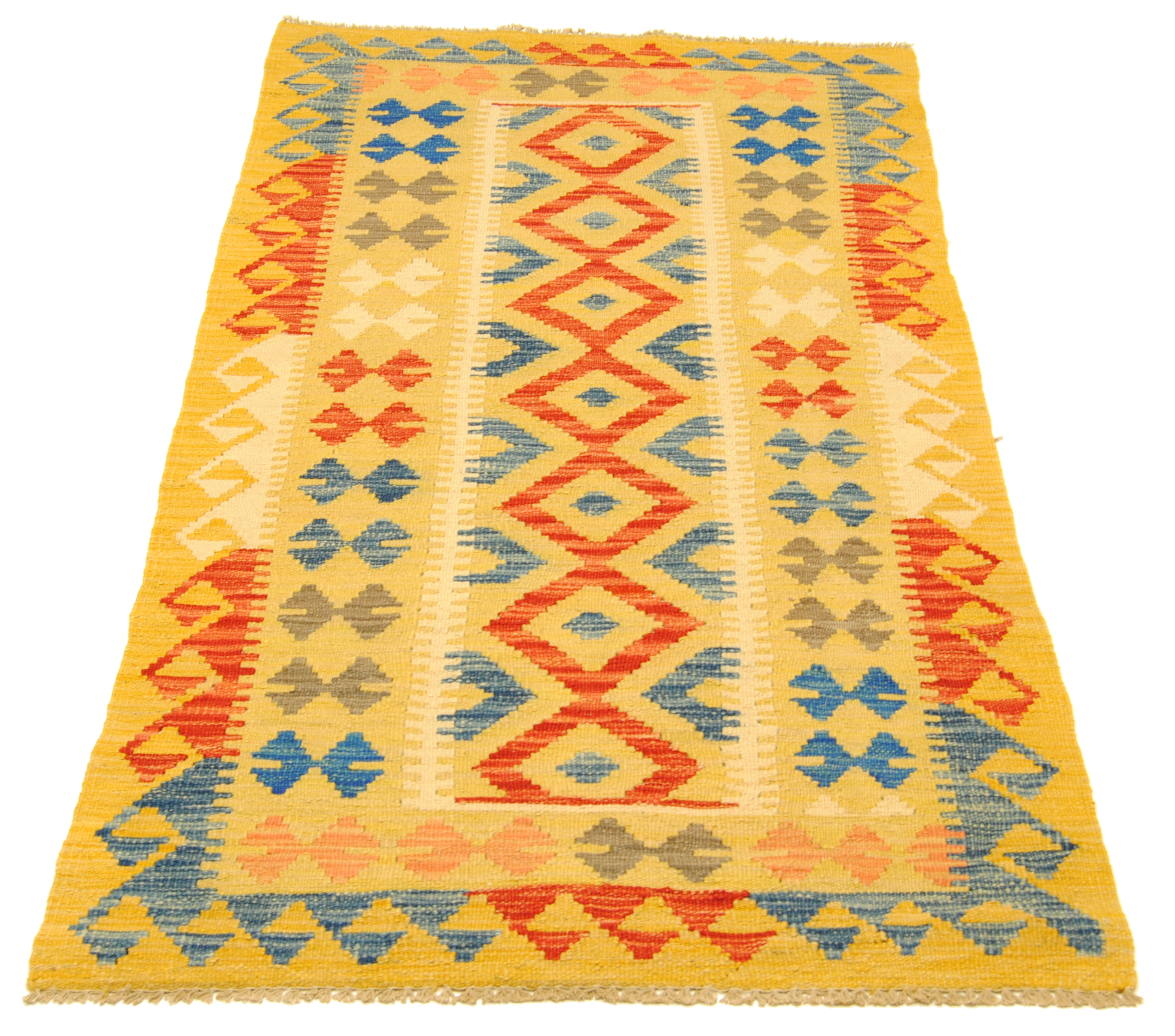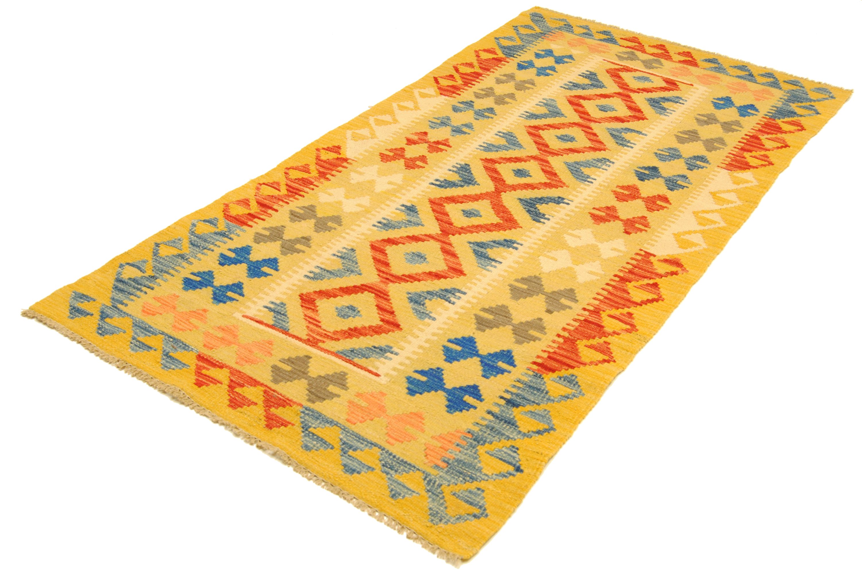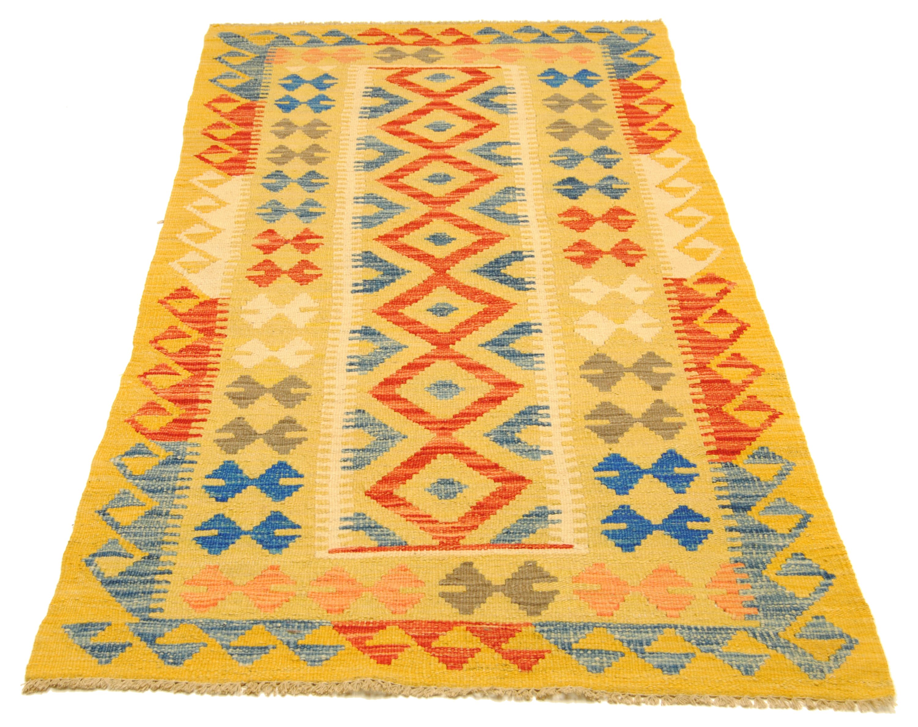 Edle Kelim-kunst aus Afghanistan mit geometrischer Musterung und gedeckten Farben.