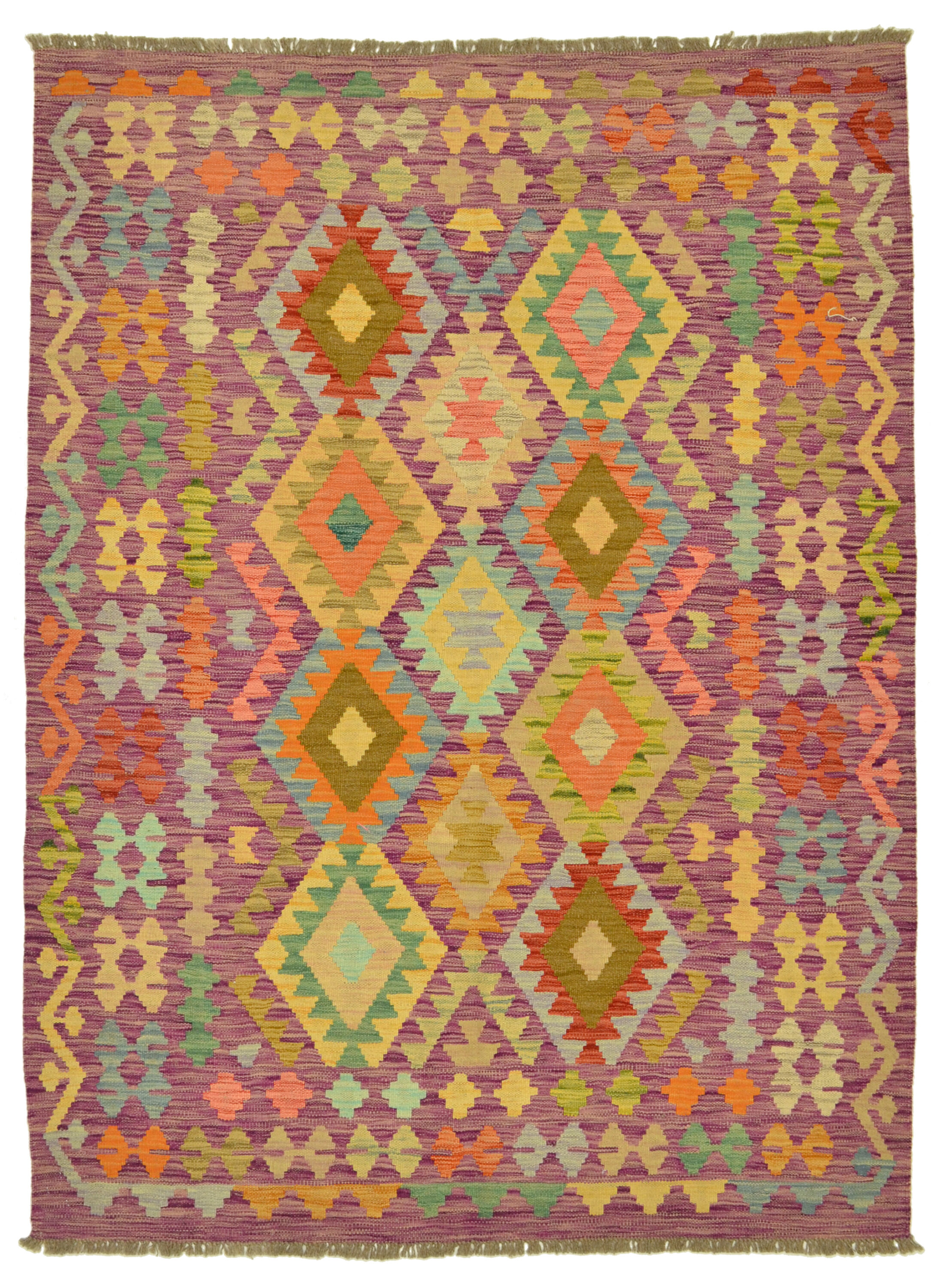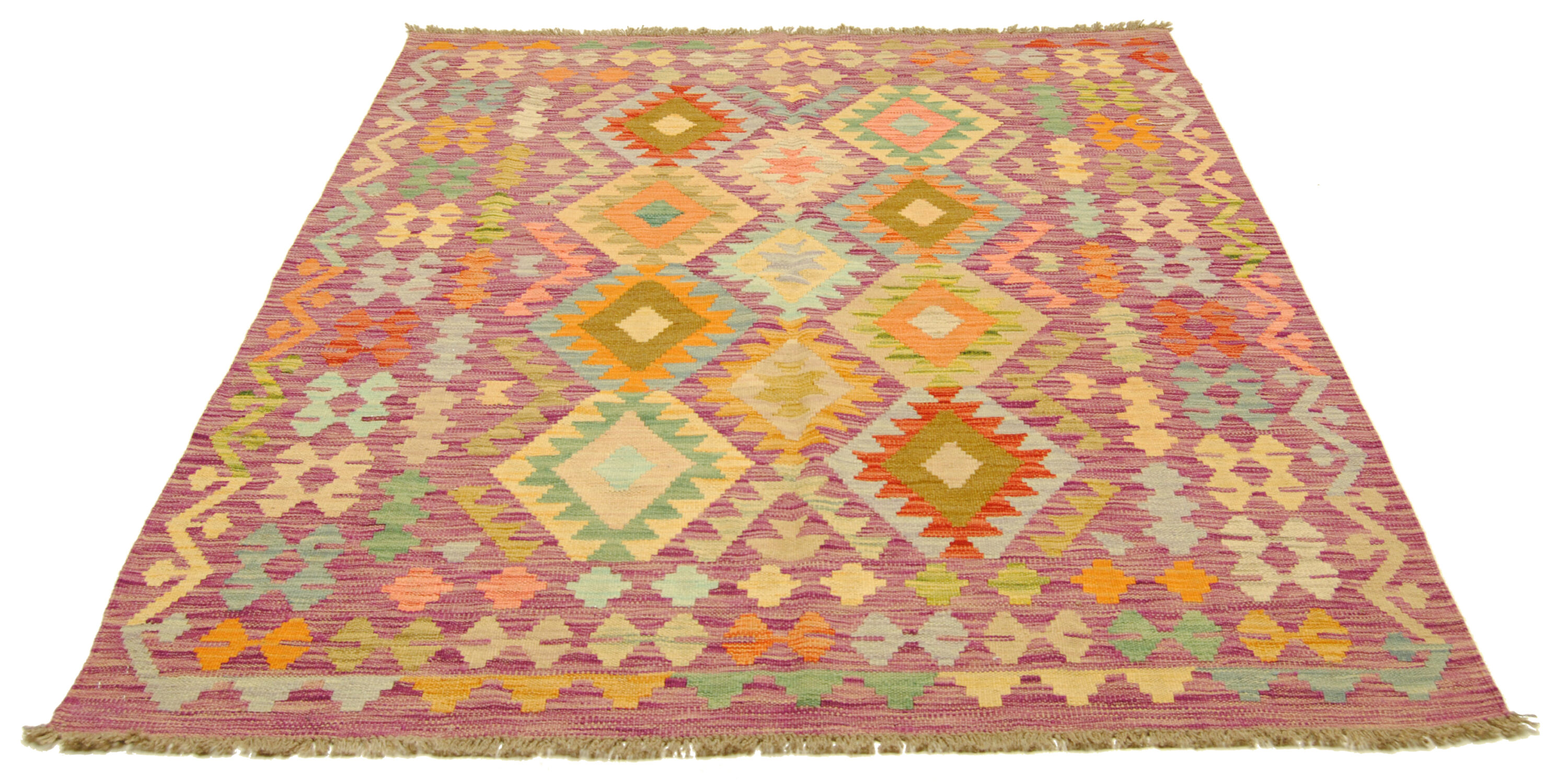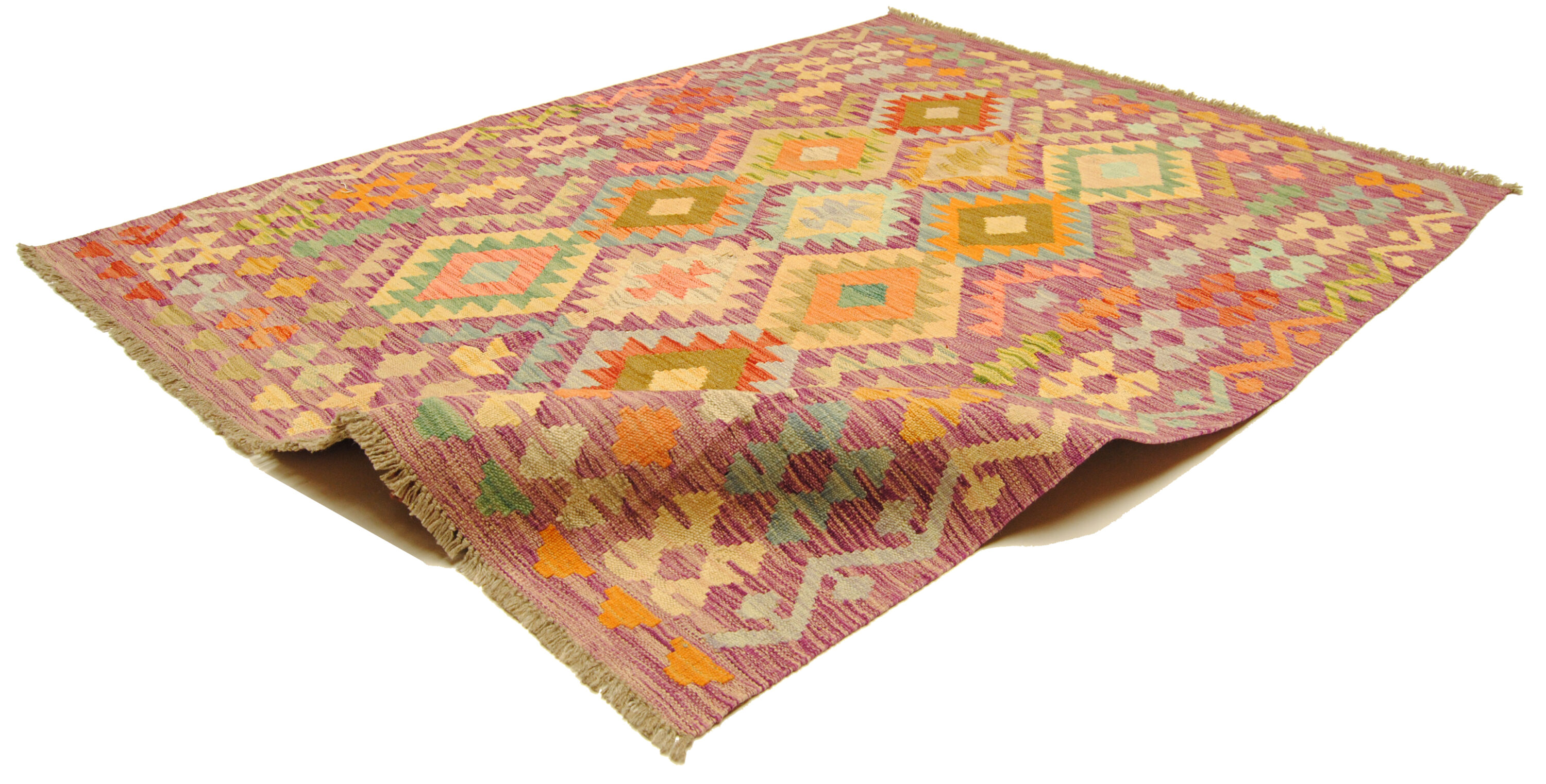 Edle Kelim-kunst aus Afghanistan mit geometrischer Musterung und gedeckten Farben.