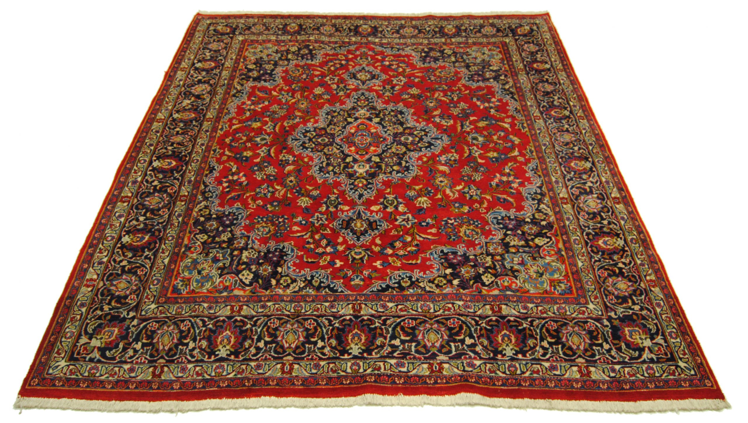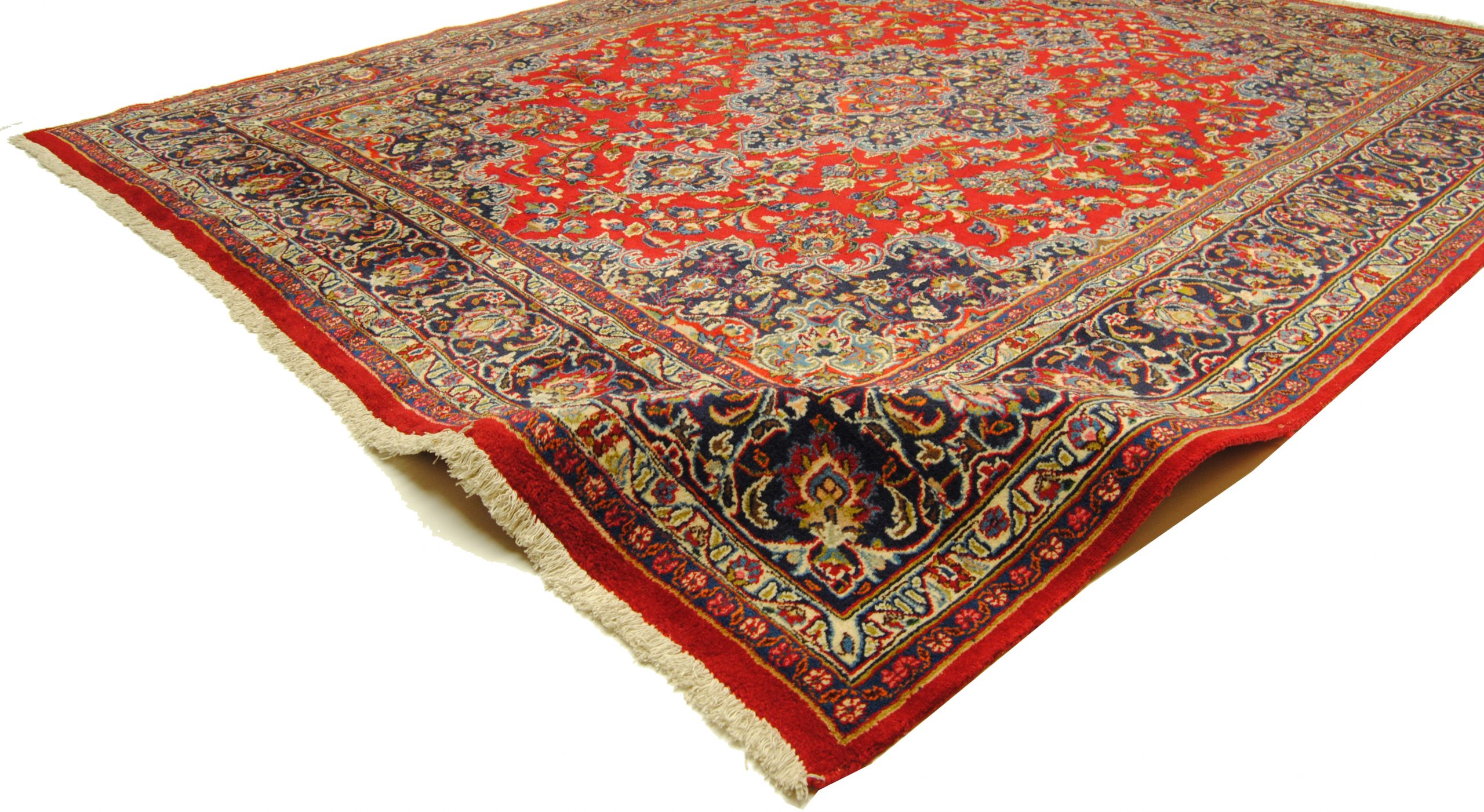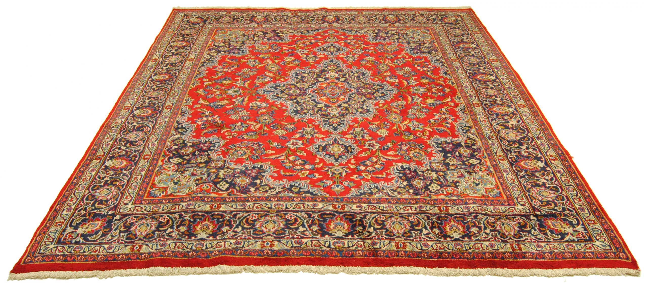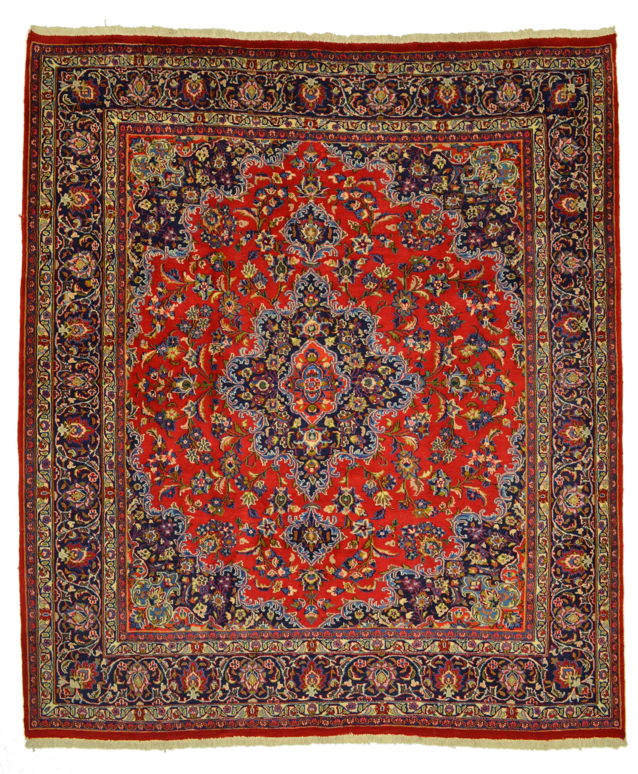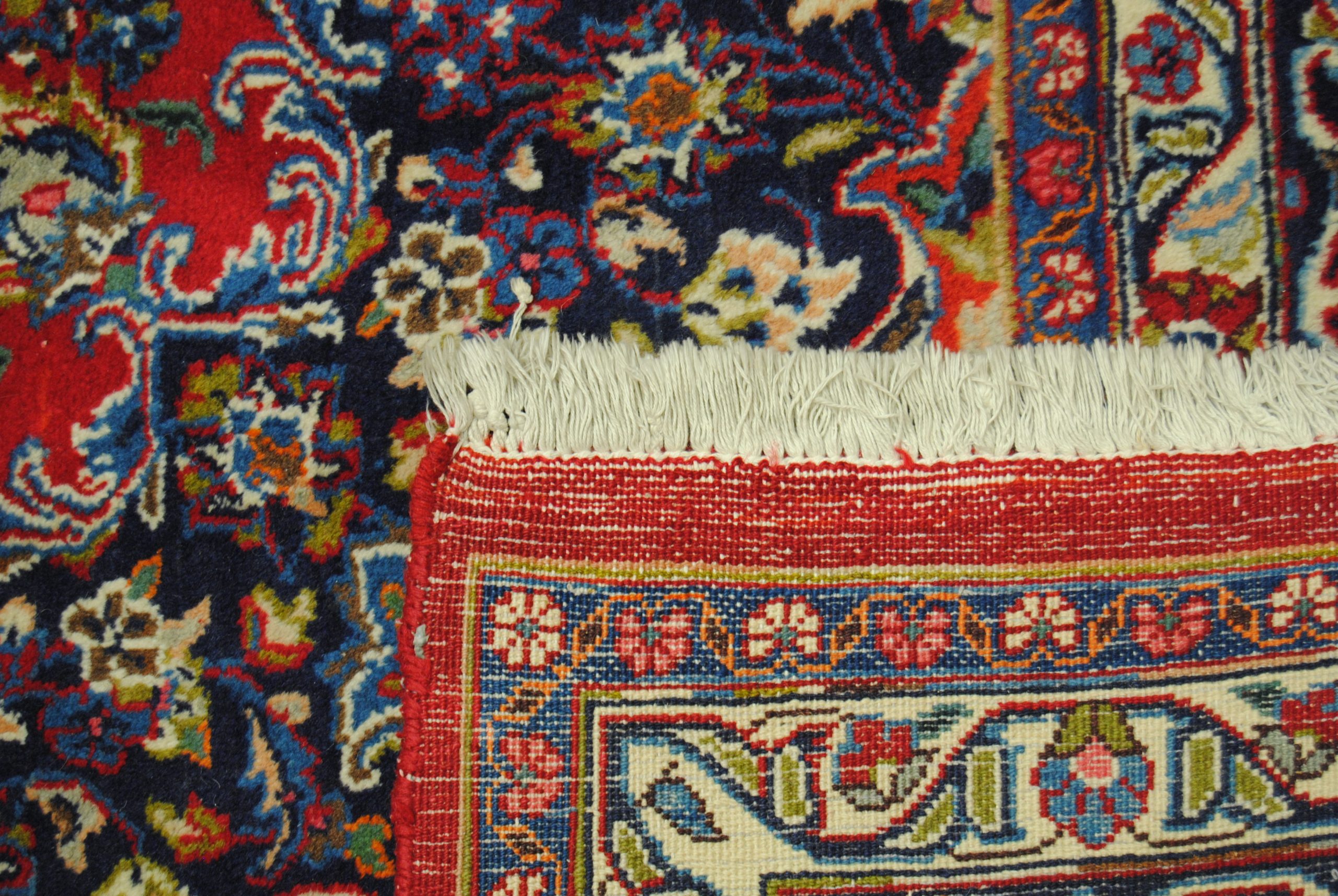 Schöner älterer Mesched-Teppich in klassischer Musterung und Farbzusammenstellung. Sonderformat. Flor teils etwas dünner, sonst in sehr gutem Zustand.