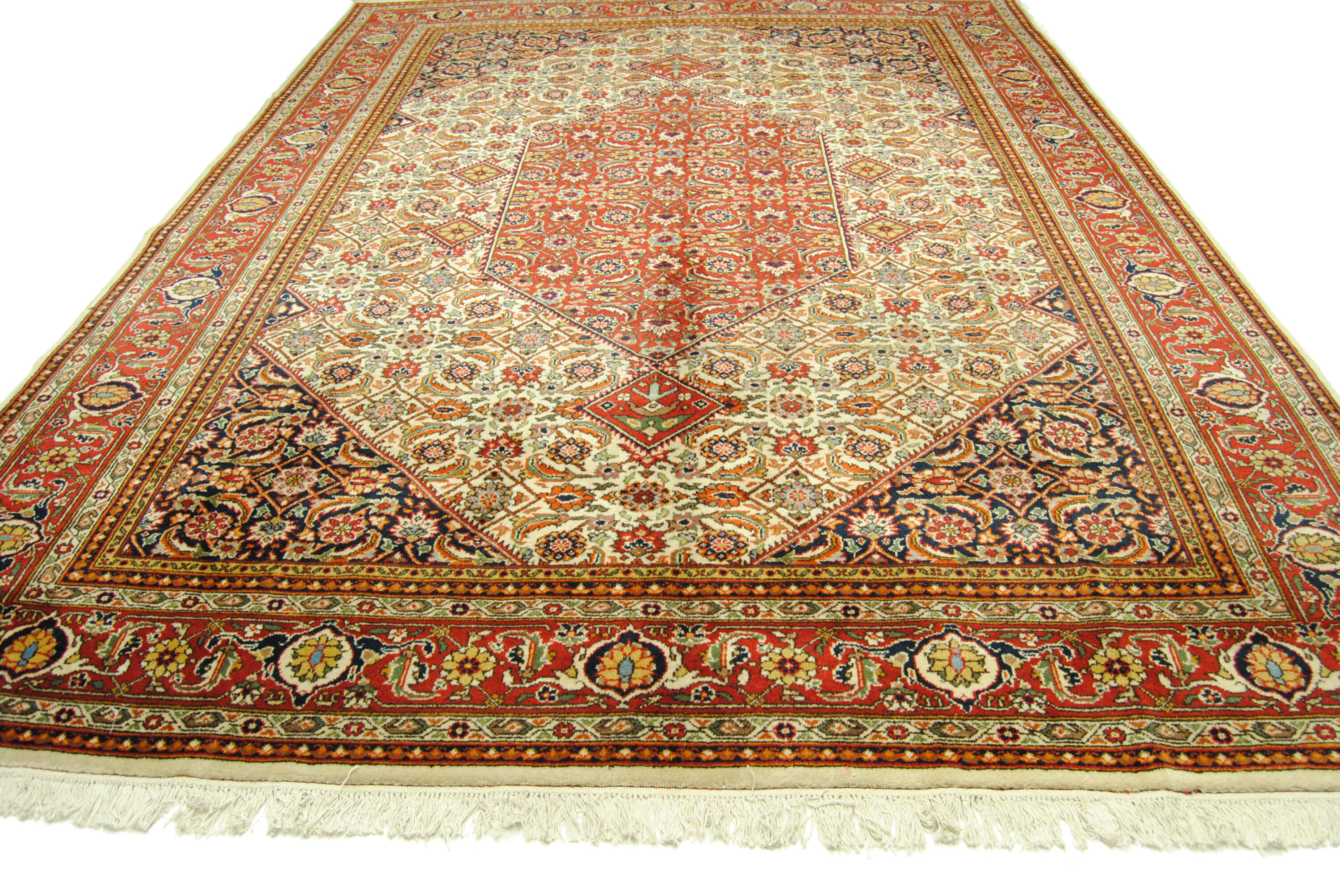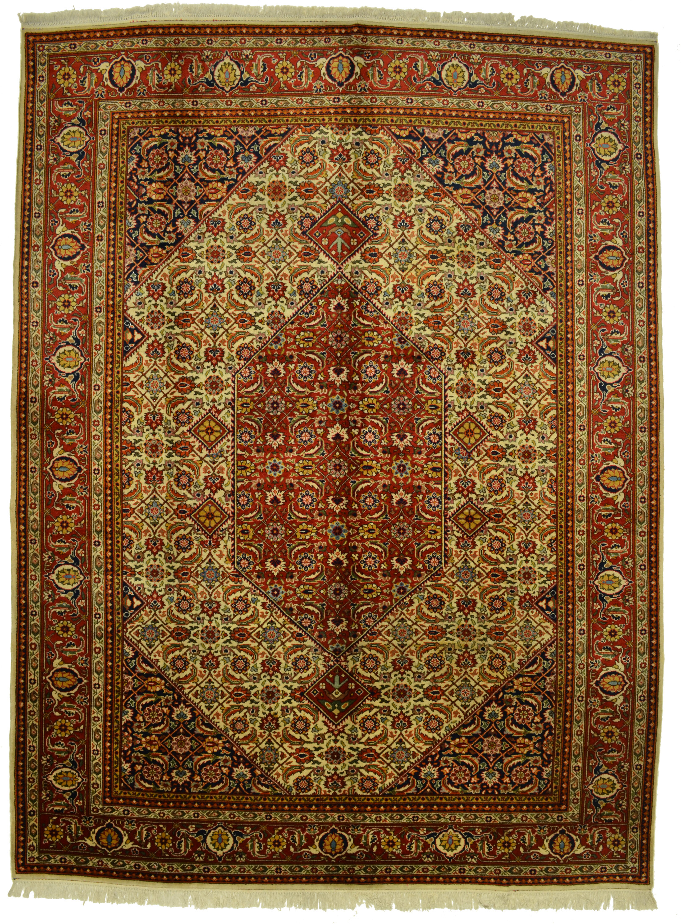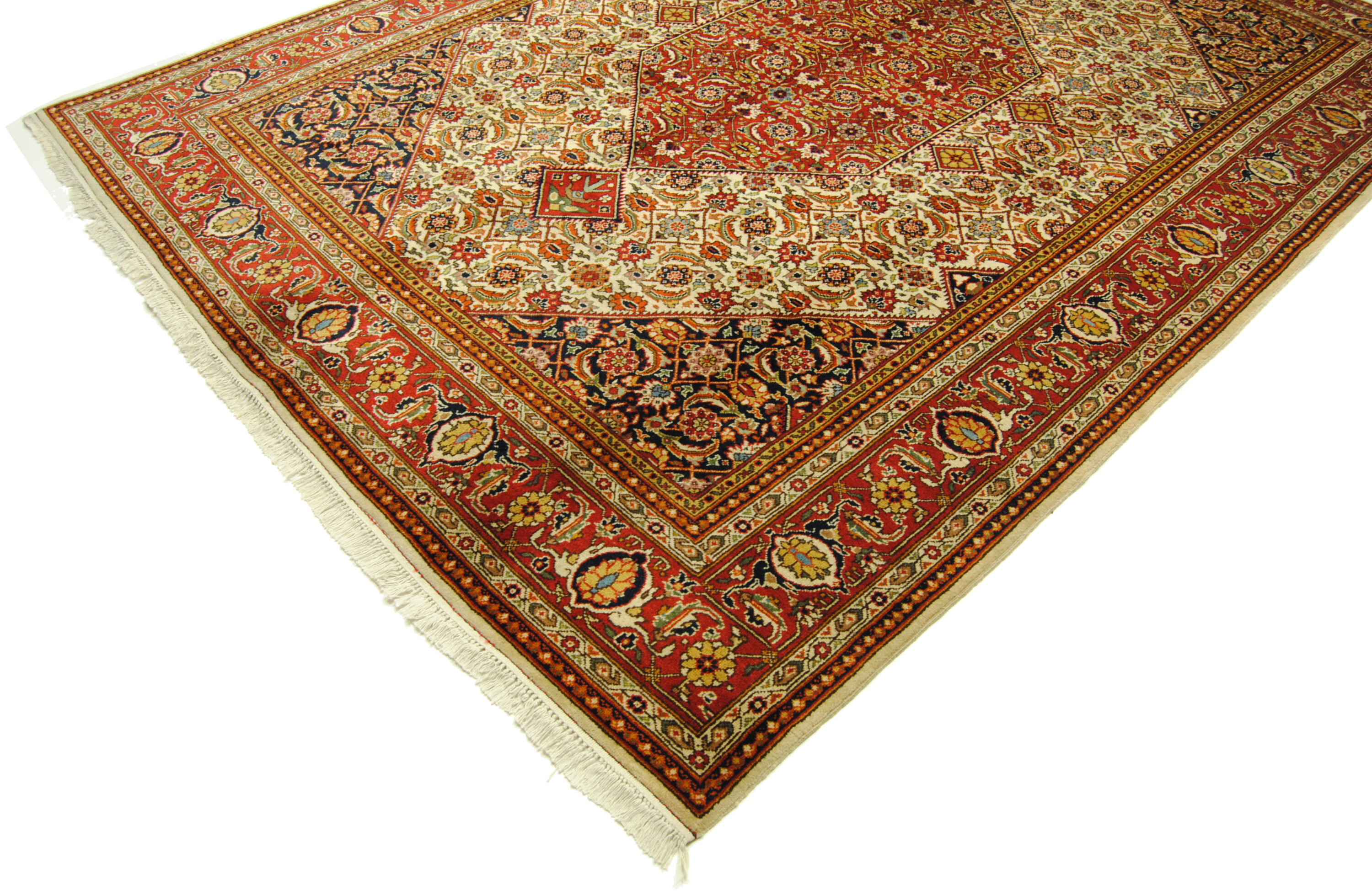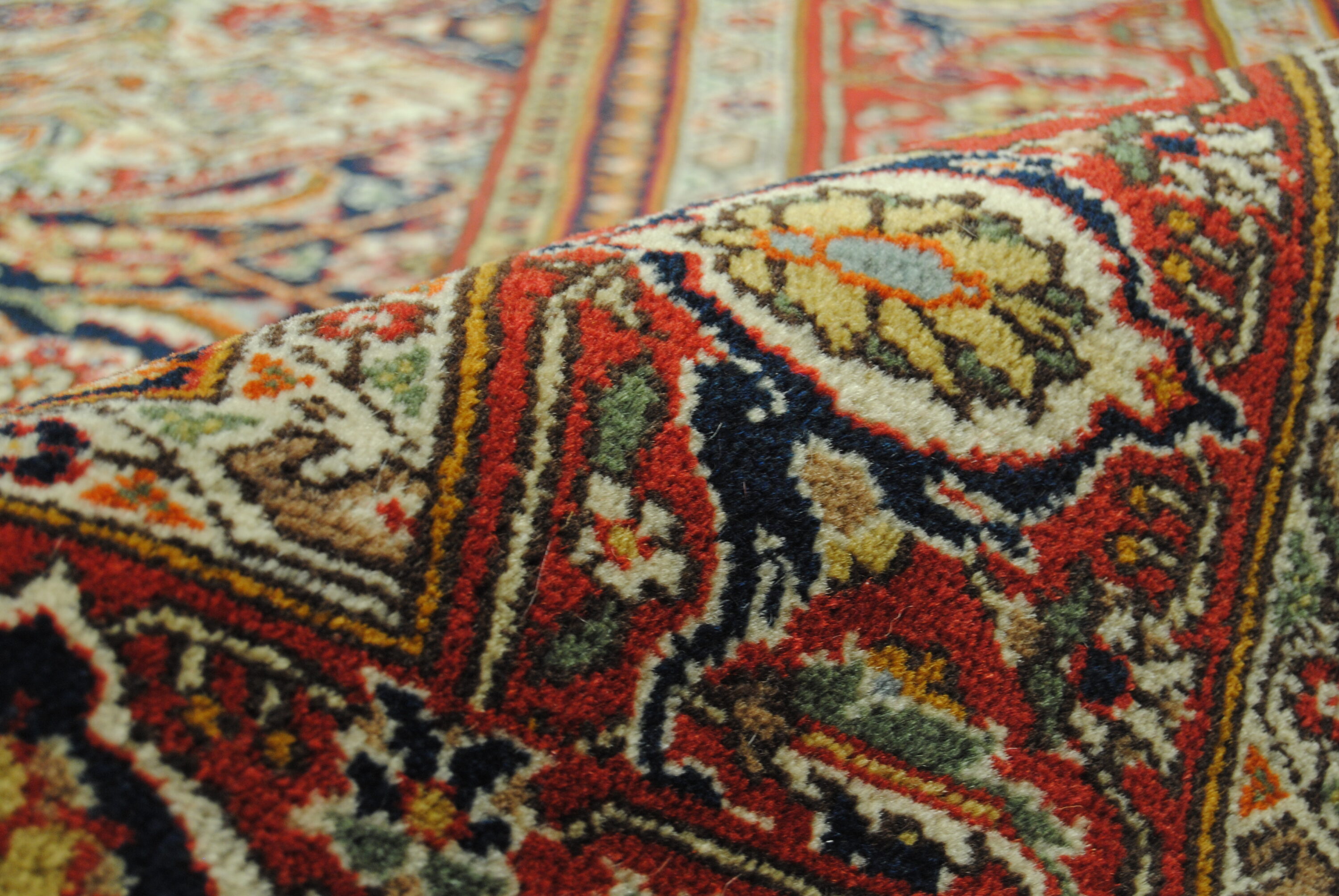 Ein seltener Teppich aus den 80er Jahren des 20. Jahrhunderts geknüpft mit hoher Akribie und Detailverliebtheit in dem damals noch kommunistisch geführten Rumänien. Dass der Faktor Zeit in dieser Epoche eine noch nicht so große Rolle spielte wie heute, offenbart sich bei den Siebenbürgerteppichen durch ihre besonders exakte Knüpfung mit fettreicher, strapazierfähiger Wolle gepaart mit ihrer aufwändigen, sehr harmonischen Farbkomposition.