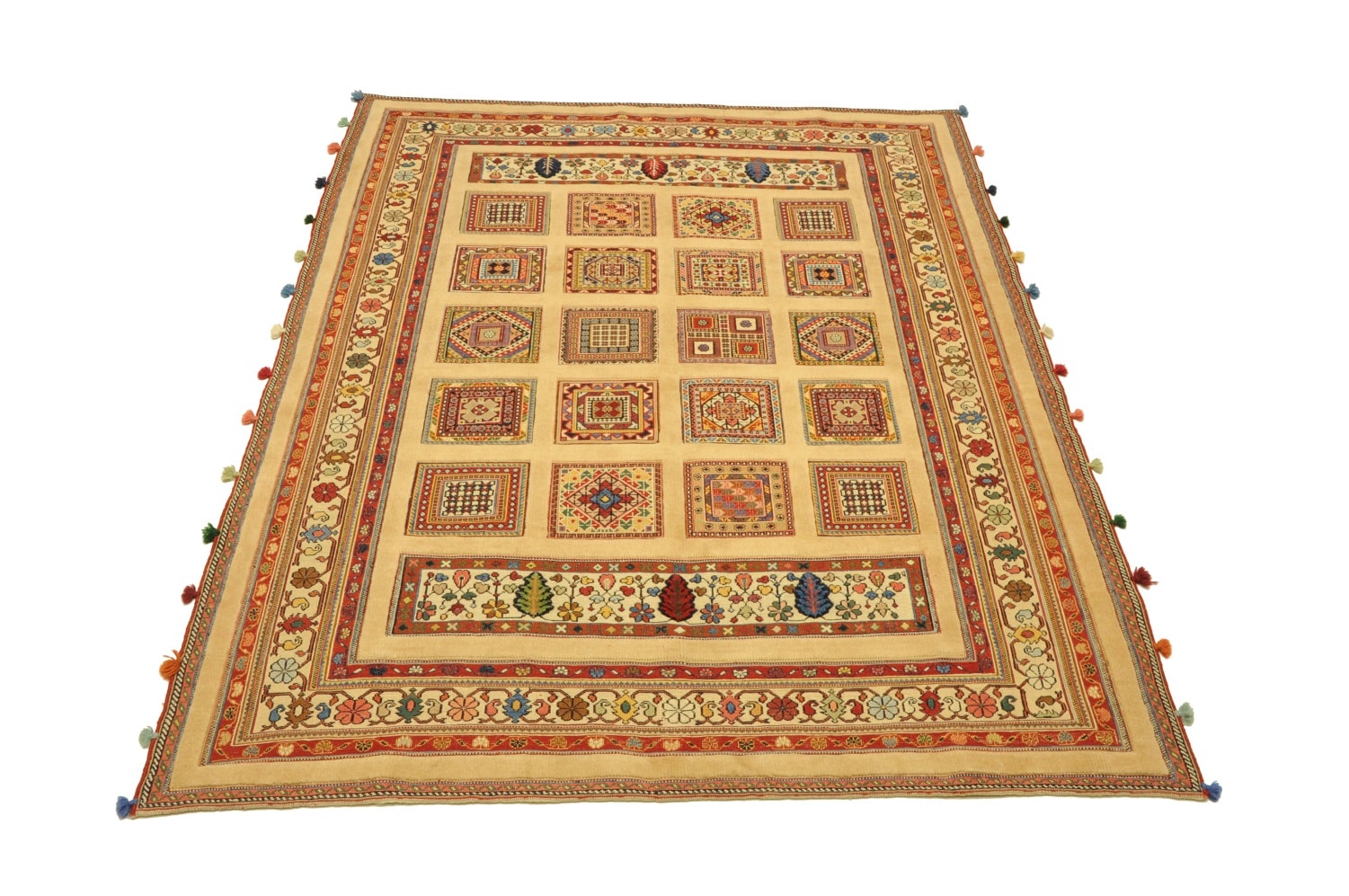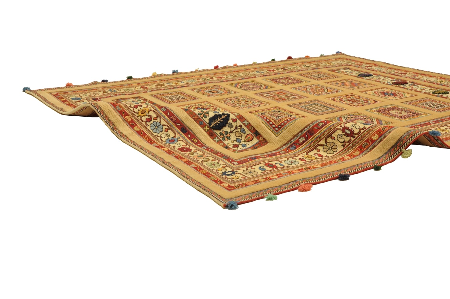 Nimbaft bedeuted auf persisch „halb-geknüpft“ – die gleichnamigen Teppiche sind teils gewebt und teils geknüpft. Diese hochklassigen Zeugnisse authentischer Handwerkskunst stammen aus den südpersischen Dorfwerkstätten rund um die Provinzhauptstadt Schiraz. Sie werden mit besten Farb- und Wollmaterialen handgeknüpft bzw gewebt und erzählen in Symbolen von den Lebensgeschichten Ihrer Urheber und deren Vorfahren.