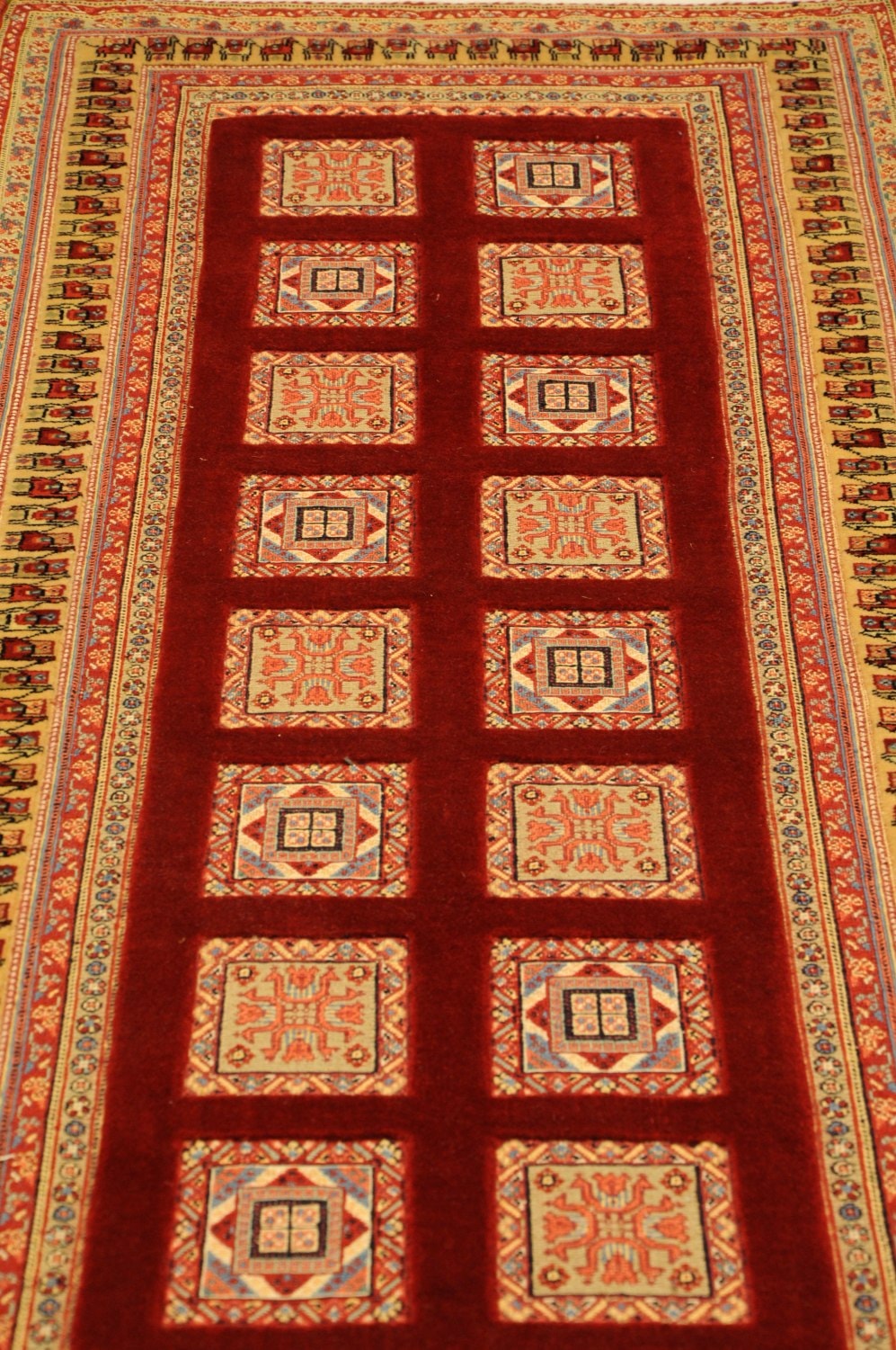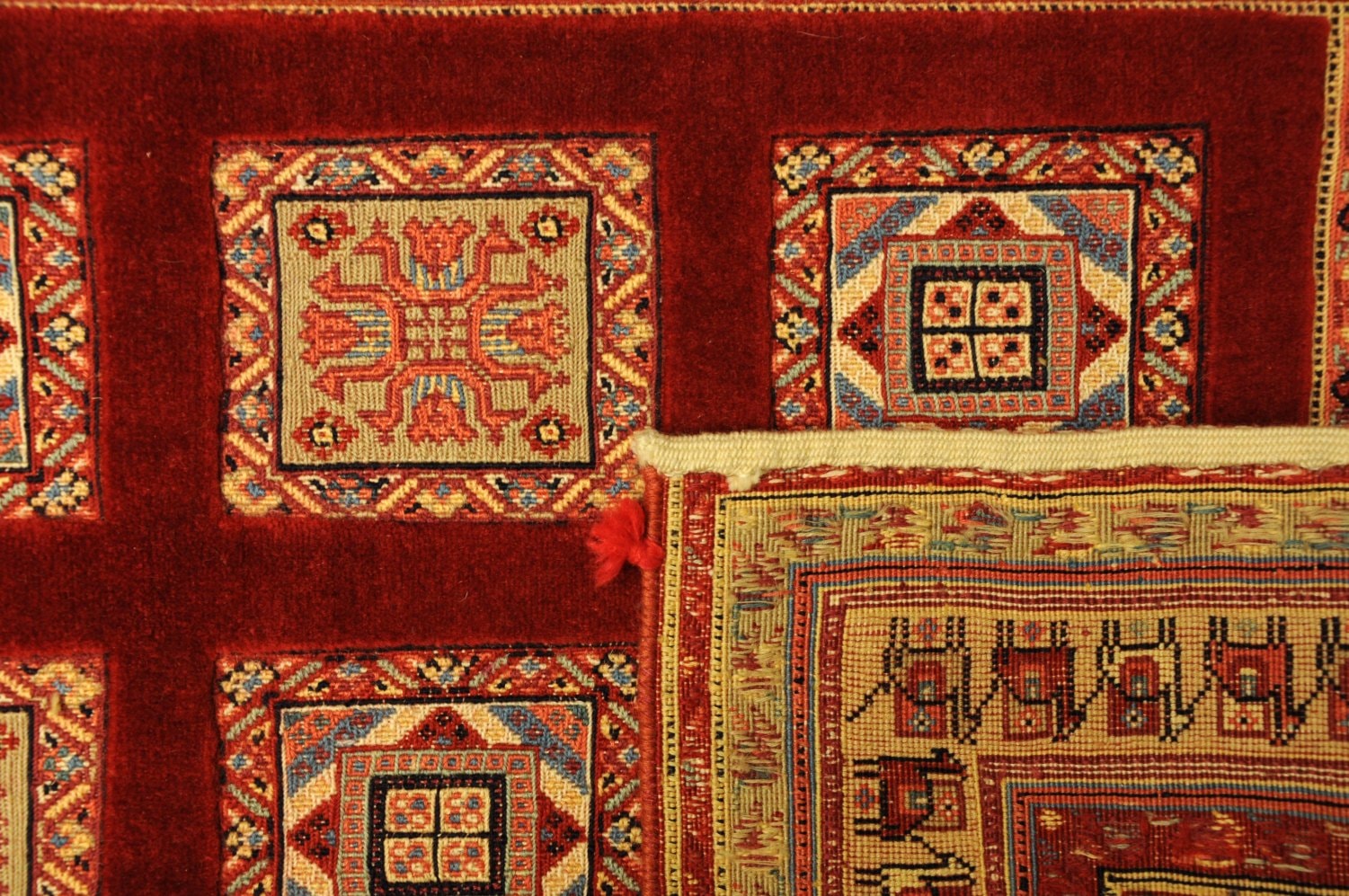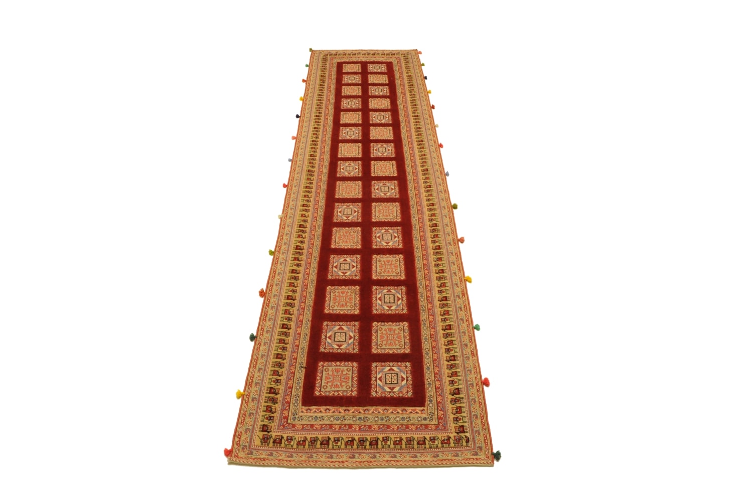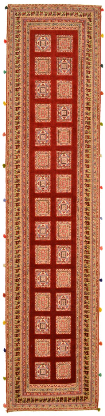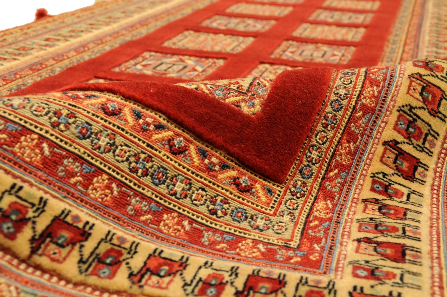 Nimbaft bedeuted auf persische „halbgeknüpft“, sie sind teils gewebt, teils geknüpft. Diese hochklassigen Zeugnisse authentischer Handwerkskunst stammen von den Dorfwerkstätten aus dem südpersischen Raum um Schiraz. Sie werden mit besten Farb- und Wollmaterialen geknüpft und erzählen in Symbolen die Lebensgeschichten Ihrer Urheber und deren Vorfahren.