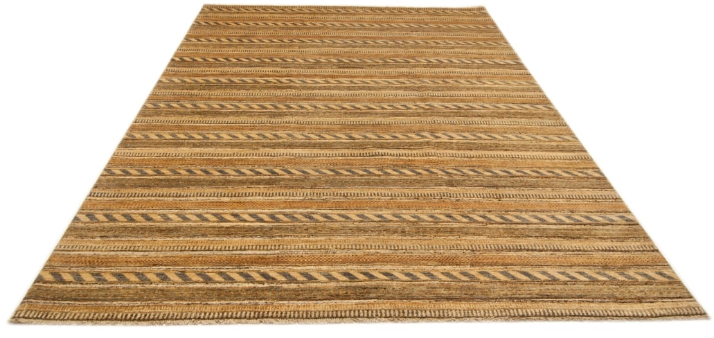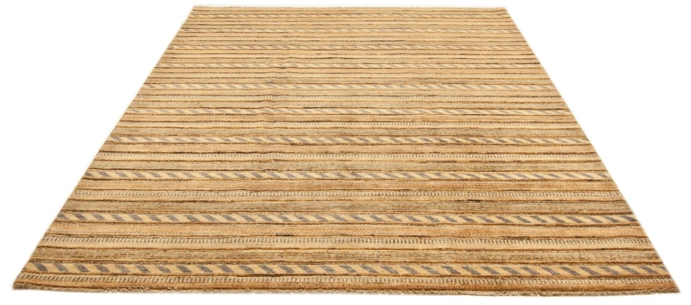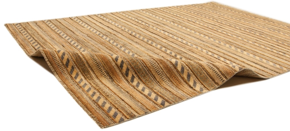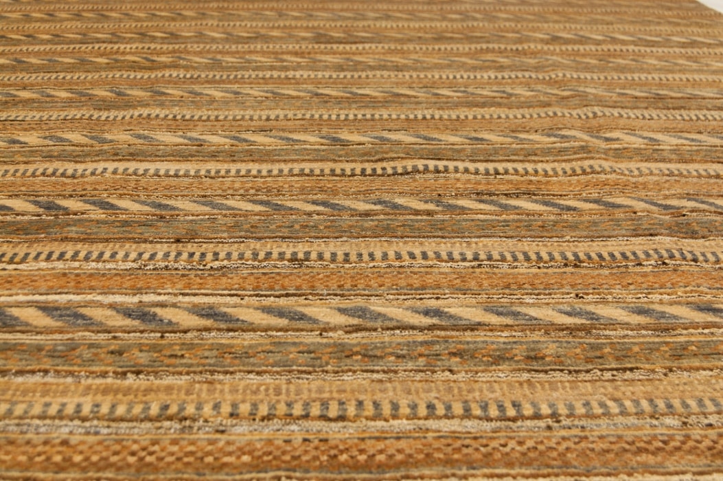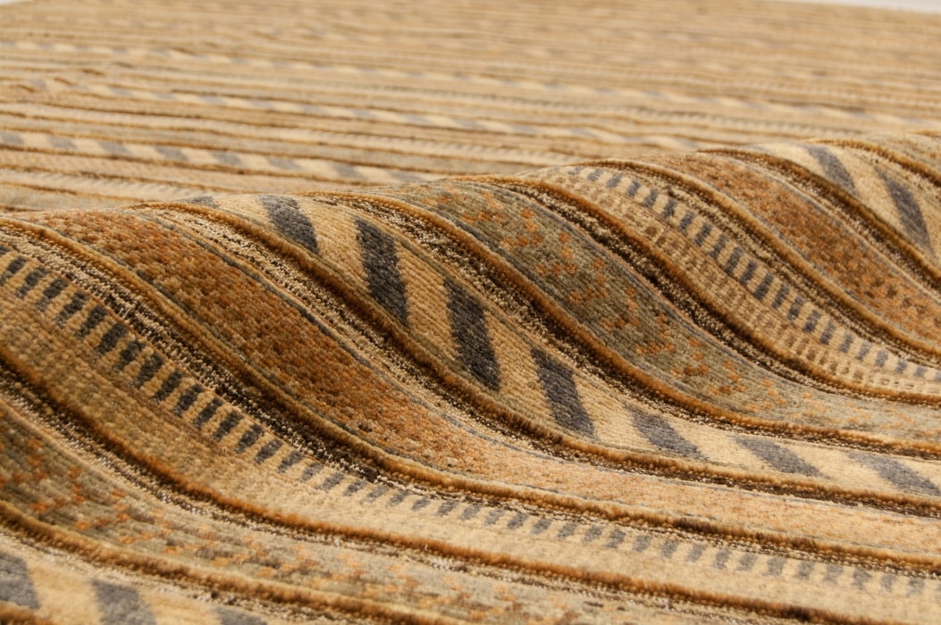 Die Hazara-Nimbaft-Honar-Kollektion besticht vorrangig durch ihr modernes, farbenfrohes Streifen-Design als auch durch die interessante Low-High Knüpftechnik: Nimbaft bedeutet auf persische halb geknüpft und halb gewebt.