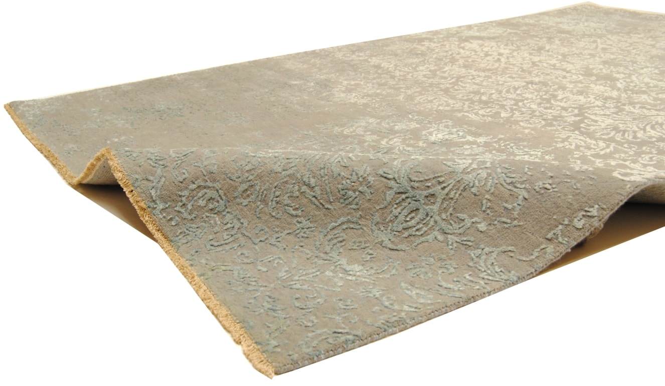 Samina HONAR stammen aus einer Designer-Werkstatt in Mittelindien und verstehen sich als Hommage an die Hochblüte der floralen Teppichkunst. Ein Edelmaterialmix aus Bambuskunstseide und Schafwolle verleiht den Teppichen ihre einzigartige Optik.