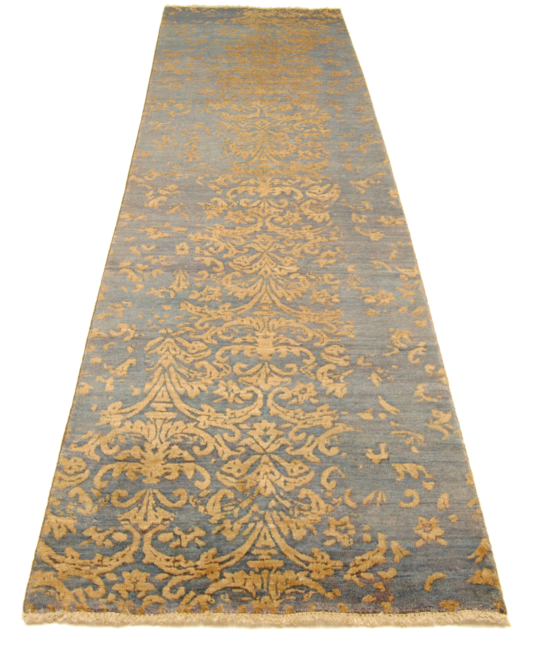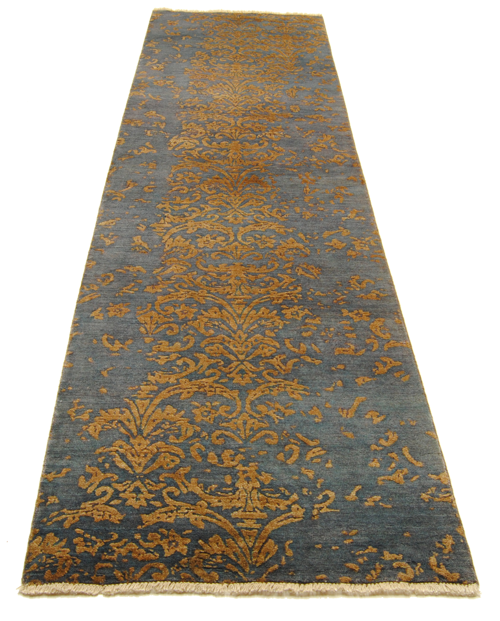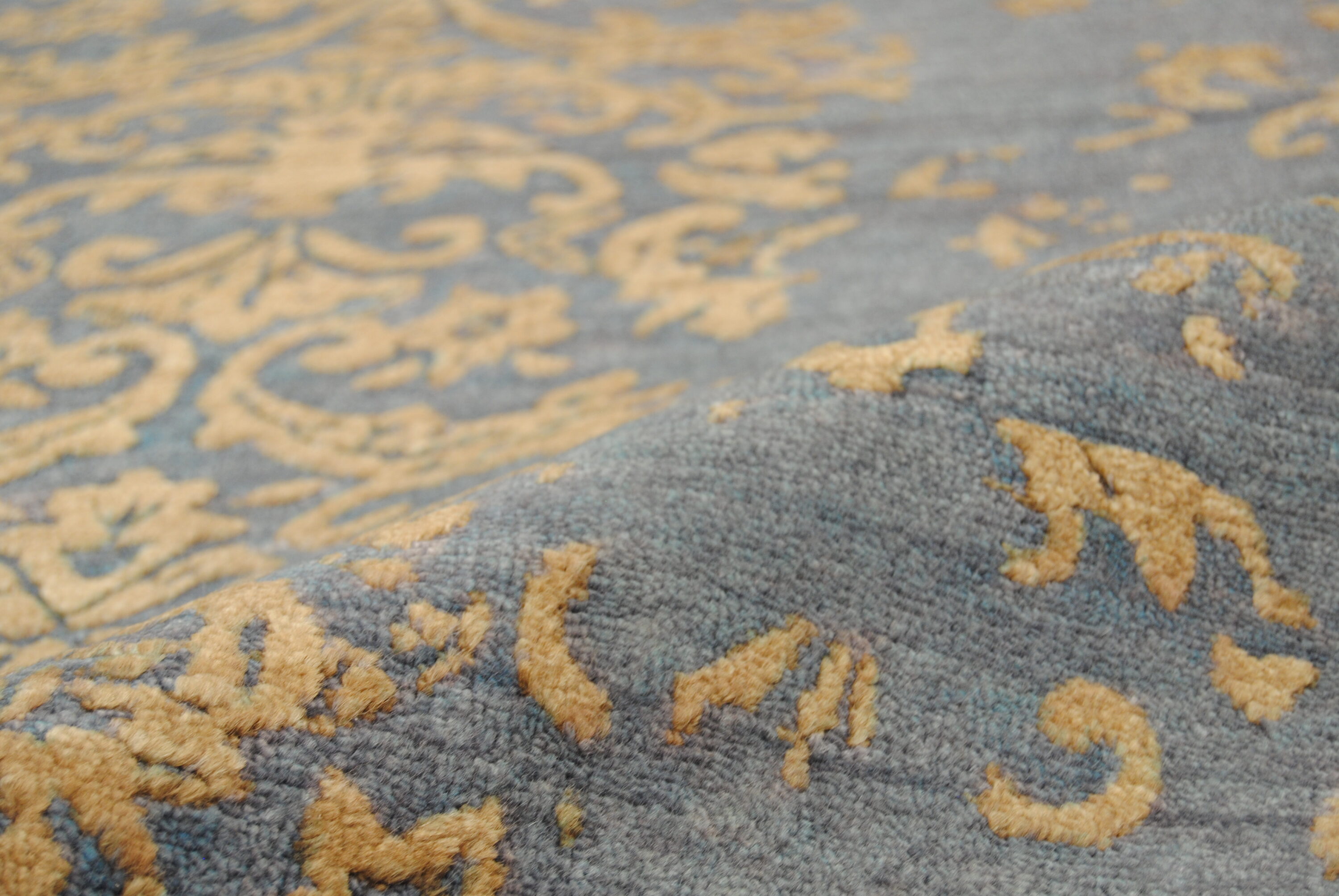 Samina HONAR stammen aus einer Designer-Werkstatt in Mittelindien und verstehen sich als Hommage an die Hochblüte der floralen Teppichkunst. Ein Edelmaterialmix aus Bambuskunstseide und Schafwolle verleiht den Teppichen ihre einzigartige Optik.