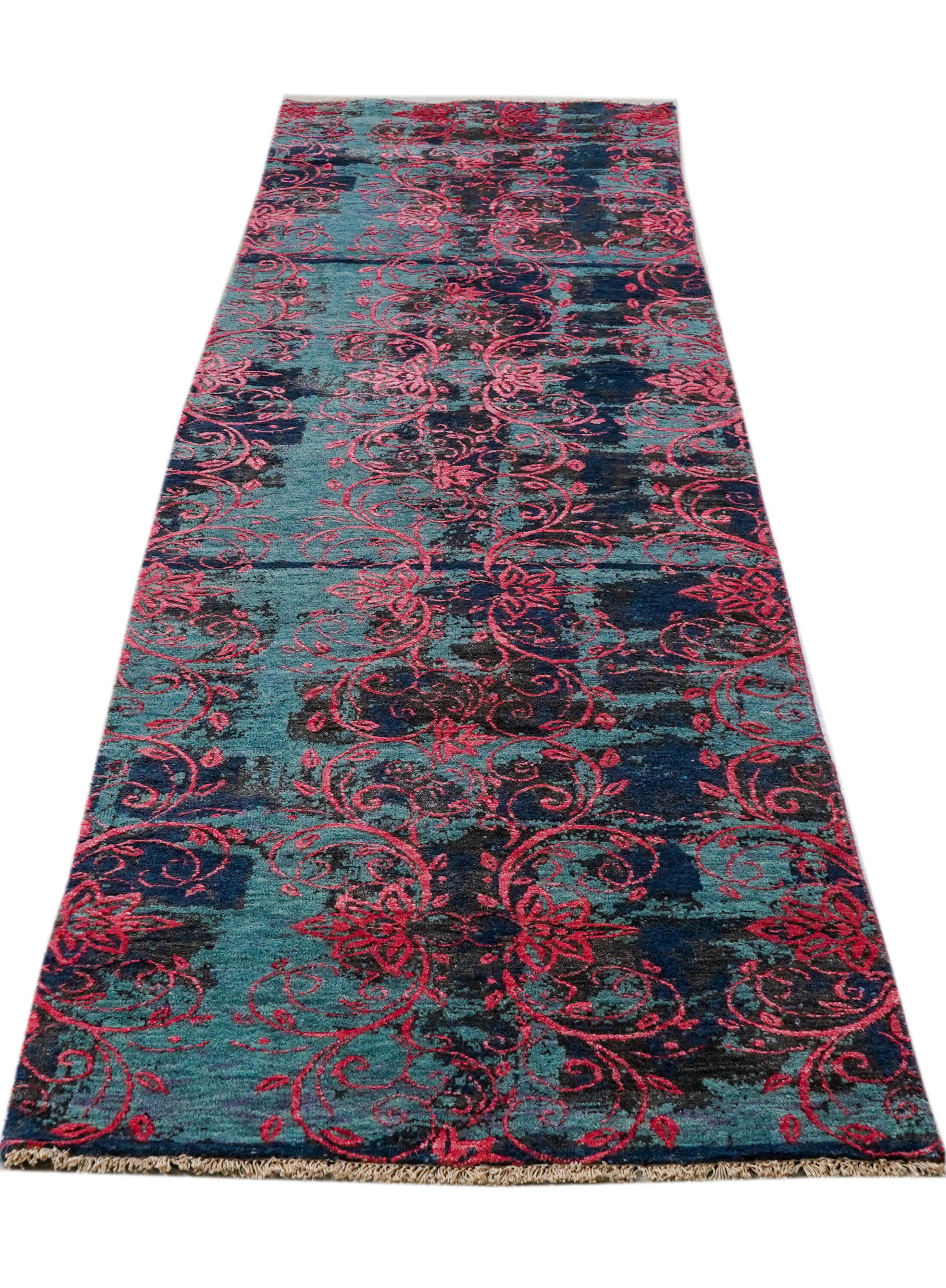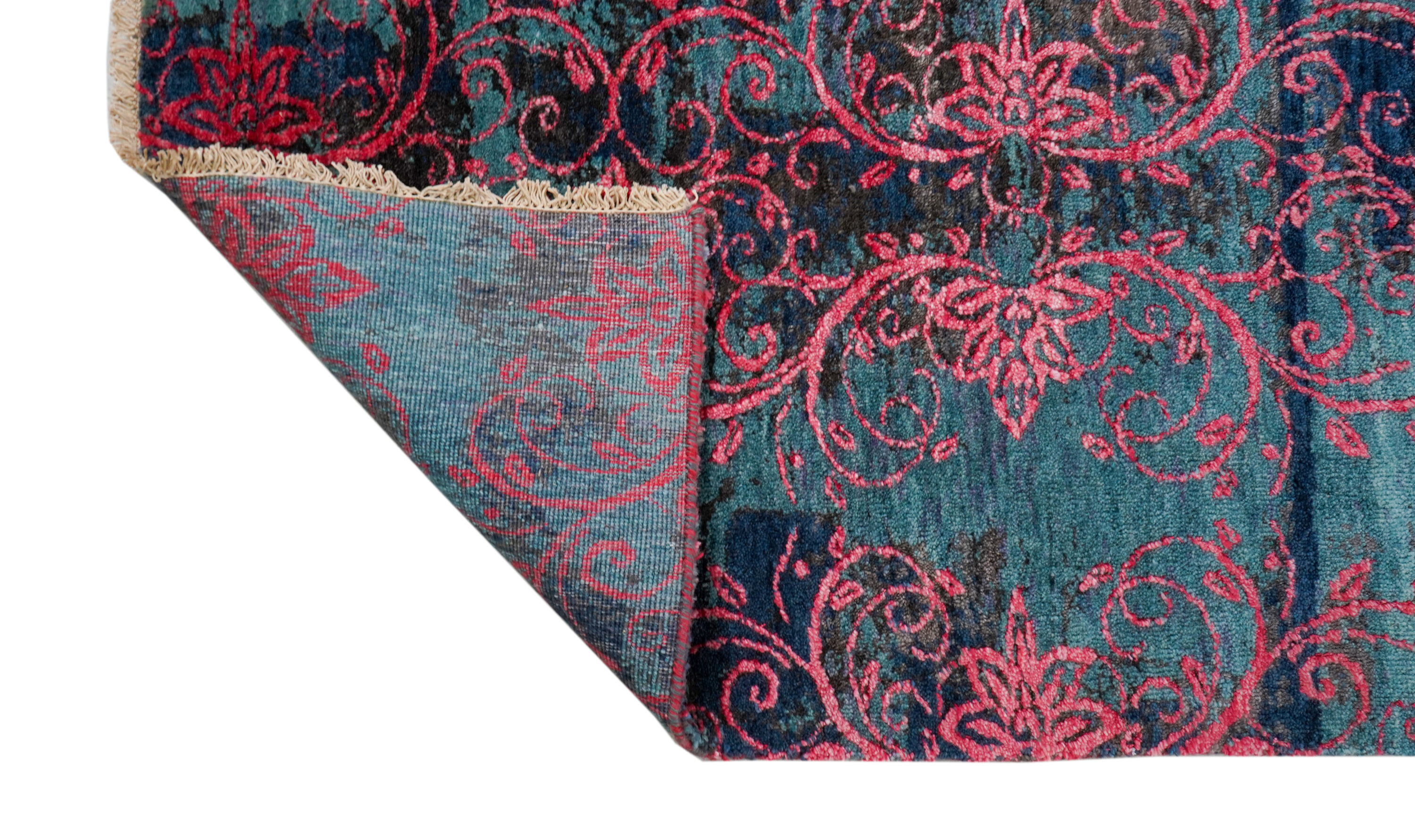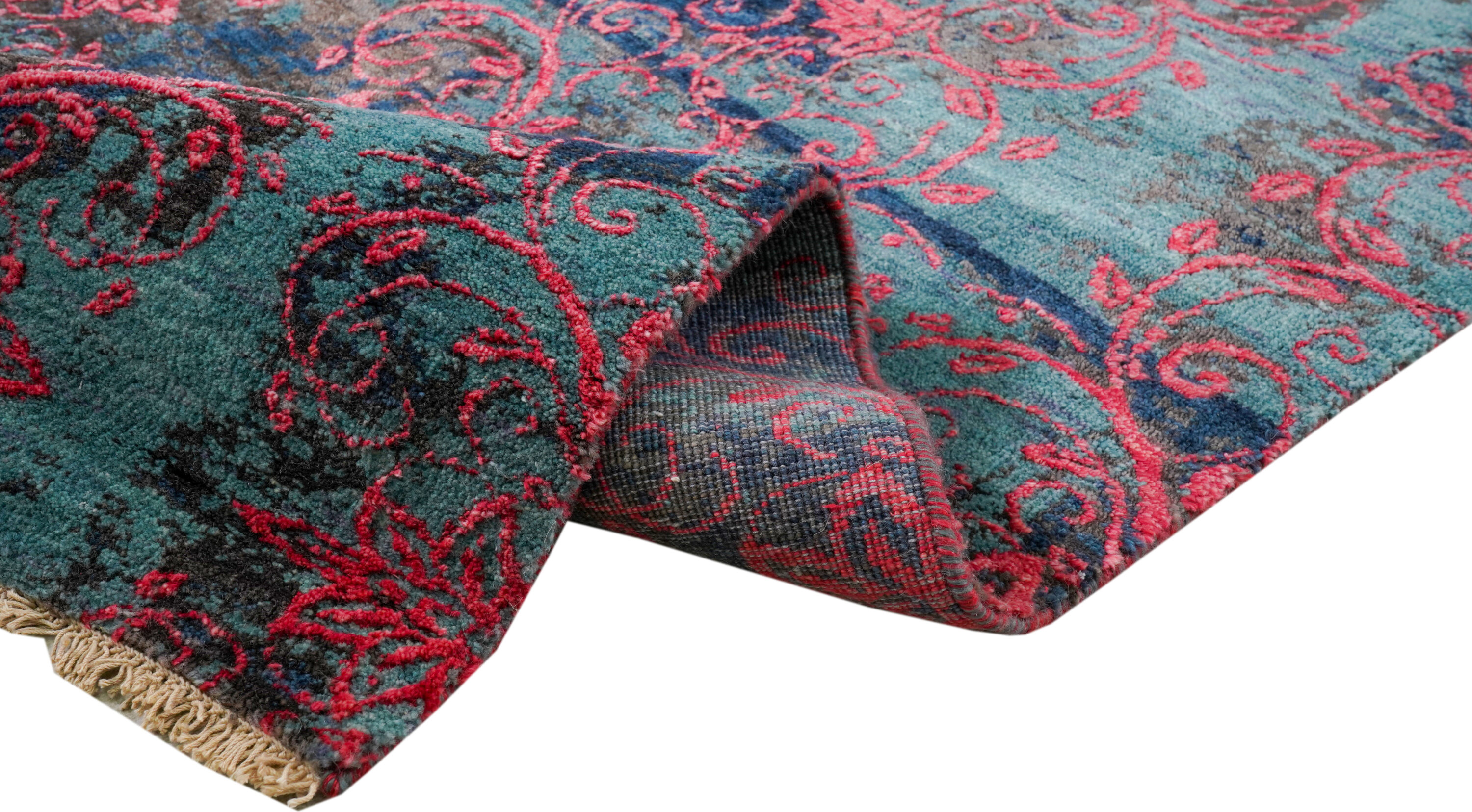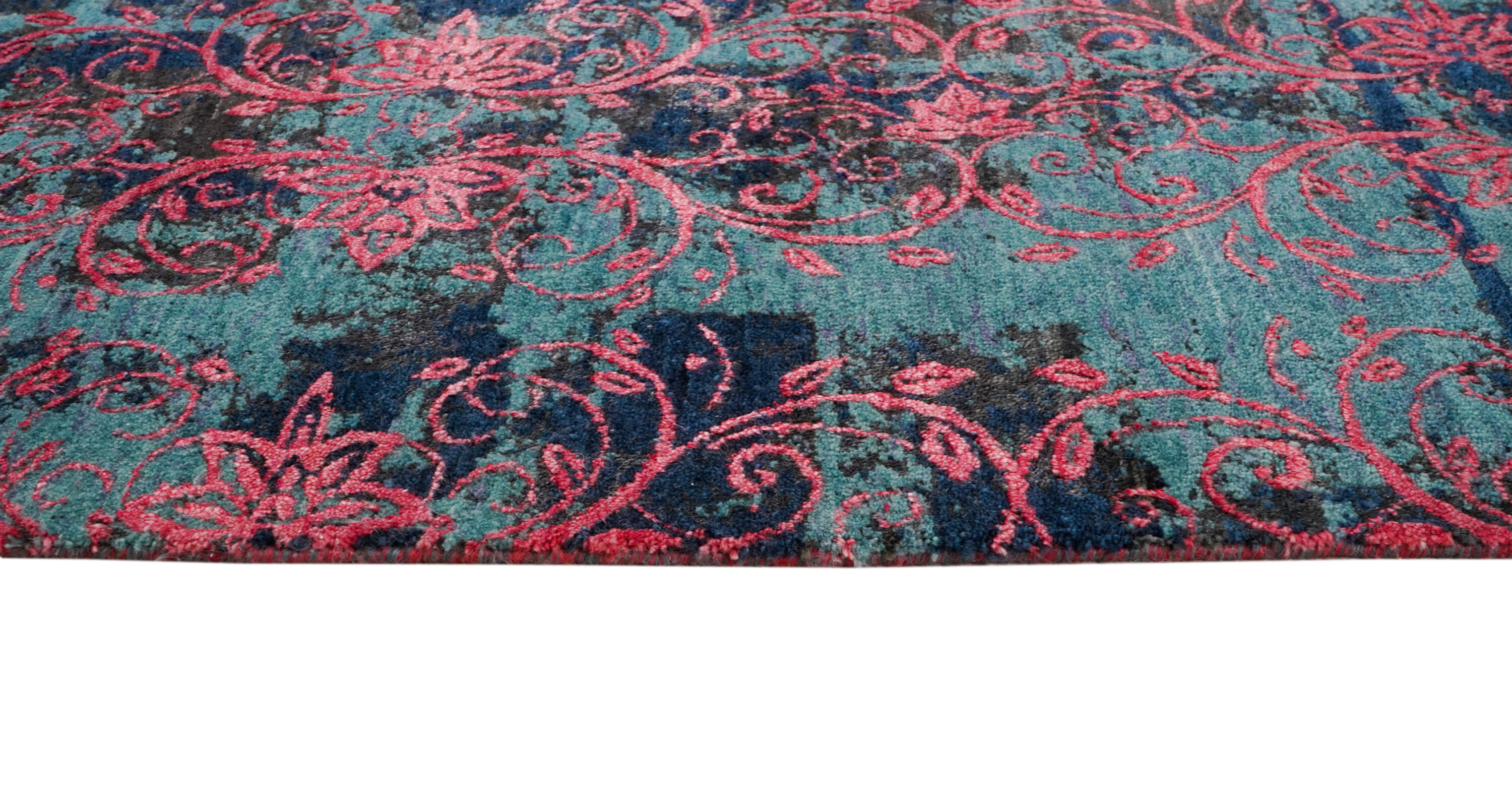 Samina HONAR stammen aus einer Designer-Werkstatt in Mittelindien und verstehen sich als Hommage an die Hochblüte der floralen Teppichkunst. Ein Edelmaterialmix aus Bambuskunstseide und Schafwolle verleiht den Teppichen ihre einzigartige Optik.