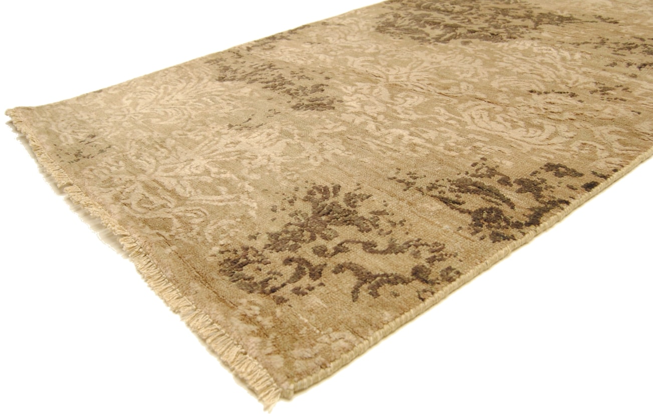 Samina HONAR stammen aus einer Designer-Werkstatt in Mittelindien und verstehen sich als Hommage an die Hochblüte der floralen Teppichkunst. Ein Edelmaterialmix aus Bambuskunstseide und Schafwolle verleiht den Teppichen ihre einzigartige Optik.