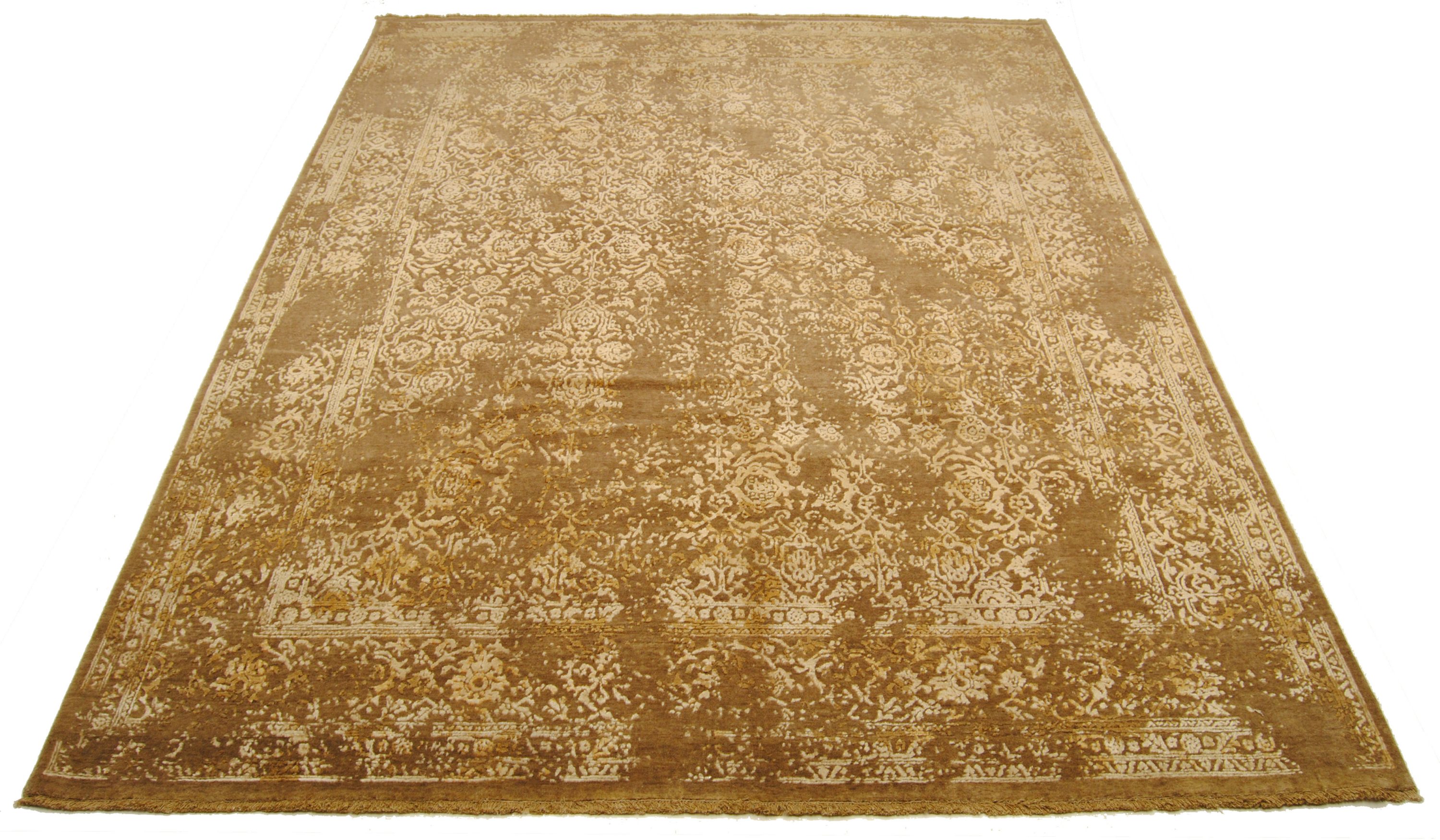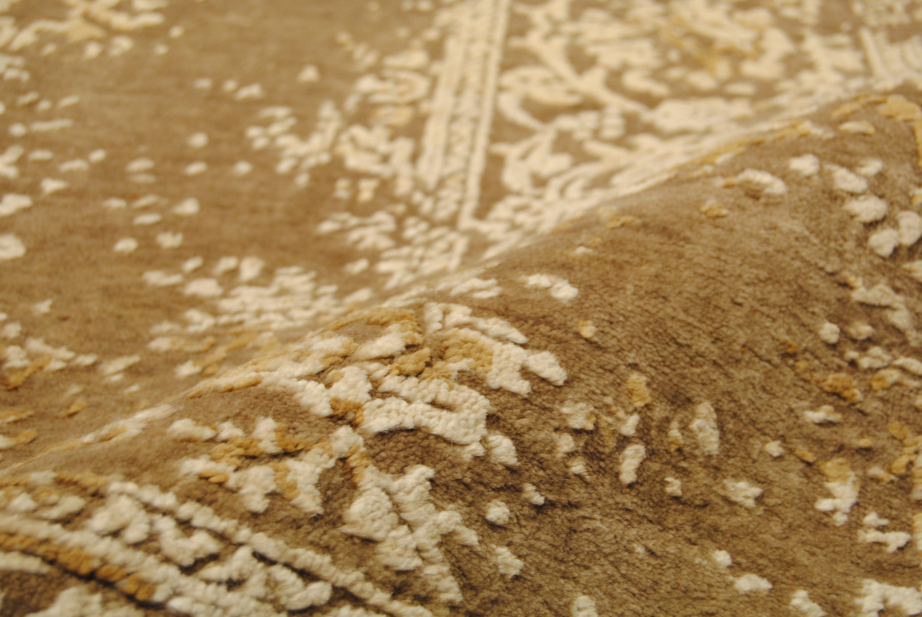 Samina HONAR stammen aus einer Designer-Werkstatt in Mittelindien und verstehen sich als Hommage an die Hochblüte der floralen Teppichkunst. Ein Edelmaterialmix aus Bambuskunstseide und Schafwolle verleiht den Teppichen ihre einzigartige Optik.