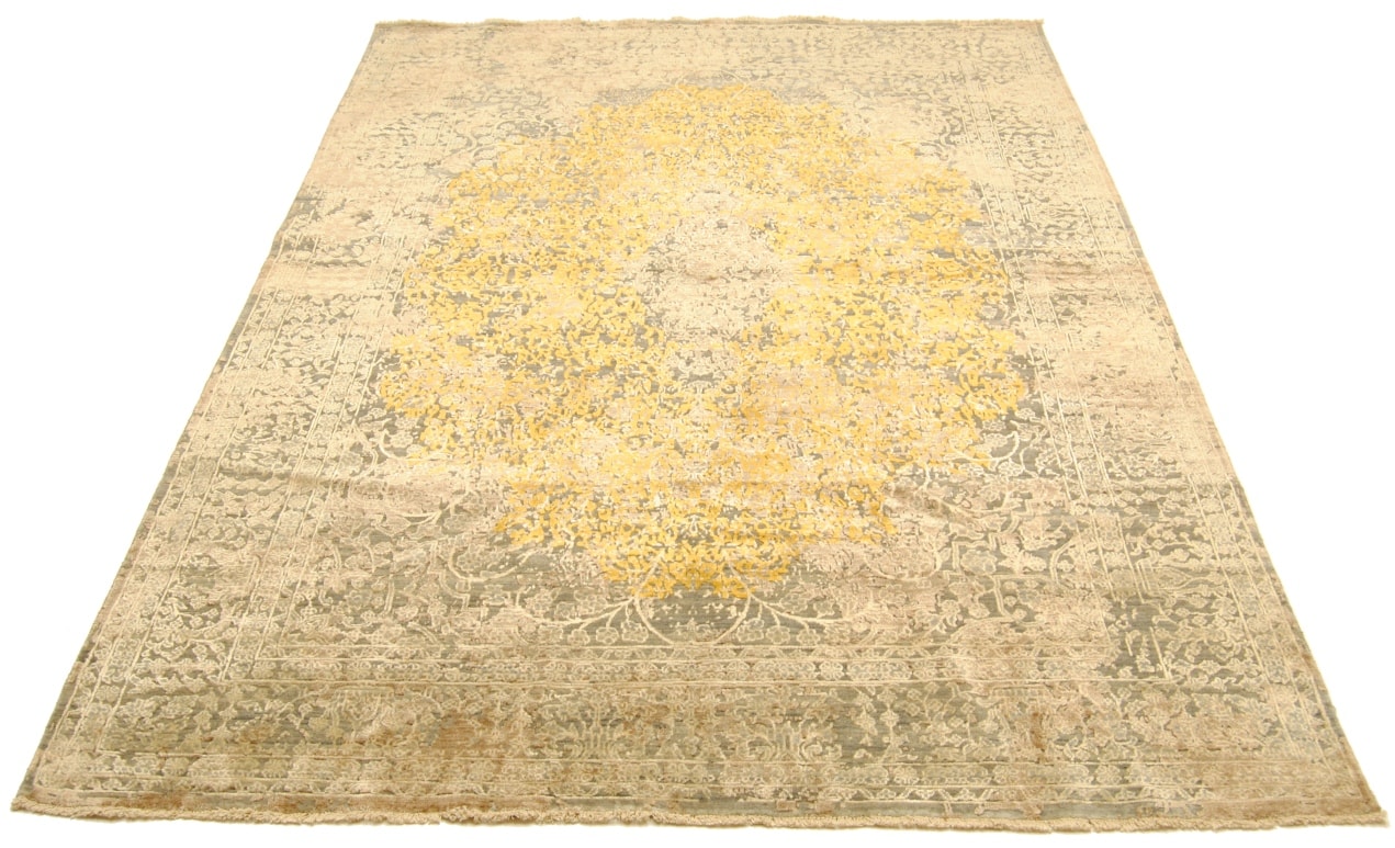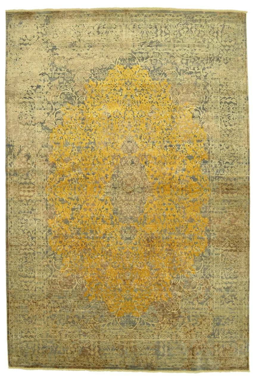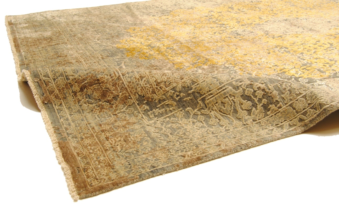 Samina HONAR stammen aus einer Designer-Werkstatt in Mittelindien und verstehen sich als Hommage an die Hochblüte der floralen Teppichkunst. Ein Edelmaterialmix aus Bambuskunstseide und Schafwolle verleiht den Teppichen ihre einzigartige Optik.