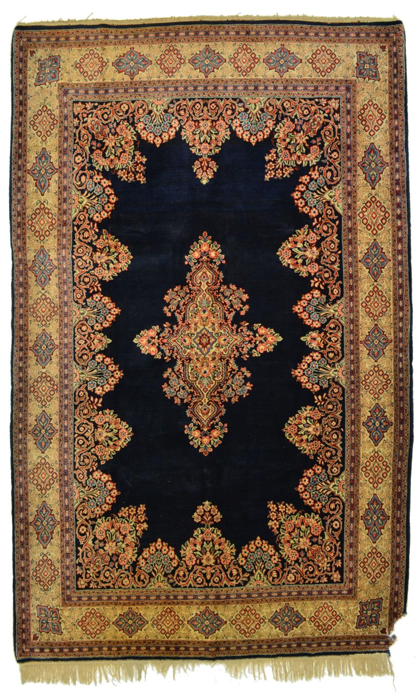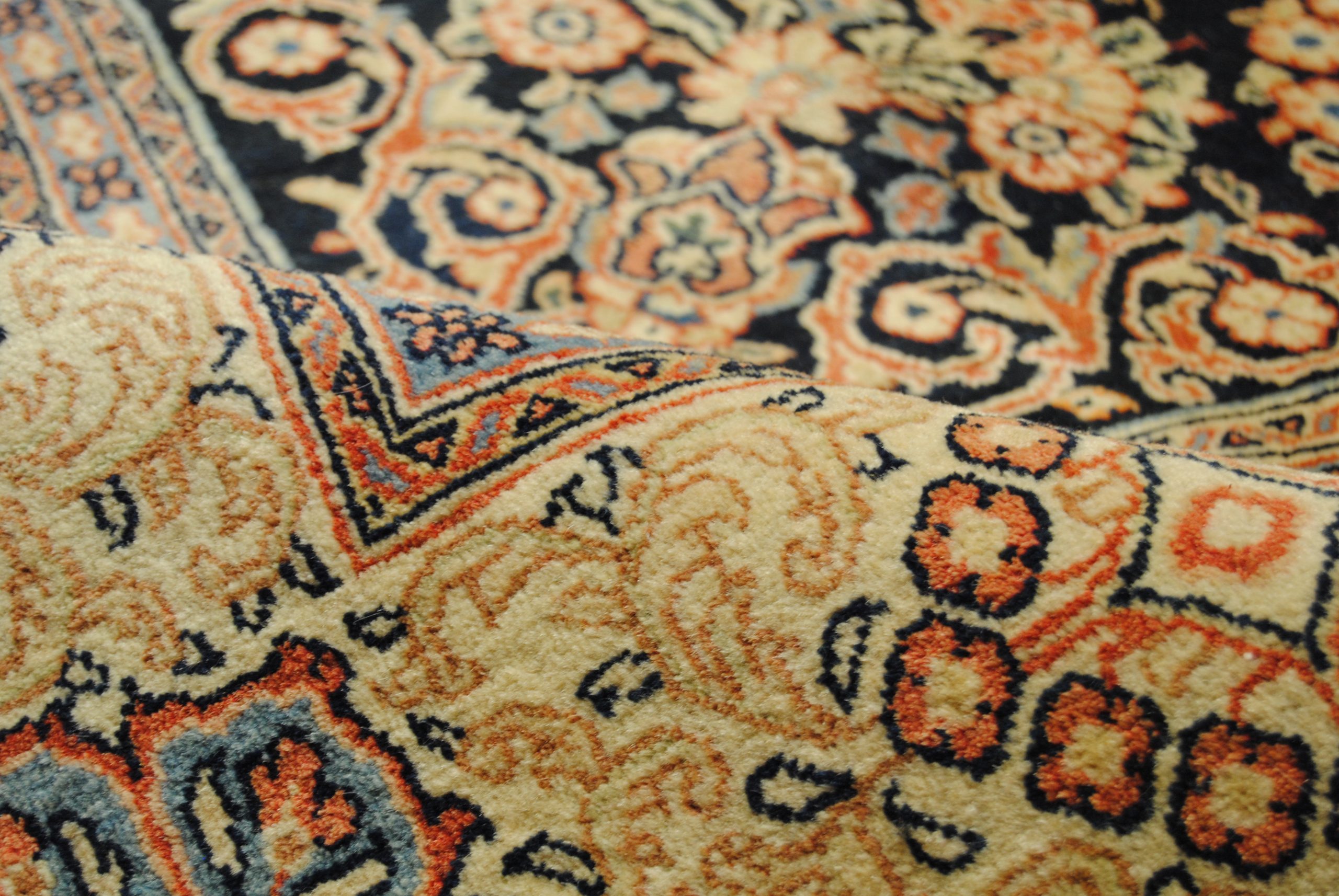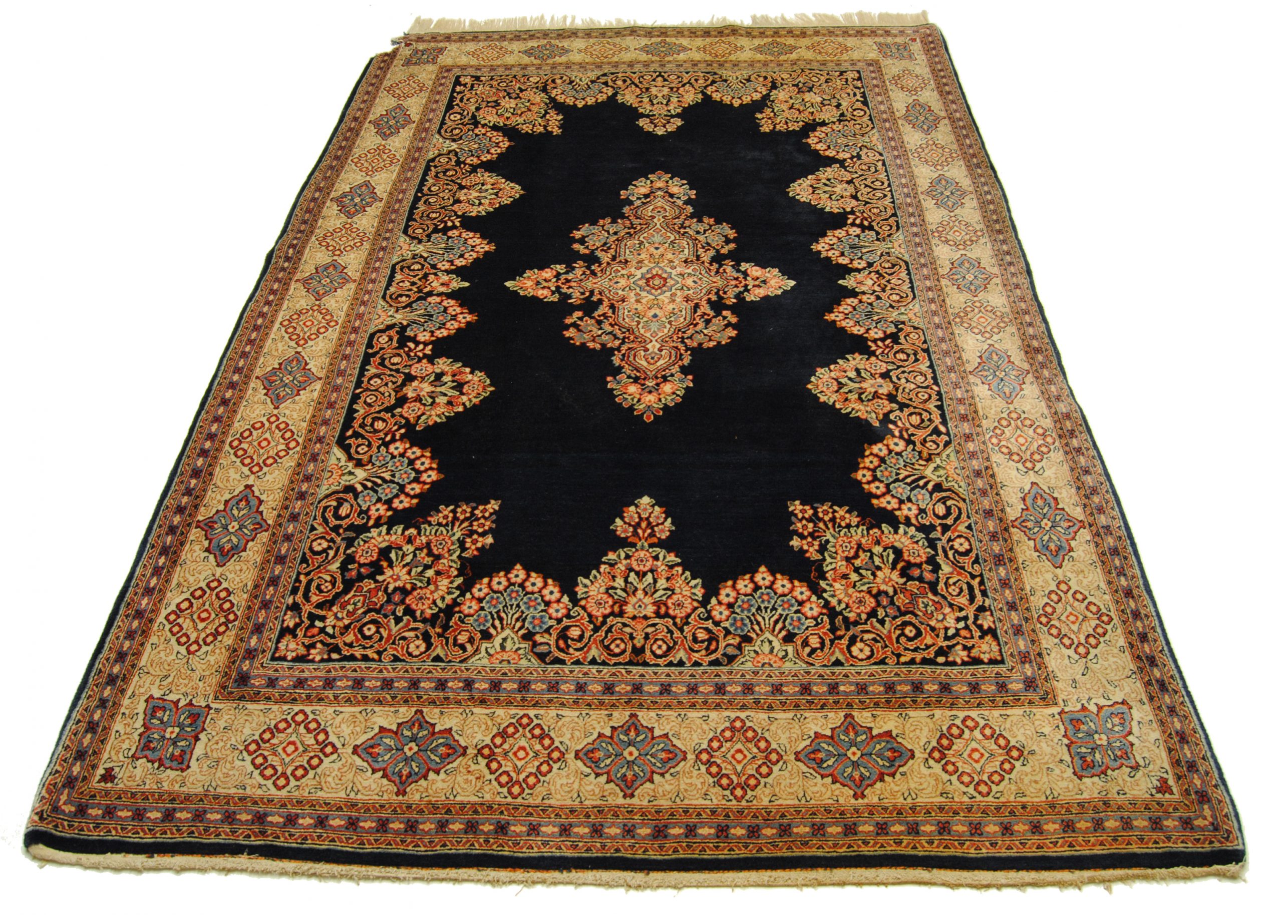 Eintauschteppich. Sehr schöner älterer Sarough in grundsätzlich sehr gutem Erhaltungszustand. Im Eck ist der Teppich allerdings durch einen Hundebiss beschädigt.