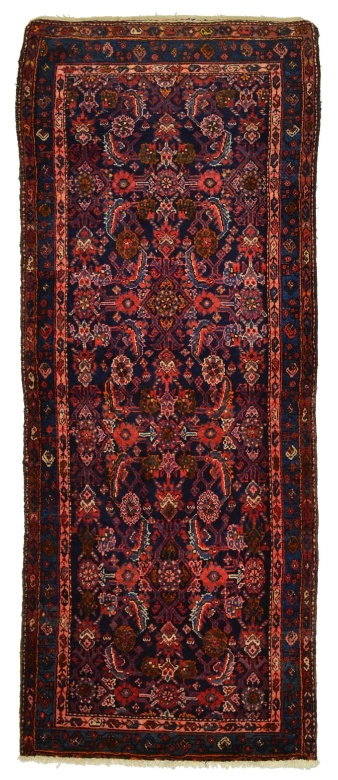 Rund um das westpersische Handelszentrum Hamedan entstehen in zahlreichen Dörfern handwerklich hervorragend gefertigte Teppiche mit gediegenen Farben. Die geometrische Musterarchitektur ist angelehnt an die Formenwelt beliebter kaukasischer Teppiche.