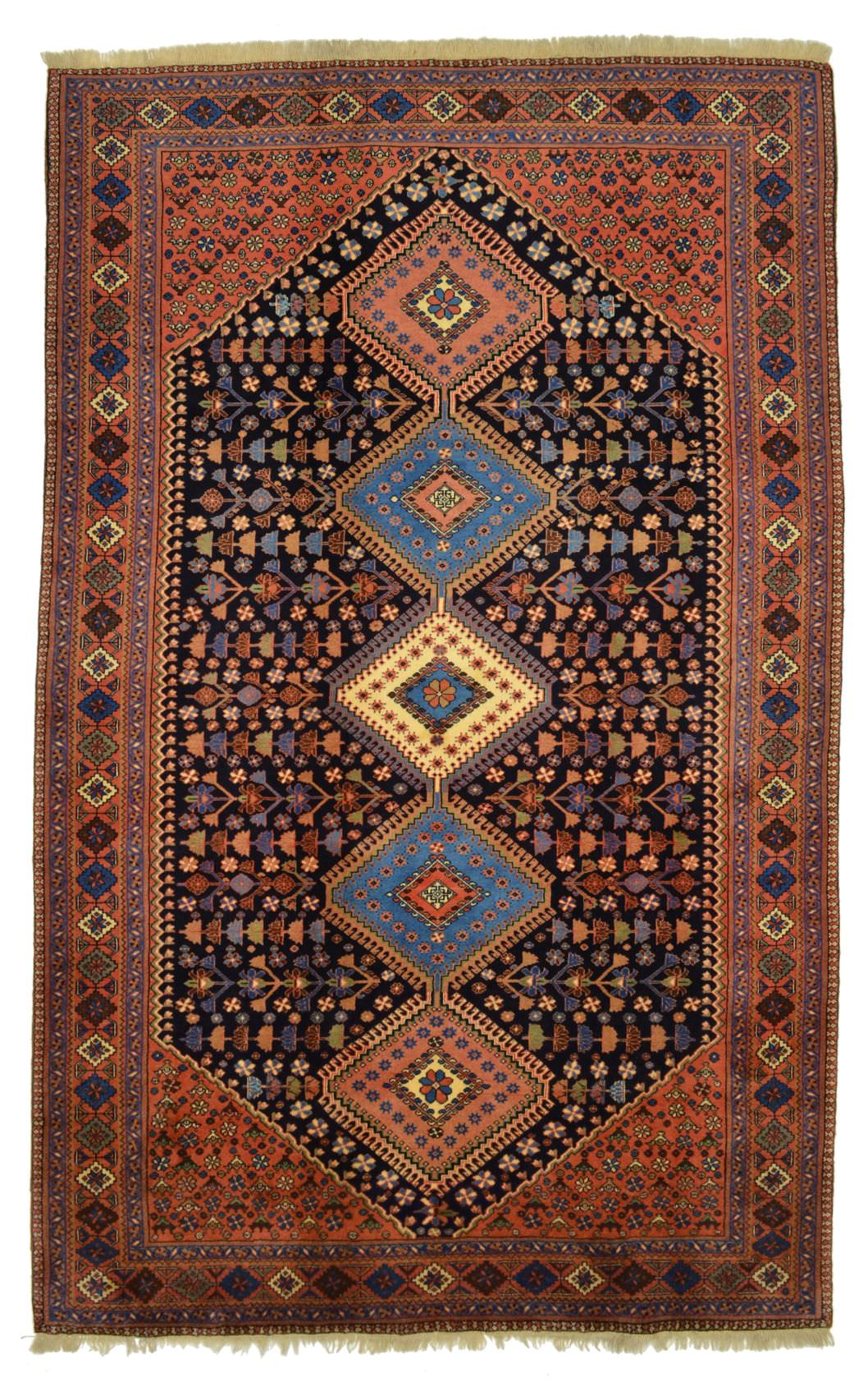 Yalameh-Teppiche zählen zu den feineren Dorf-Produktionen des Iran und zeichnen sich vor allem durch ihre fröhliche Farbenlandschaft und die gute Wollqualität aus. Kette und Schuss aus Schafwolle.